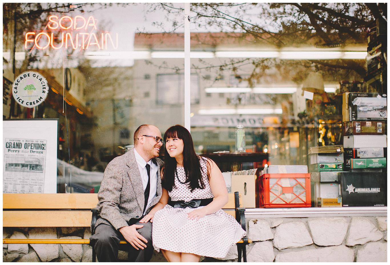 Wendy and Patrick are the sweetest couple who decided they wanted to do an engagement shoot with a fun retro vibe! So with that in mind we started at the Main Street Soda Fountain in Milwaukie, had a yummy milkshake, and then went to Oaks Amusement Park after hours when it was delightfully empty and awesome. Finally we finished up along the Eastbank Esplanade and Hawthorne bridge, just to make sure we got a good Portland vibe! Can’t wait to document their wedding this summer
