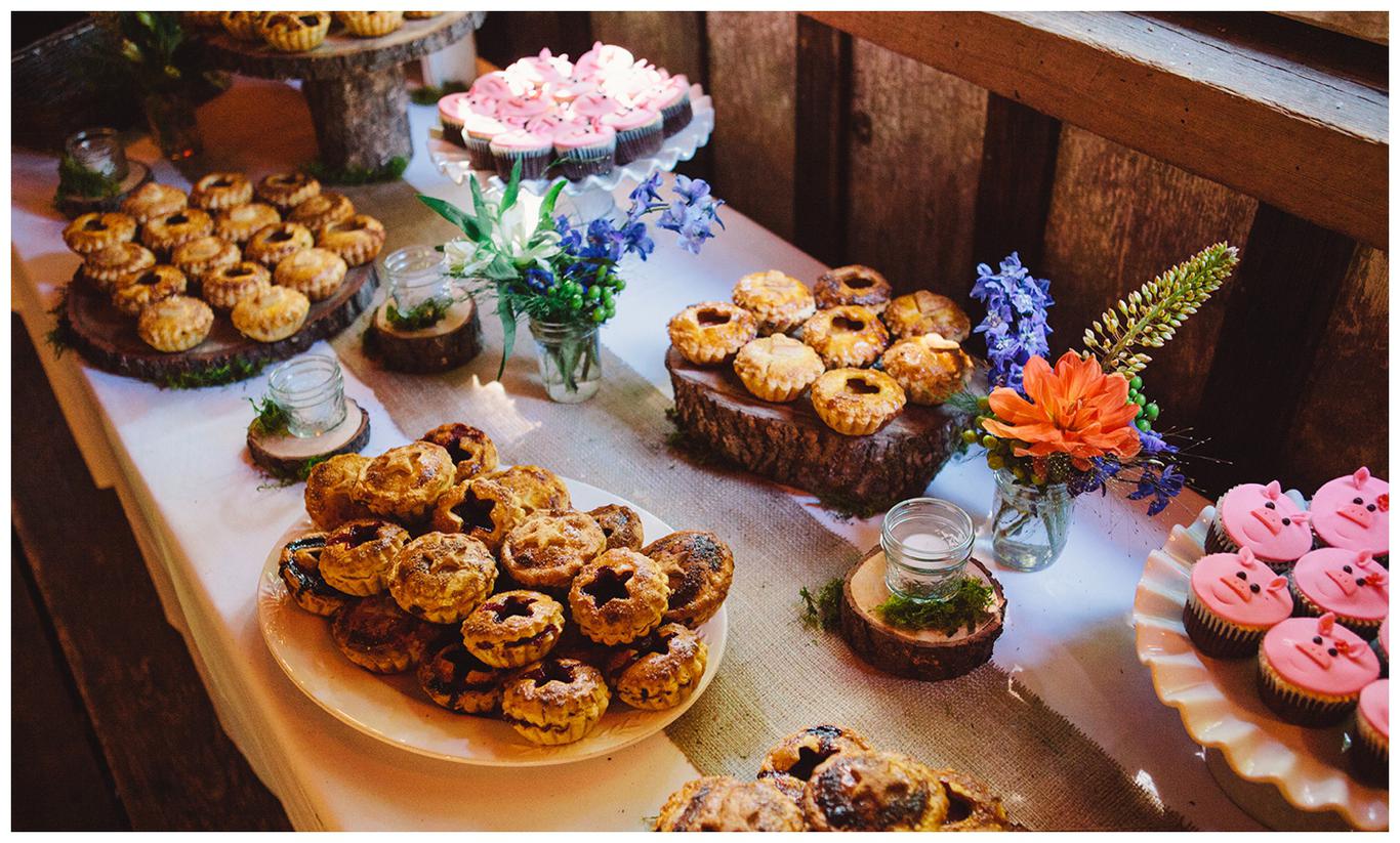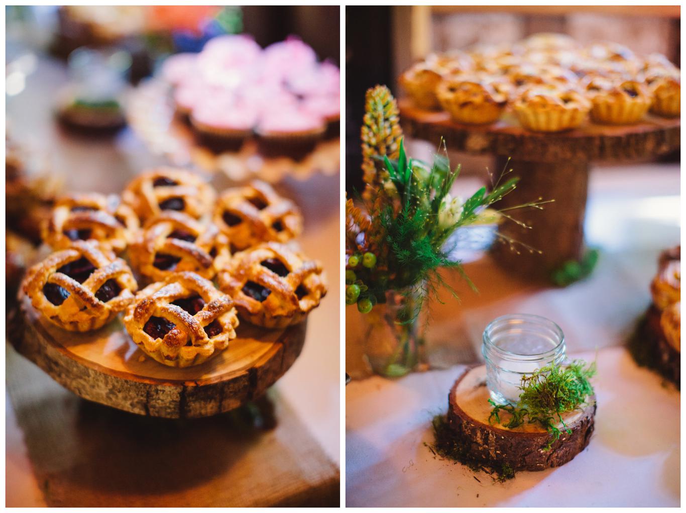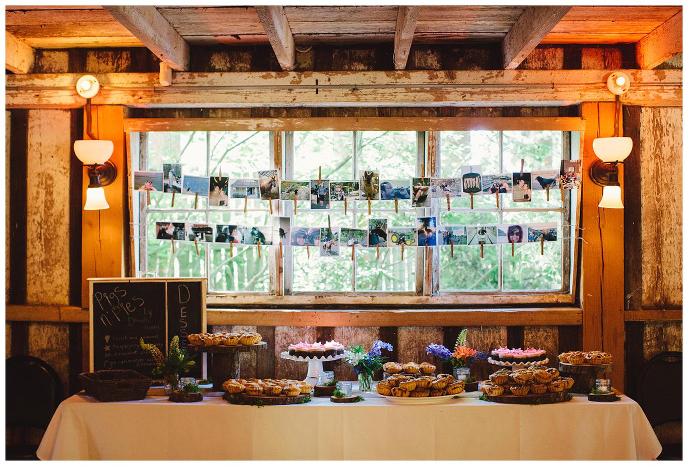 Kate started the day getting ready in her hotel room at The Orenco, took a few formals in the park nearby, and then we head to the beautiful venue โ McMenamin’s Cornelius Pass Roadhouse. Their wedding and reception took place just outside of the Octagonal Barn, with amazing desserts and dancing inside. One of Kate’s good friends Danielle Hoeft is an up-and-coming pastry chef and she made some of the most gorgeous and delicious miniature pies and cupcakes I have ever seen. And of course, Ants in the Kitchen, an awesome bluesy rock n roll band, kept the crowd happy and dancing all night long