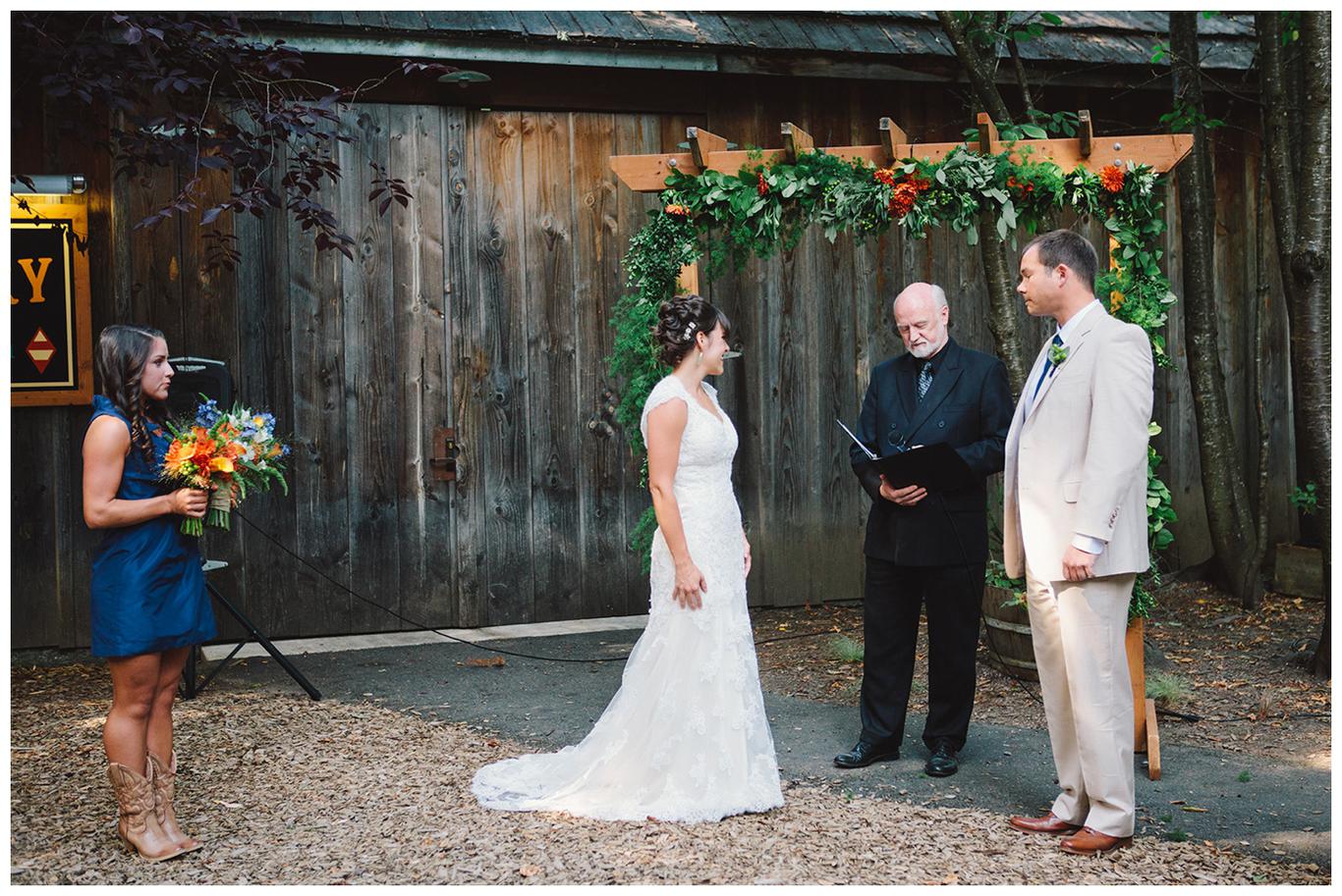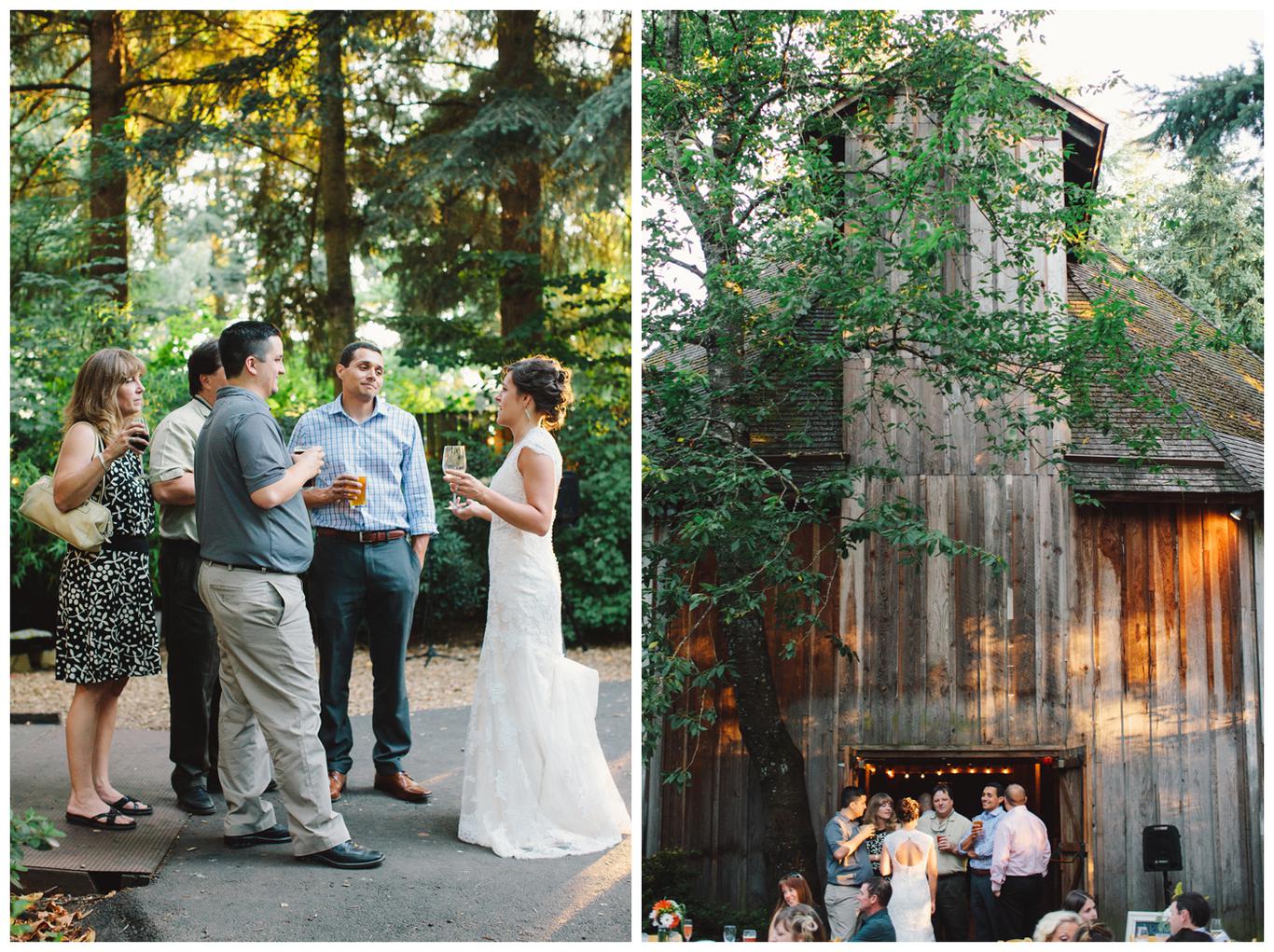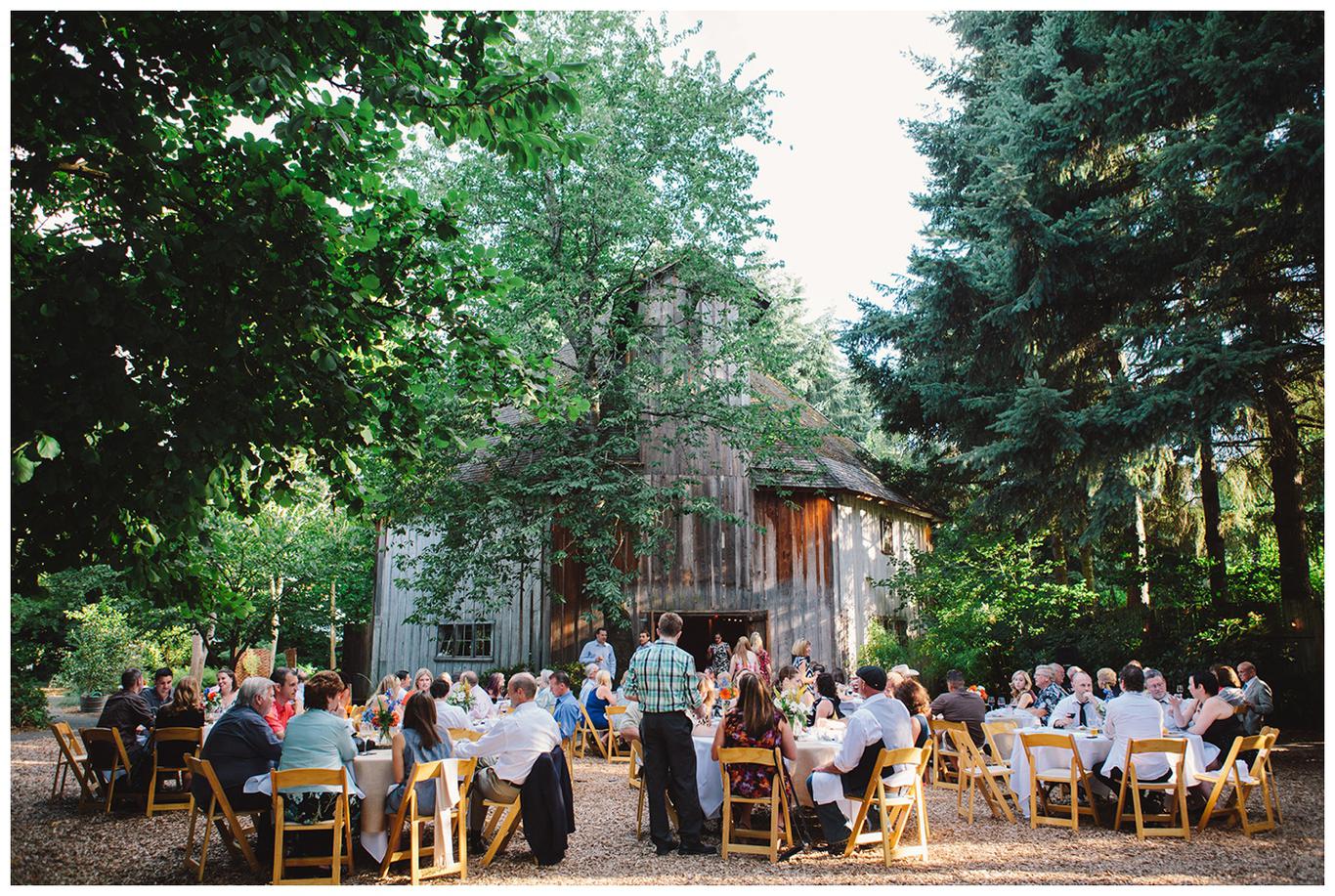 Kate started the day getting ready in her hotel room at The Orenco, took a few formals in the park nearby, and then we head to the beautiful venue โ McMenamin’s Cornelius Pass Roadhouse. Their wedding and reception took place just outside of the Octagonal Barn, with amazing desserts and dancing inside. One of Kate’s good friends Danielle Hoeft is an up-and-coming pastry chef and she made some of the most gorgeous and delicious miniature pies and cupcakes I have ever seen. And of course, Ants in the Kitchen, an awesome bluesy rock n roll band, kept the crowd happy and dancing all night long