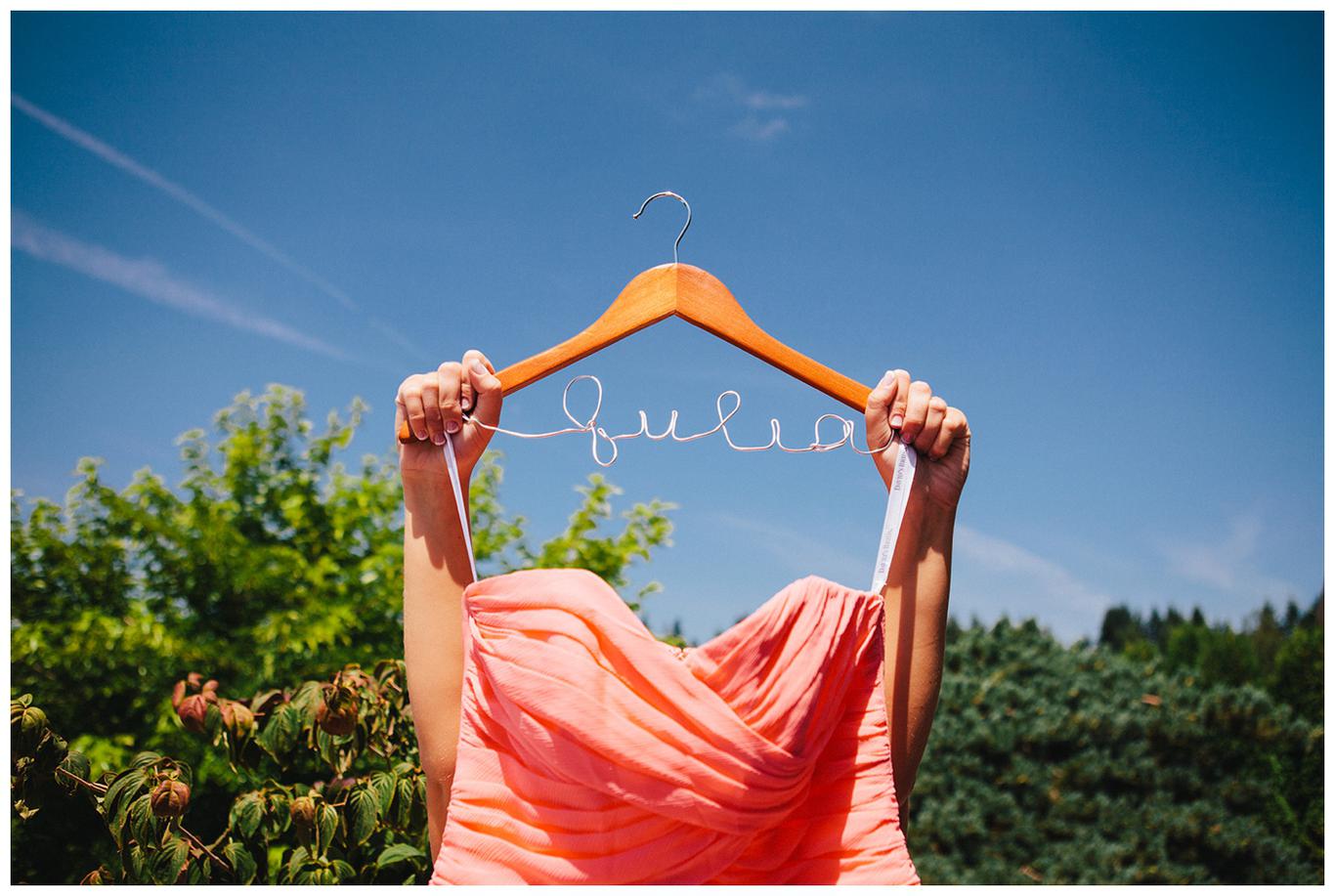 Daniella, who claims to be “not crafty” hand-made personalized wire hangers for each of her bridesmaids! Such a sweet touch