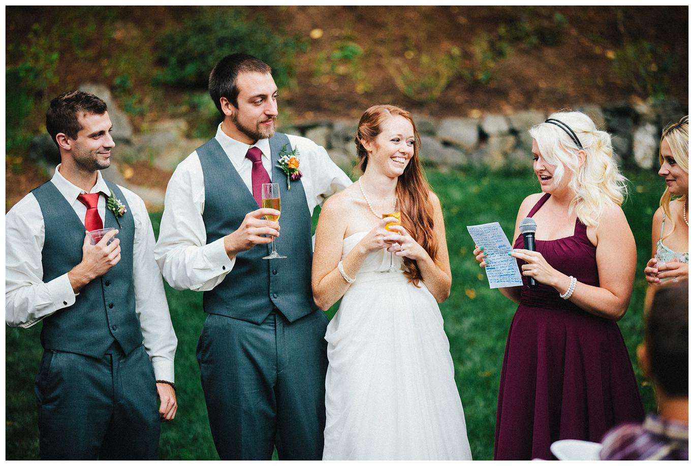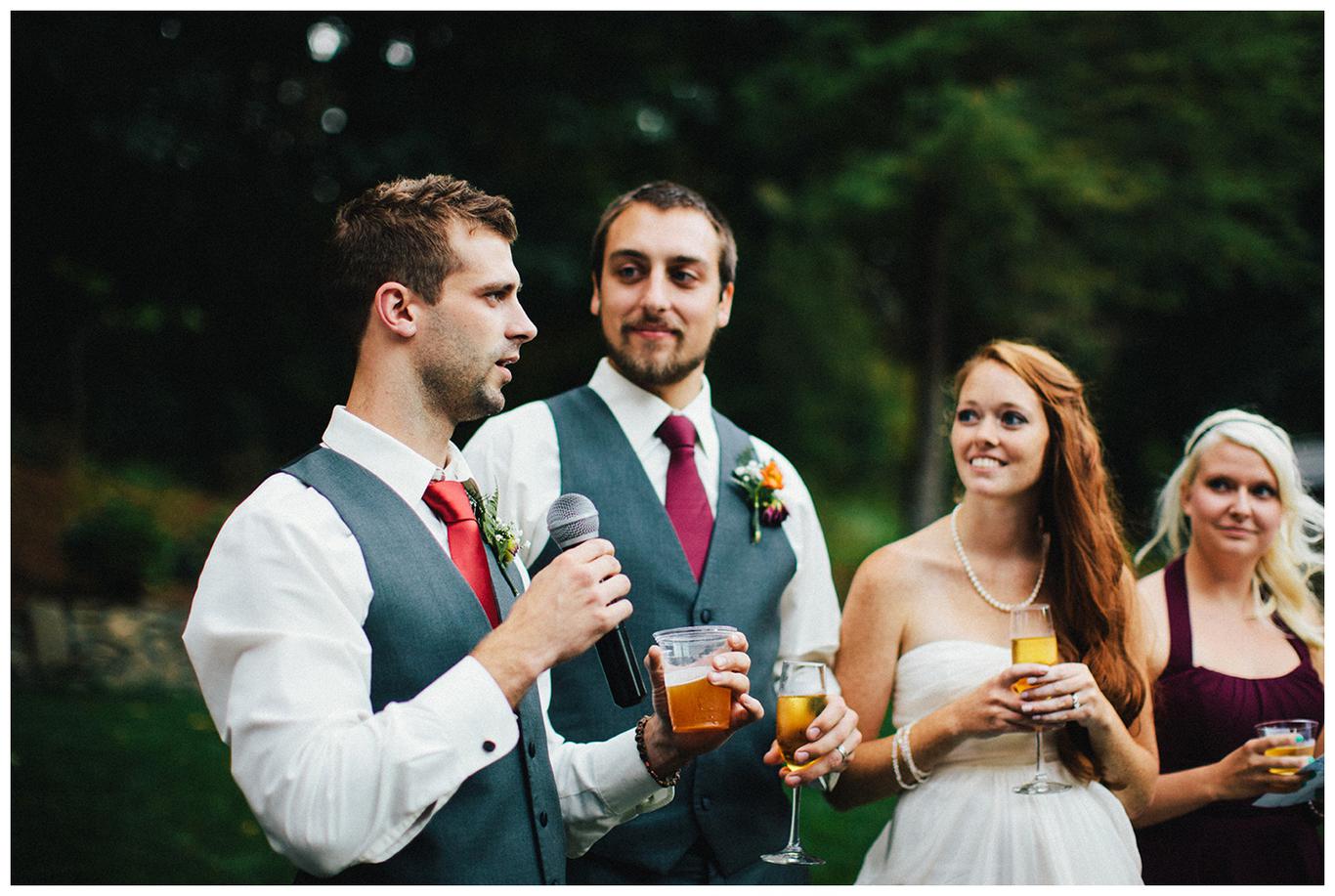 An engineer and a physicist. A forest. An amazing DJ. Crazy dancing friends. Lots of good booze. And enough laughter to last a lifetime. Megan and Matt’s wedding was a great time. They aren’t the kind of people who sweat the small stuff โ really they just wanted to throw an epic party in an awesome location and have a blast doing so. I think they succeeded. The day was equally heartfelt and hilarious. Whether it was Megan’s tears of happiness when she saw her to-be husband for the first time during their first look, or the competition between the bridesmaids and the groomsmen to see who could take the craziest group photos, the day was memorable and happy through and through. I was so happy to have been there to document it