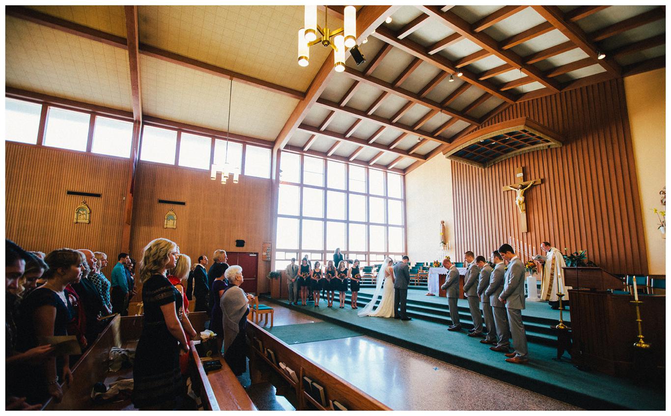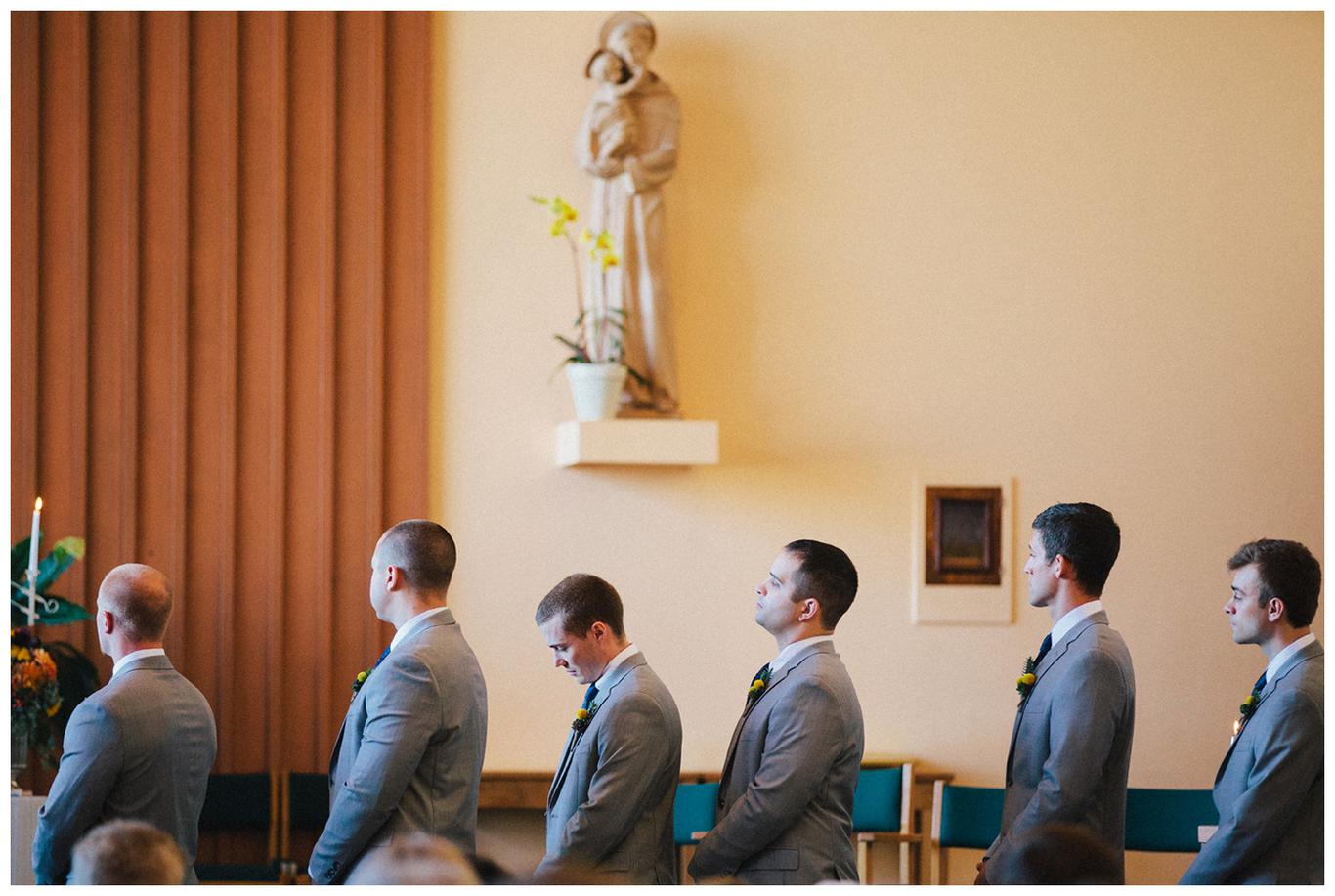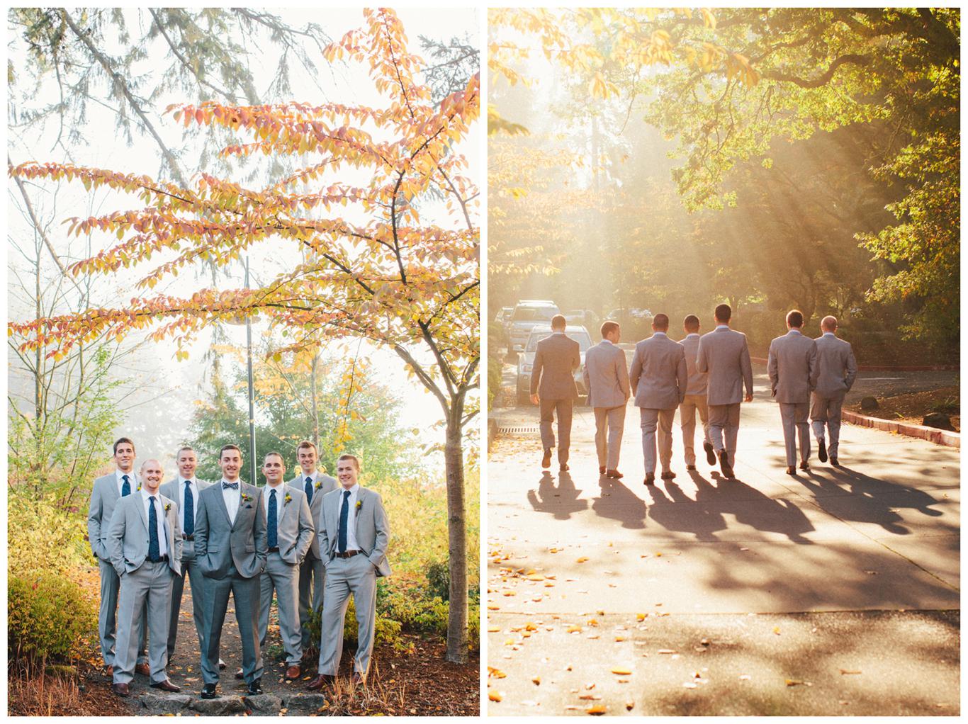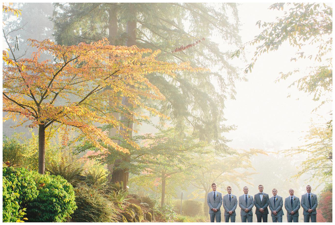 I’ve done a lot of unique outdoor weddings this year, but sometimes it’s nice to do something a little different. Something a little more traditional. Something classic. Erin and Nick’s wedding was just that. A timeless, beautiful, classy affair. Because as much as I love the uniqueness of some weddings, there is something special in honoring the past. Erin and Nick got married at the same church that Nick’s parents were married in 32 years ago, and then held their reception at the Oswego Lake Country Club – the same place that Erin’s parents were married 30 years ago. It was a perfect sequel to an already beautiful story. A day rich in meaning and history for both families. We all started the day early – at 7:30am, as Nick and Erin got ready at the OLCC with their best friends. They gave each other sweet love notes and gifts, and then we took pictures of the guys and girls separately in the peaceful autumn morning fog. It was a perfect October day to get married