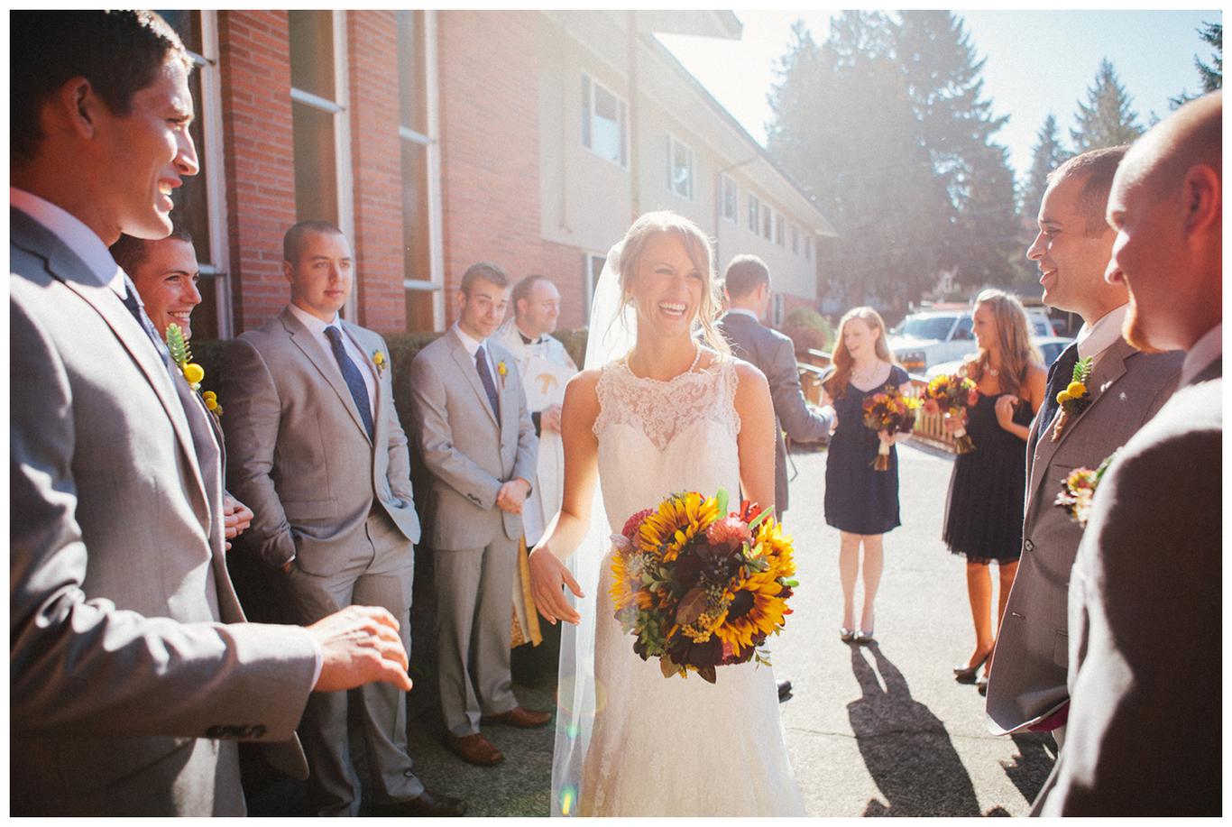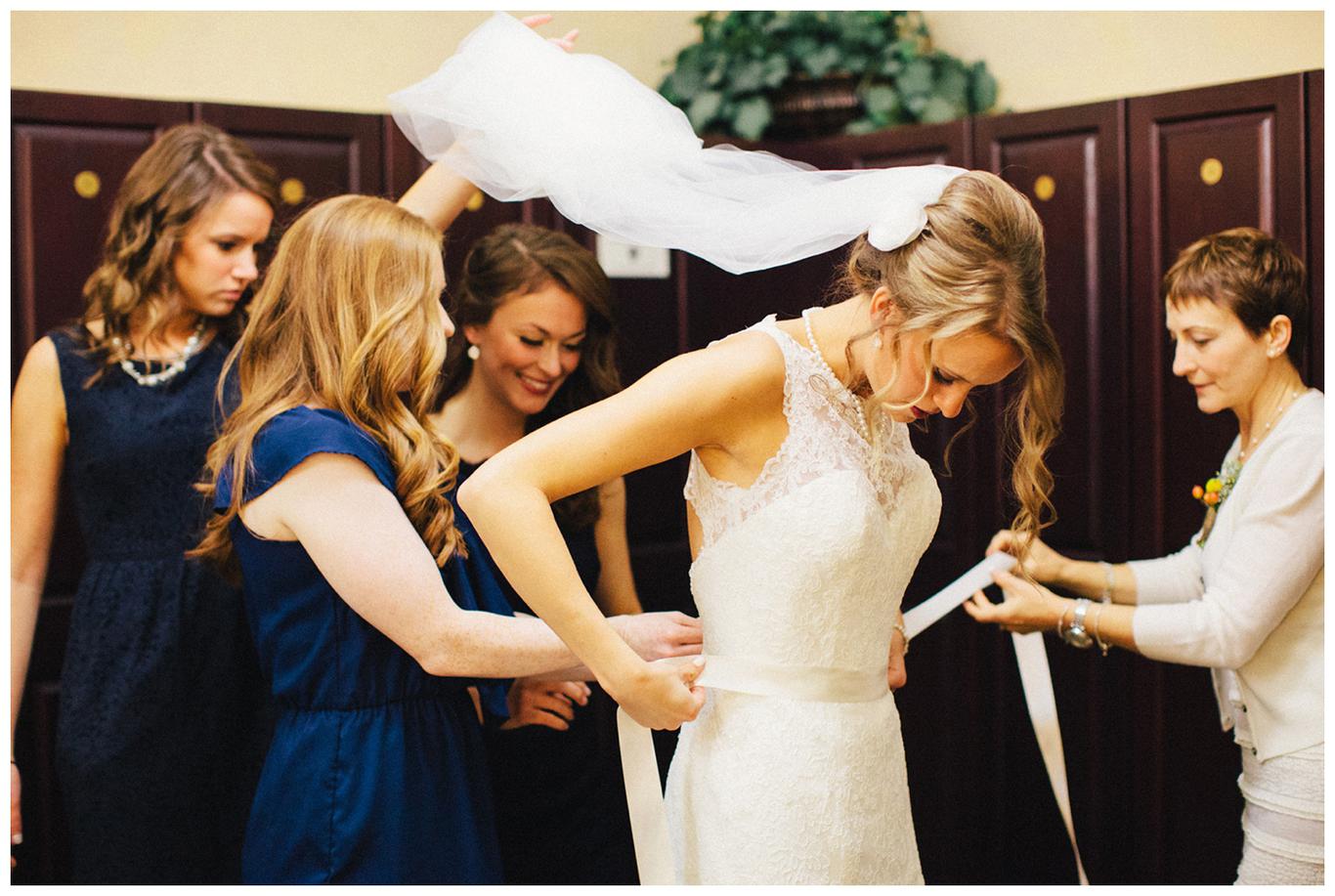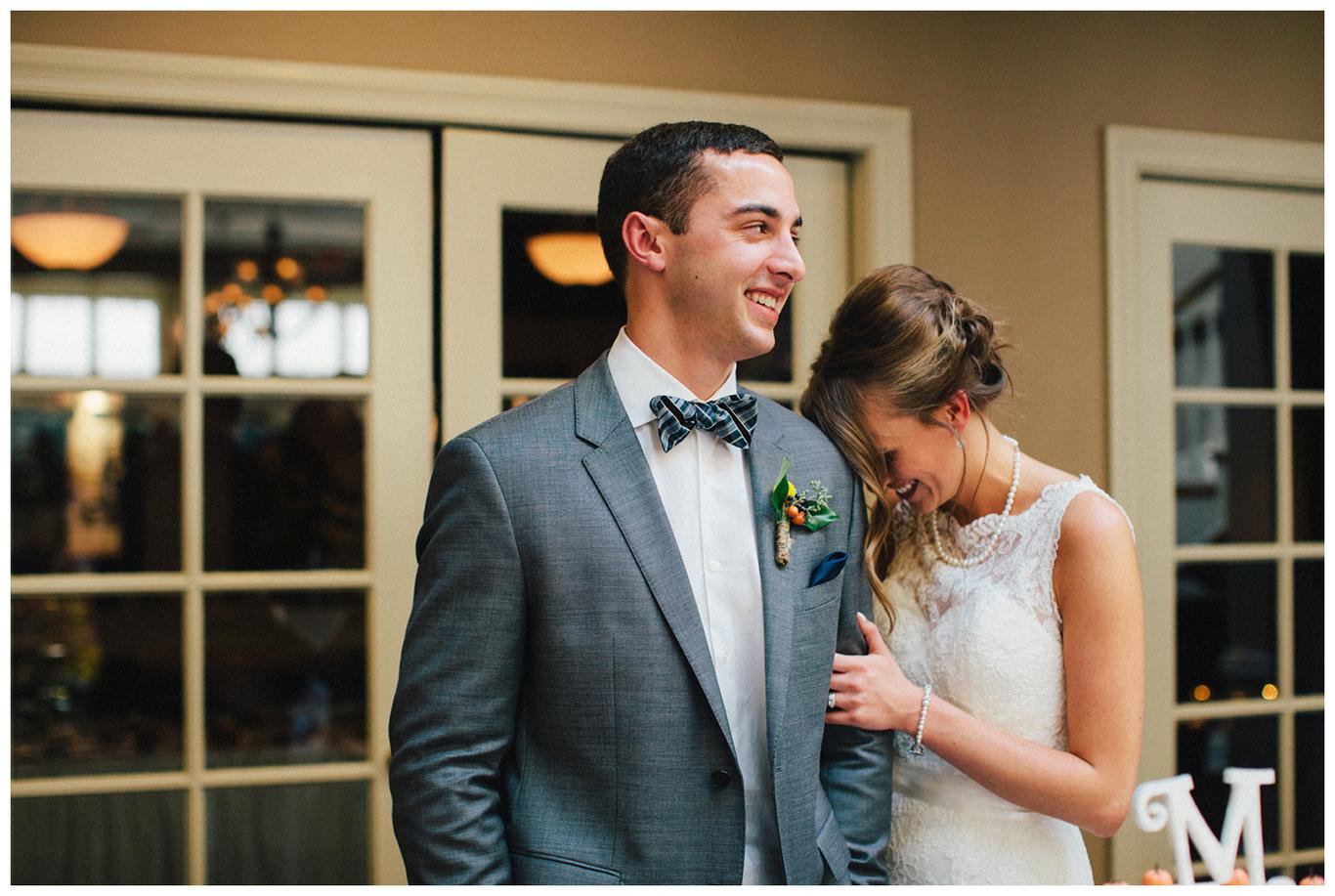I’ve done a lot of unique outdoor weddings this year, but sometimes it’s nice to do something a little different. Something a little more traditional. Something classic. Erin and Nick’s wedding was just that. A timeless, beautiful, classy affair. Because as much as I love the uniqueness of some weddings, there is something special in honoring the past. Erin and Nick got married at the same church that Nick’s parents were married in 32 years ago, and then held their reception at the Oswego Lake Country Club – the same place that Erin’s parents were married 30 years ago. It was a perfect sequel to an already beautiful story. A day rich in meaning and history for both families. We all started the day early – at 7:30am, as Nick and Erin got ready at the OLCC with their best friends. They gave each other sweet love notes and gifts, and then we took pictures of the guys and girls separately in the peaceful autumn morning fog. It was a perfect October day to get married
