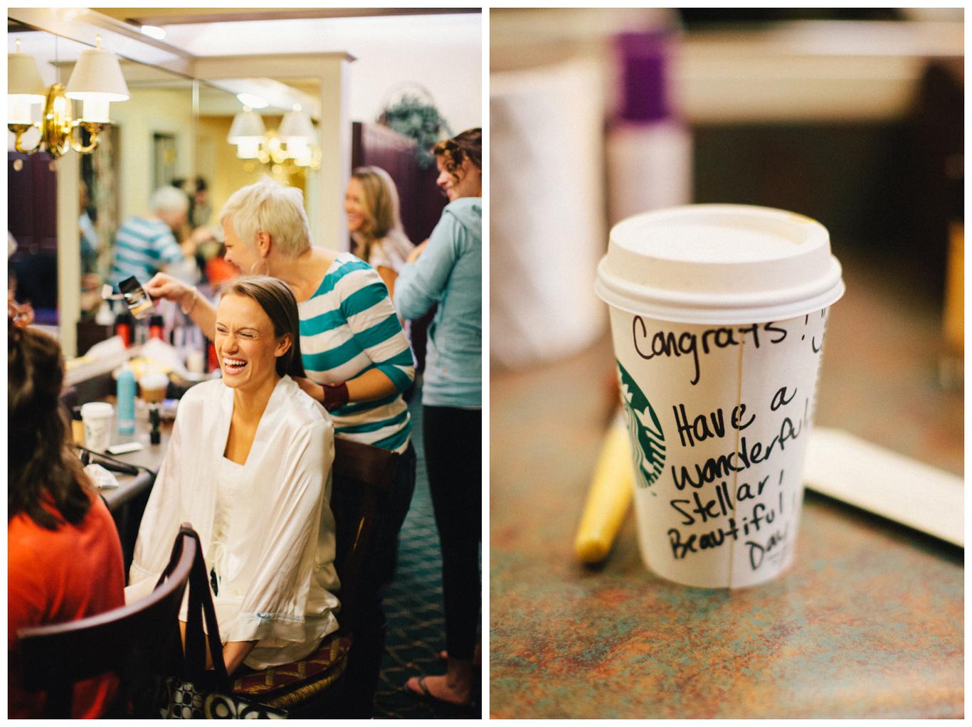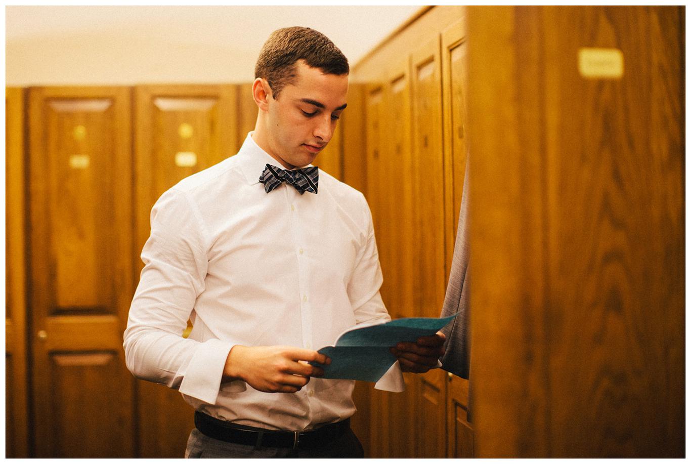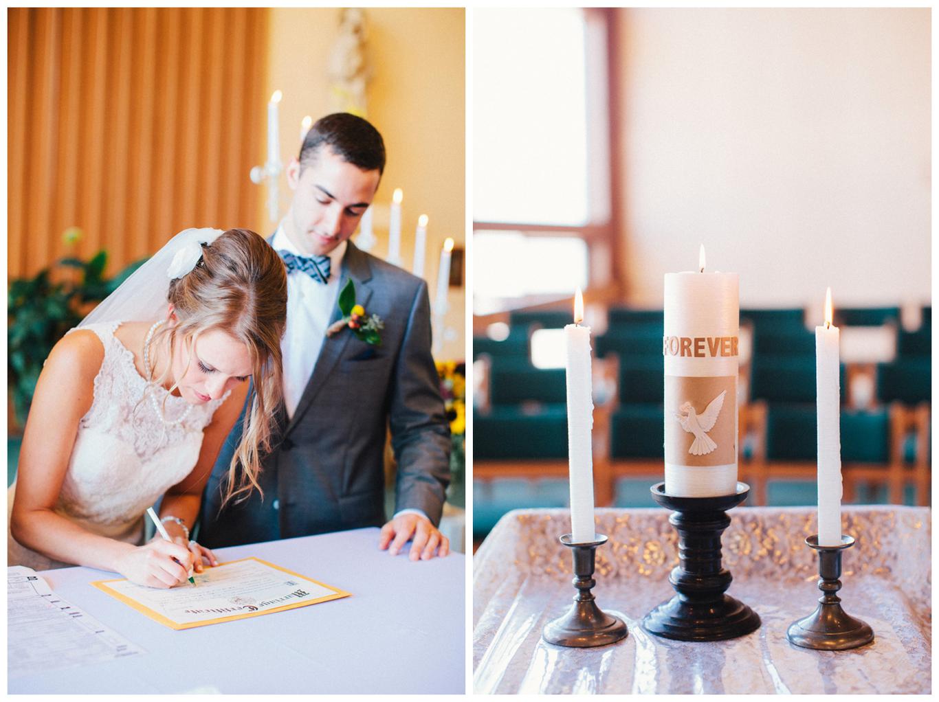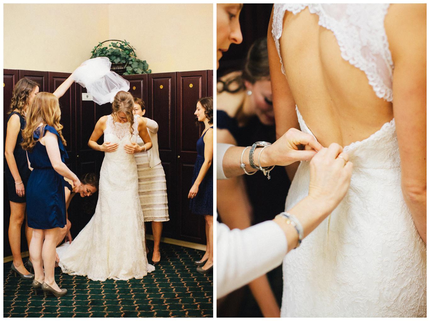 I’ve done a lot of unique outdoor weddings this year, but sometimes it’s nice to do something a little different. Something a little more traditional. Something classic. Erin and Nick’s wedding was just that. A timeless, beautiful, classy affair. Because as much as I love the uniqueness of some weddings, there is something special in honoring the past. Erin and Nick got married at the same church that Nick’s parents were married in 32 years ago, and then held their reception at the Oswego Lake Country Club – the same place that Erin’s parents were married 30 years ago. It was a perfect sequel to an already beautiful story. A day rich in meaning and history for both families. We all started the day early – at 7:30am, as Nick and Erin got ready at the OLCC with their best friends. They gave each other sweet love notes and gifts, and then we took pictures of the guys and girls separately in the peaceful autumn morning fog. It was a perfect October day to get married