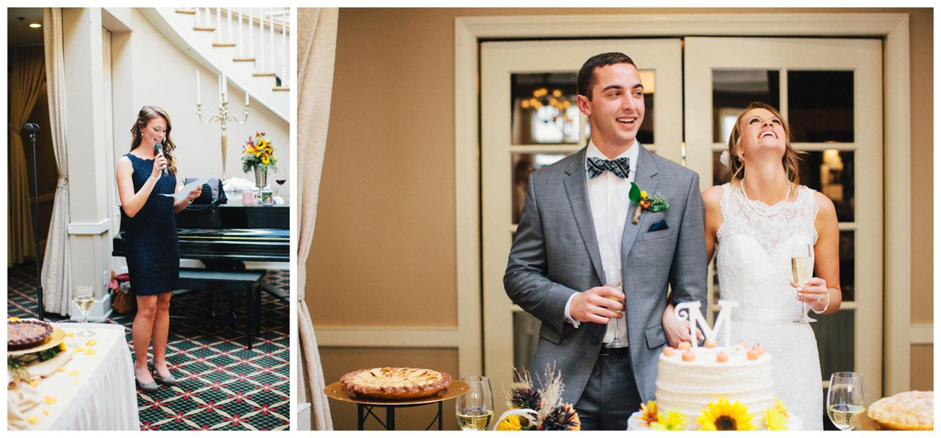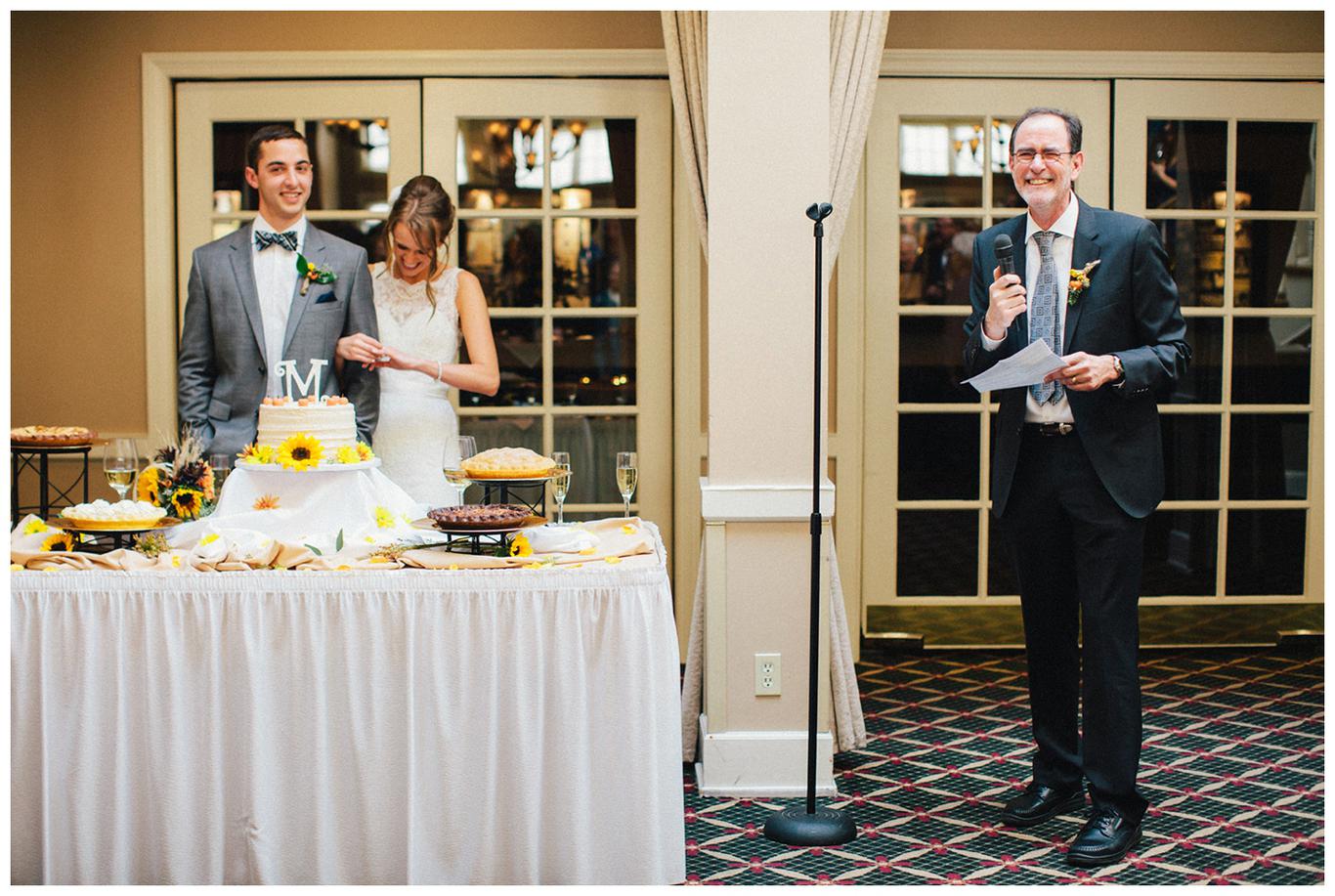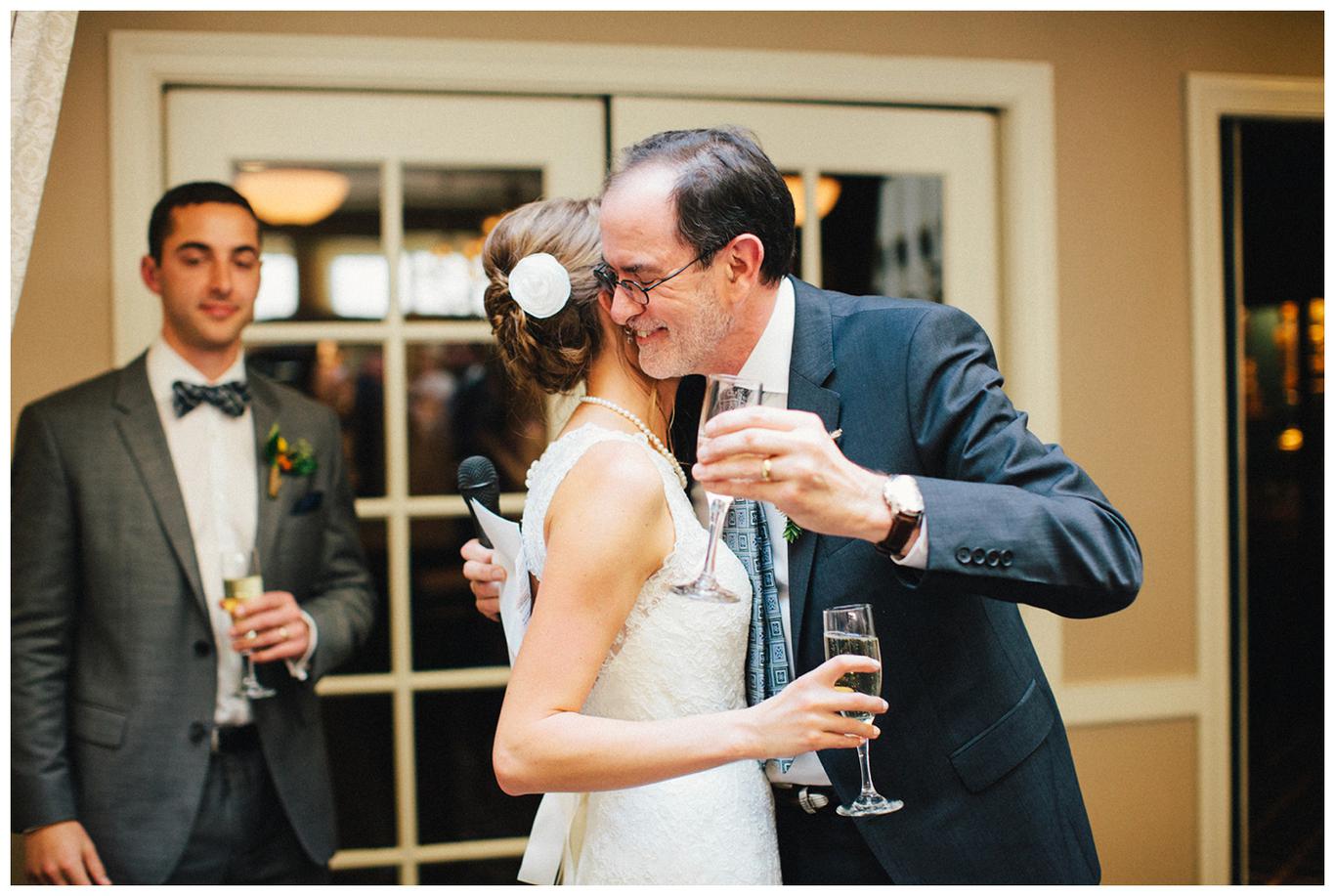 Erin’s father gave a beautiful long toast about how Nick practically saved his life when he dislocated his shoulder and fell out of a boat during a day on the river. Talk about a way to impress your future father-in-law
