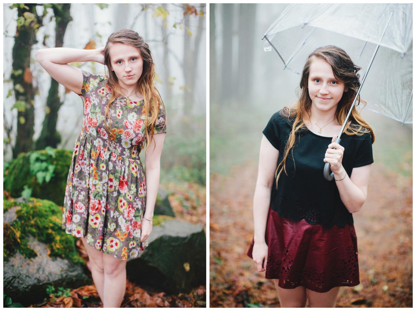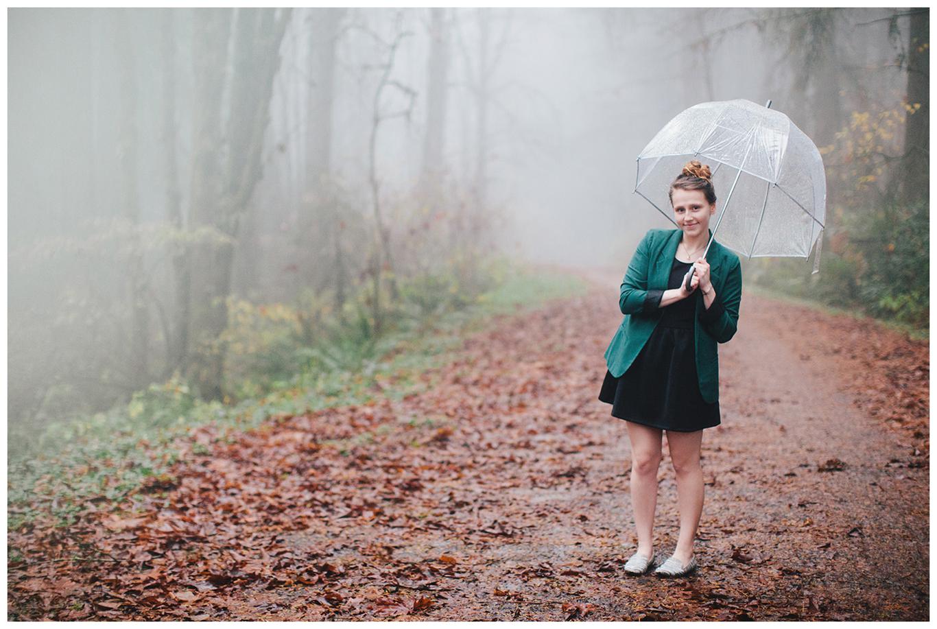Sometimes living in Oregon in the fall/winter can be tough. Rachel needed to get her senior pictures done before her deadline, but it was pouring rain and 40 degrees. So, what did we do? We did the shoot anyway. I wrapped my camera in a bag and she grabbed an umbrella and we toughed it out in the beautifully foggy, freezing cold, wet forest for an hour. The result was a few of my favorite pictures I’ve taken this year. Because sometimes great things come out of miserable conditions