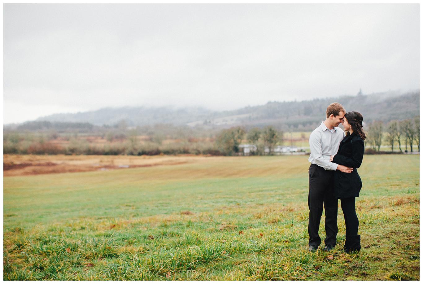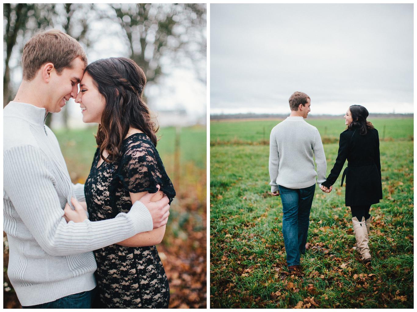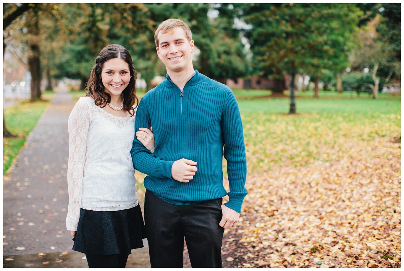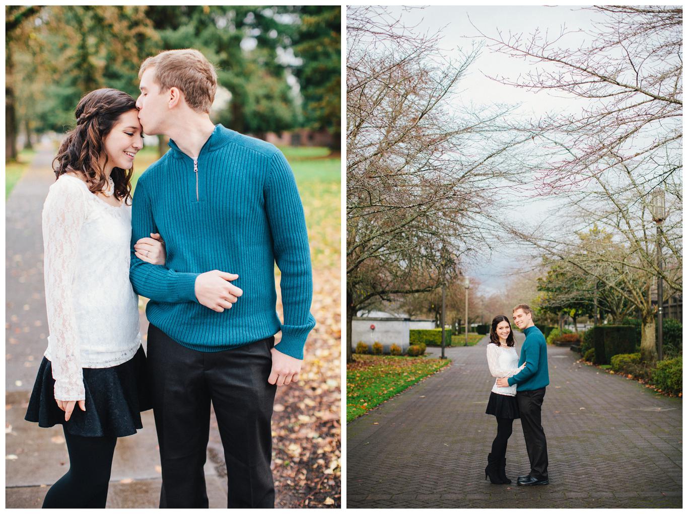 It was raining. Caitlin and Brendan were at an OSU football game and Brendan had been playing in the band all day. But instead of leaving afterwards, Brendan and a few band members broke out into a special tune: Disney’s “A whole new world.” Because Caitlin’s life was about to change forever. Brendan got down on one knee after the song and asked her to be his wife in front of everyone. And she said yes. I was insanely happy for her when I saw her announcement and even MORE happy when she emailed me asking me to take her wedding and engagement photos! You see, I photographed one of Caitlin’s best friends wedding this summer, I’m shooting her other best friends wedding in March, and now I get to shoot Caitlin’s as well! I went to high school with all three girls and it has been so fun to document their individual love stories and friendships! Anyway, just as Caitlin’s proposal happened in the rain, her engagement photos did too. But it was a beautiful misty NW day in the Salem area, and we had a blast despite the damp conditions! Gotta love Oregon! Congrats you two