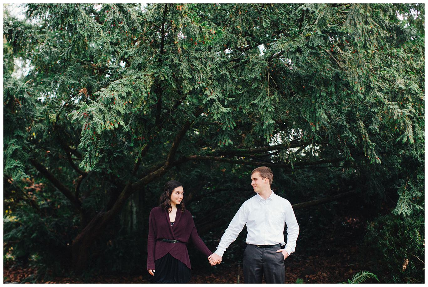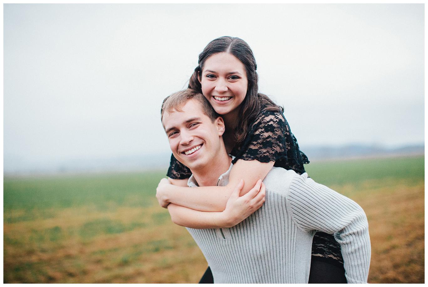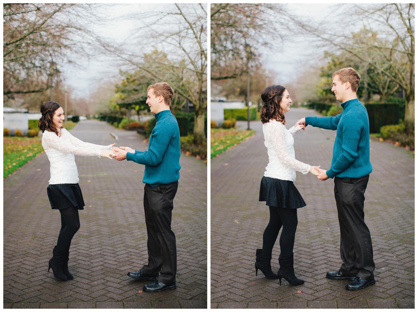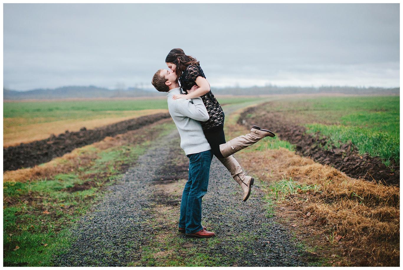 It was raining. Caitlin and Brendan were at an OSU football game and Brendan had been playing in the band all day. But instead of leaving afterwards, Brendan and a few band members broke out into a special tune: Disney’s “A whole new world.” Because Caitlin’s life was about to change forever. Brendan got down on one knee after the song and asked her to be his wife in front of everyone. And she said yes. I was insanely happy for her when I saw her announcement and even MORE happy when she emailed me asking me to take her wedding and engagement photos! You see, I photographed one of Caitlin’s best friends wedding this summer, I’m shooting her other best friends wedding in March, and now I get to shoot Caitlin’s as well! I went to high school with all three girls and it has been so fun to document their individual love stories and friendships! Anyway, just as Caitlin’s proposal happened in the rain, her engagement photos did too. But it was a beautiful misty NW day in the Salem area, and we had a blast despite the damp conditions! Gotta love Oregon! Congrats you two