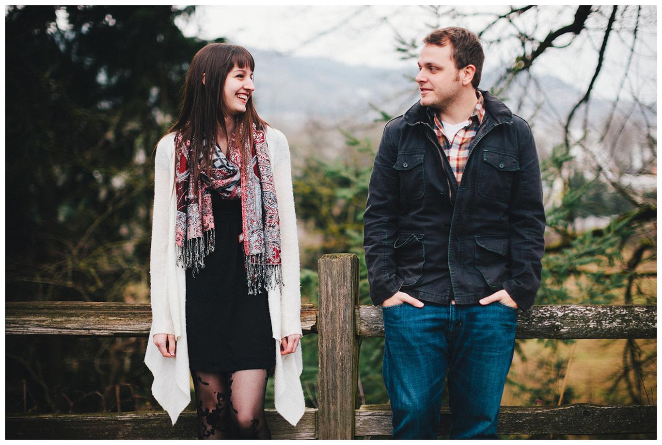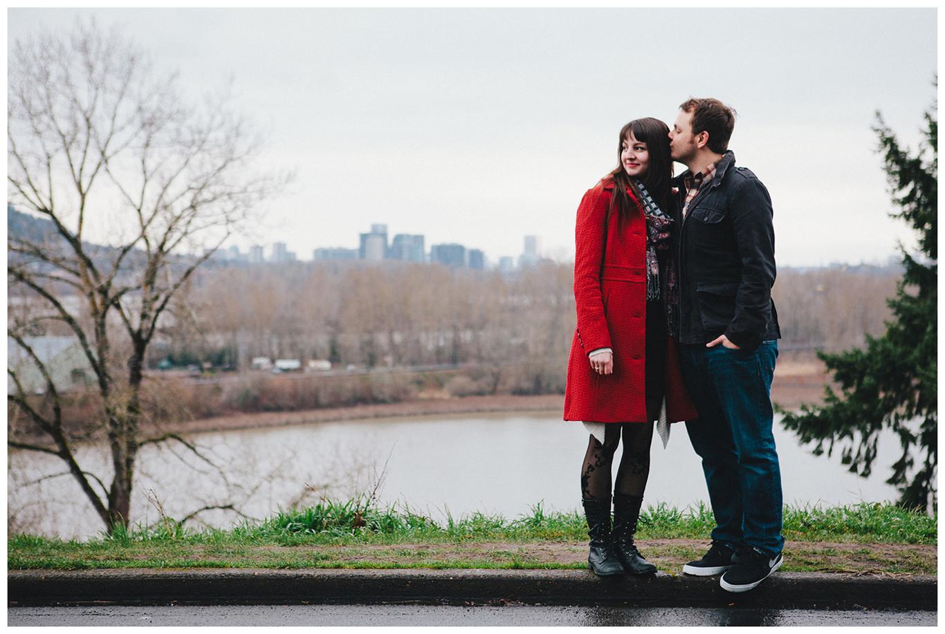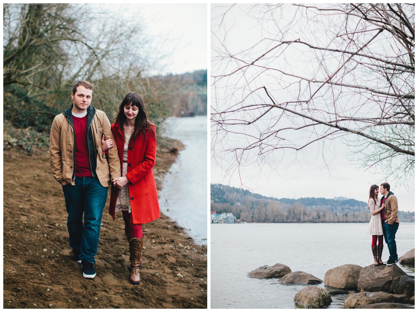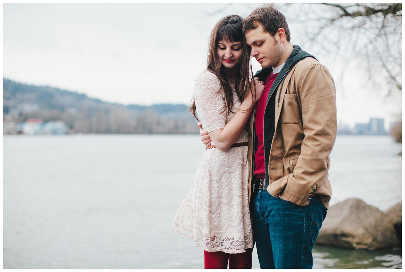 It was his birthday. They stood atop a cliff in Pacific City, wind rippling through their hair as a wild, moody ocean crashed below them. Sea birds called from above. The Oregon Coast surrounded them with all of its raw beauty. That was the moment when Sean asked Anna to be his wife. Of course, she said yes, because she had known all along that Sean was the one. For almost 5 years. Since the moment he told her he loved her in 2009. Since he gave her a promise ring in 2010. Since he became her adventure buddy, her favorite person, her best friend. We took their engagement photos on freezing cold winter day in Sellwood, but somehow it felt perfect anyway. There is a peacefulness between these two. A sense of calm that comes when you 100% know the person you are with. I had a fantastic time working with them and getting to know them, and I cannot wait to shoot their wedding in a few months! Congrats you two