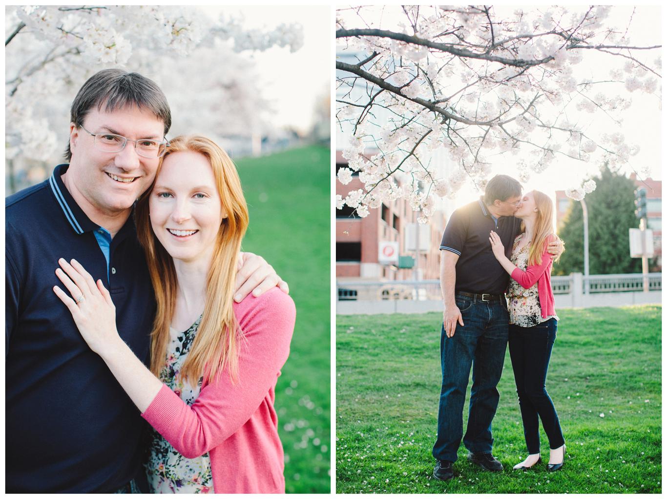 Angela and Brian got engaged at the park behind the Hillsboro library, so they wanted to take their engagement photos there to commemorate the special location! It was a perfect spring day, so we head down to the waterfront afterwards to capture a few more shots under the blossoms in downtown Portland. These two are so happy and perfect for one another and I cannot wait to shoot their wedding in a few months! Congrats you two