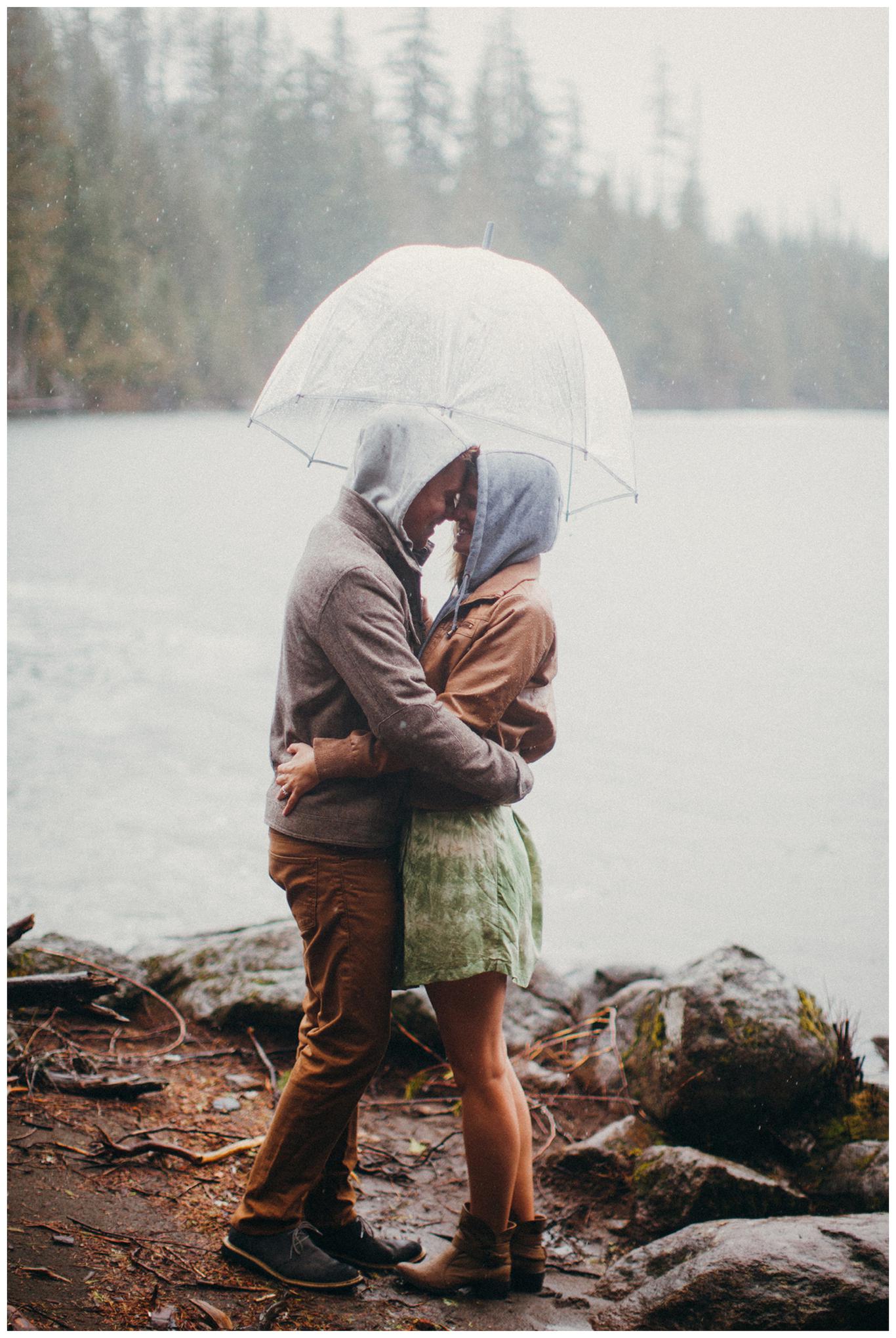 This is the rainiest photoshoot I have ever done, and quite possibly one of my all-time favorites. Naturally this is what the Oregon weather does when you are photographing a couple from Florida who are only in town together for 3 days. It pours. It rains with no sign of stopping. It soaks you to the bone. There was nothing we could do except embrace it. Hilary and Ben did just that. These two have a love, a spark, a happiness that couldn’t be bothered by a few chilly raindrops up at Lost Lake on Mt. Hood. It only made them giggle harder. It was an adventure. It was amazing