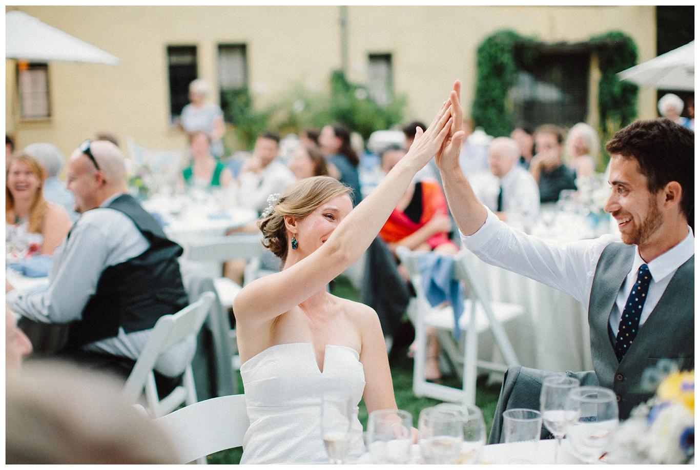 Quirky yet classy. Yes. That’s how this day went. Sarah and AJ are both brilliant, artistic, and thoughtful people. Their wedding was simultaneously elegant and timeless yet still reflected their personalities. I loved it. Sarah also just so happens to be my cousin, aka I have known her my entire life and it was pure joy to get to photograph her wedding. Yes it was a hot, hot, hot day, but tucked away under the oak trees in Los Altos Hills, it was barely even noticeable. I was smiling the whole day through. Whether it was the sweet note AJ left Sarah in the morning, or the way they included a nod to AJ’s artistic background by creating a cyanotype of their rings during their wedding ceremony, or the way Sarah’s father messed up their “I dos” while he was marrying them, or the toasts that had Sarah in tears from laughter, or the calligraphy her sister spent so much time on, or the silly hat that Sarah borrowed from her friend during the reception and wore the rest of the night, or the way I found my whole big family breaking it down to Thriller as the night came to an end. Yes, it was marvelous. It was special. It was happy