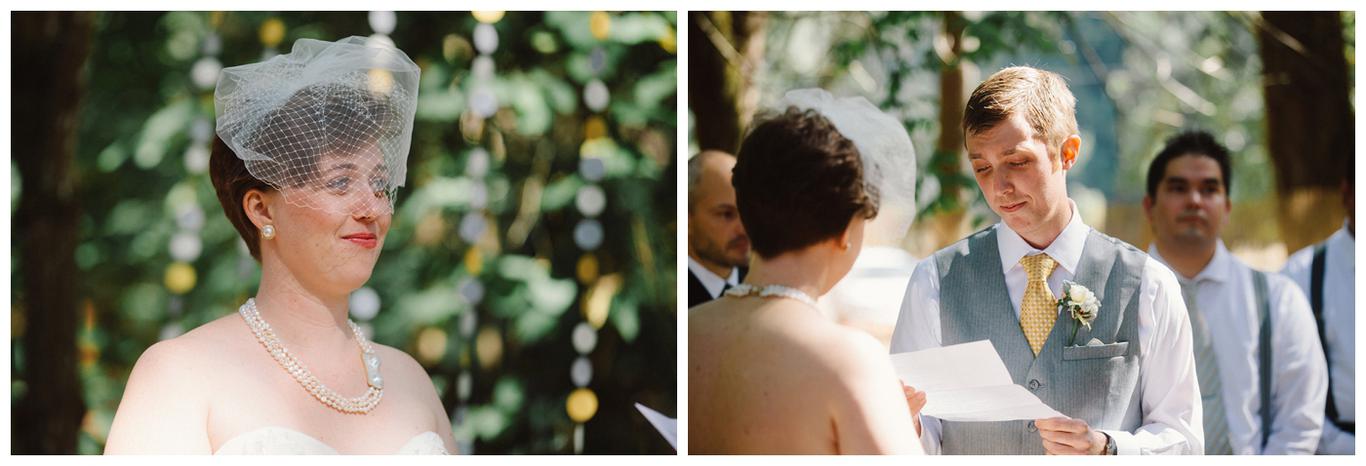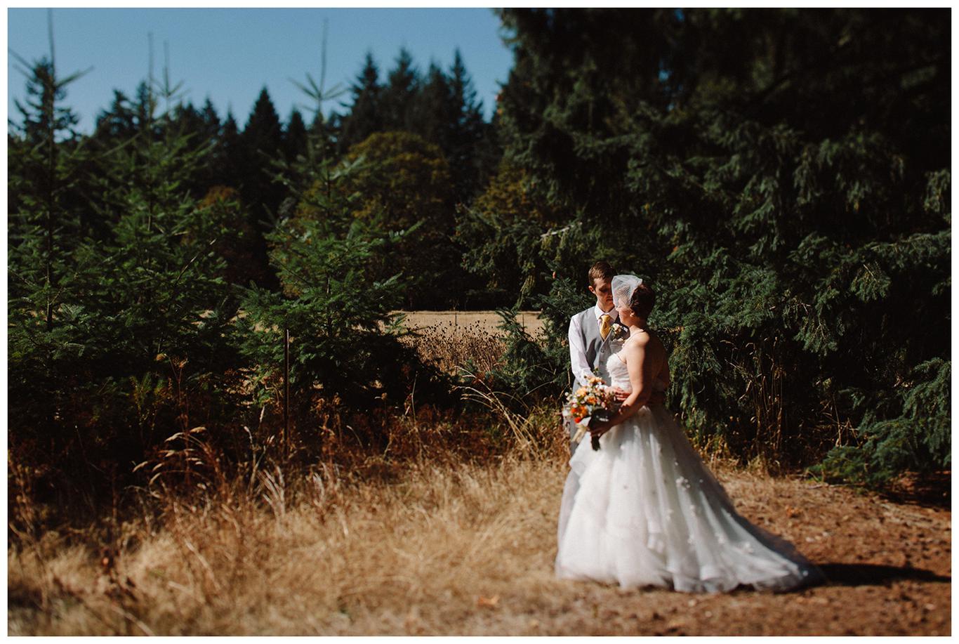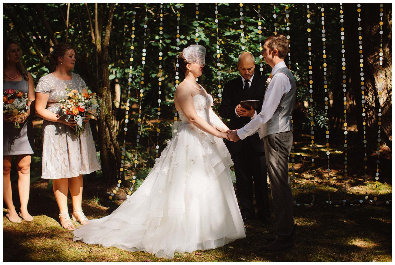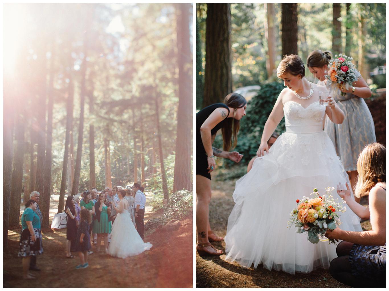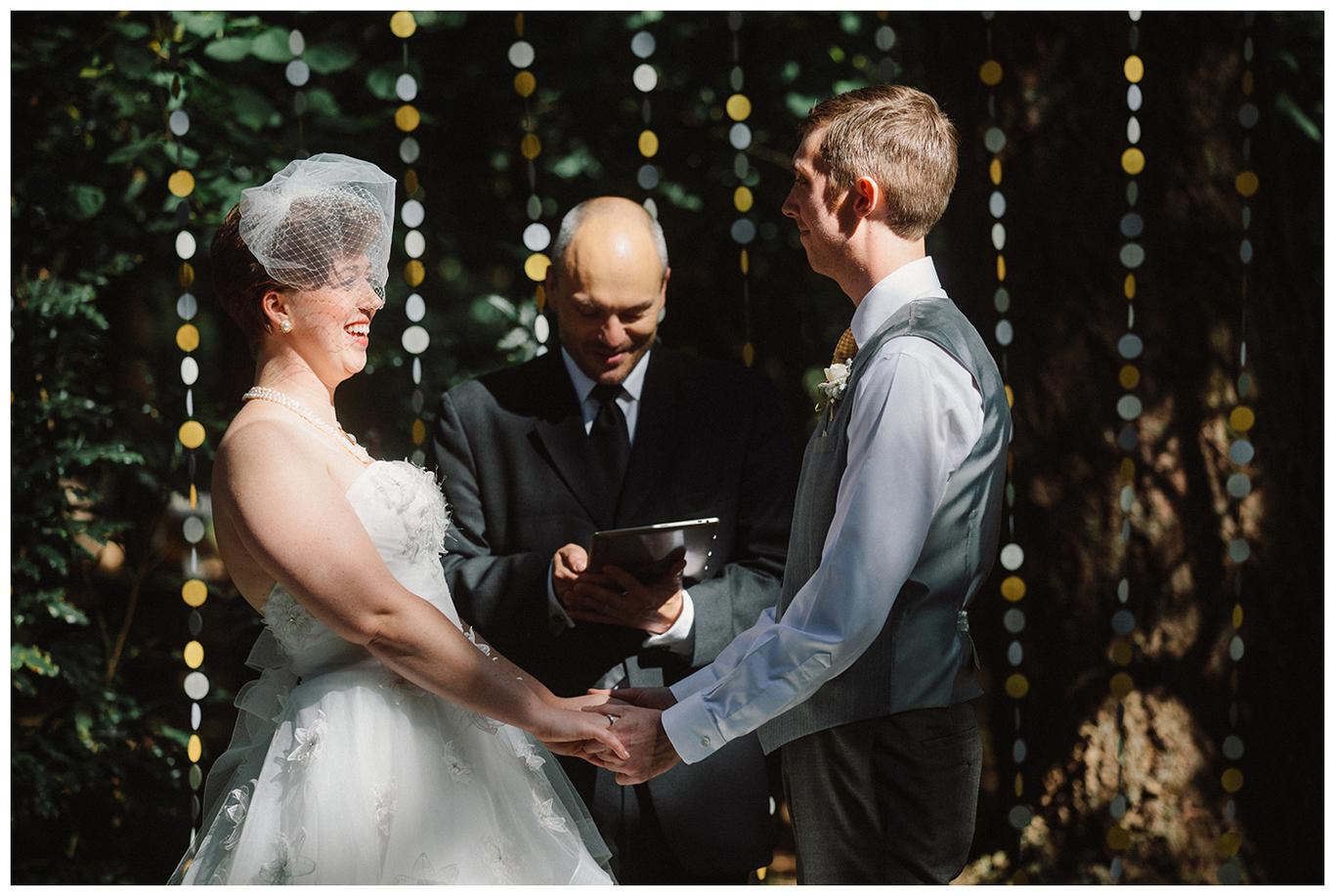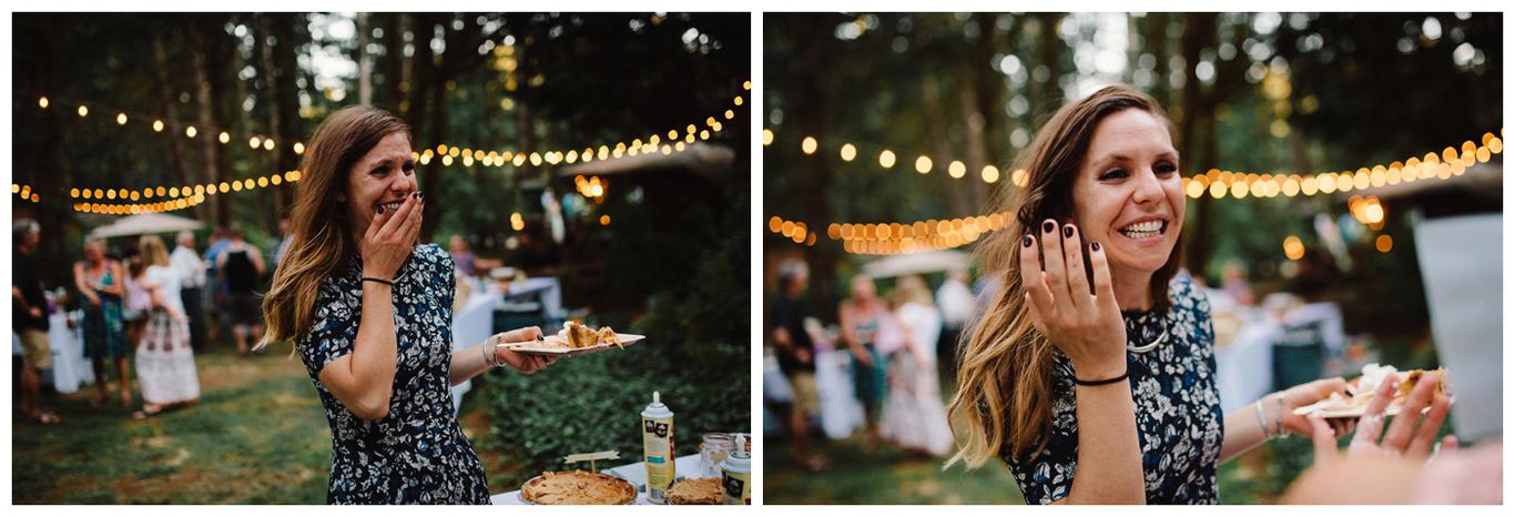 Sweet. Personalized. Hilarious. Emotional. Goofy. Loving. Amy and Ben’s wedding day was all of those things and more. These two planned a gorgeous DIY backyard wedding in Salem, and it was absolutely lovely. They started the day getting ready at a big property in Silverton and planned one of the sweetest first looks I have ever witnessed. They hid on either side of a corner, held hands, then exchanged letters and read them while being able to hear each others laughter and tears, but had see each other yet. After they finished reading, they counted to three and peeked out to see each other for the first time and hug, kiss, smile and cry. It was beautiful. They were married a few hours later under the shade of tall trees, surrounded by all their friends and family. The rest of the afternoon was spent mingling, listening to a ton of hilarious toasts, dancing, eating from many different types of pie (all of which Amy and Ben baked themselves), and taking fun photos of course. I had an absolute blast working with these two and getting to document such a unique day. Congratulations Amy and Ben!