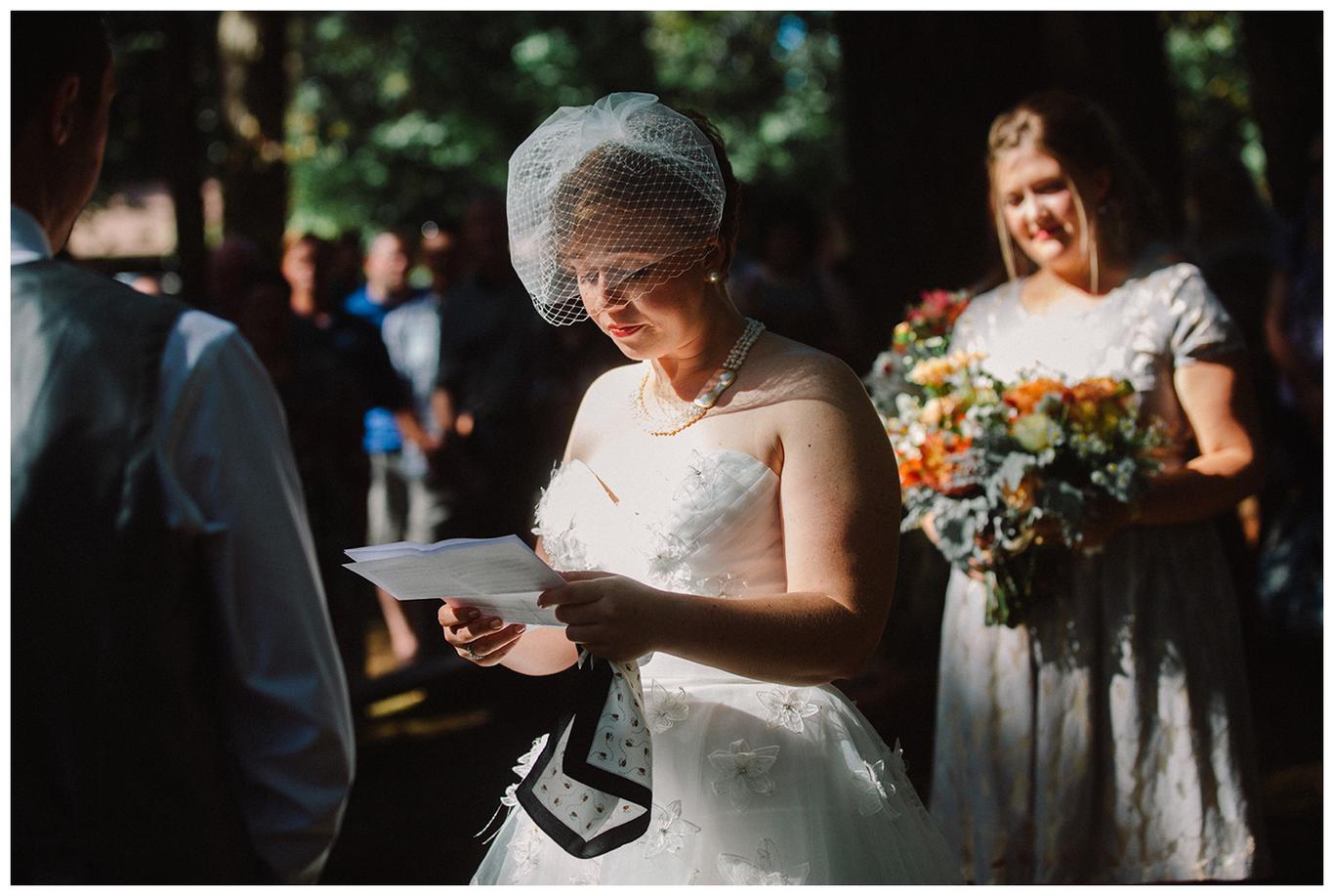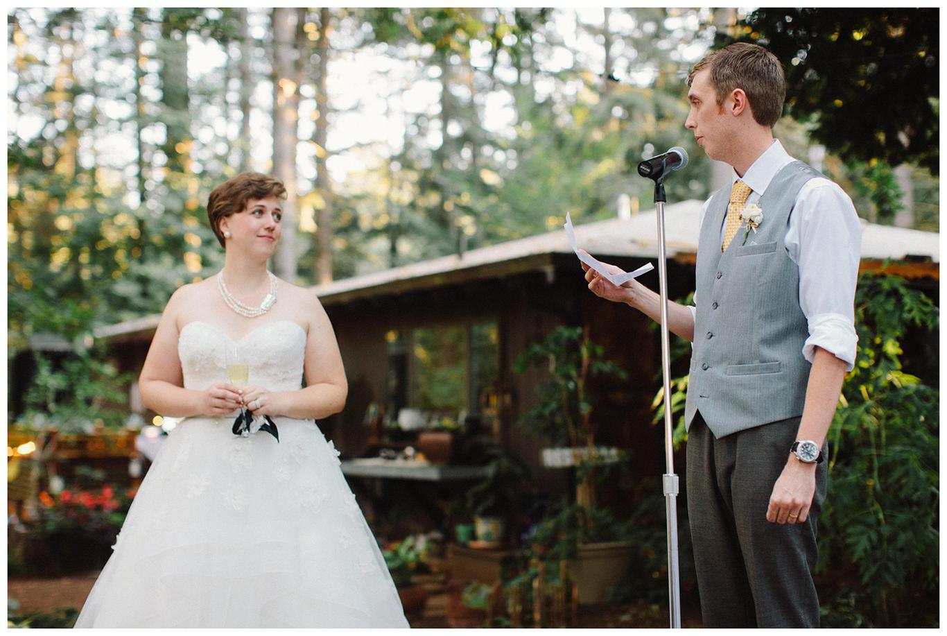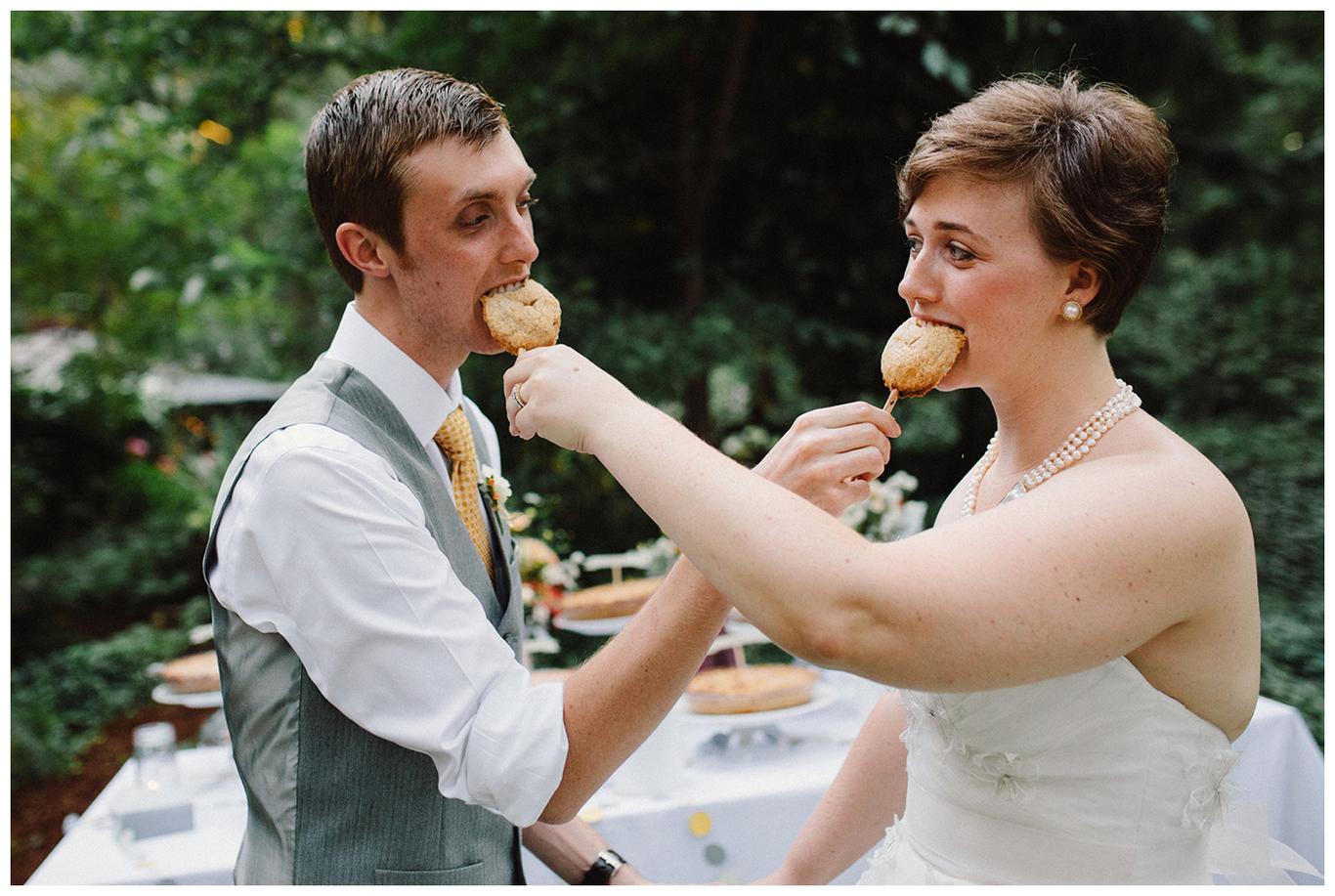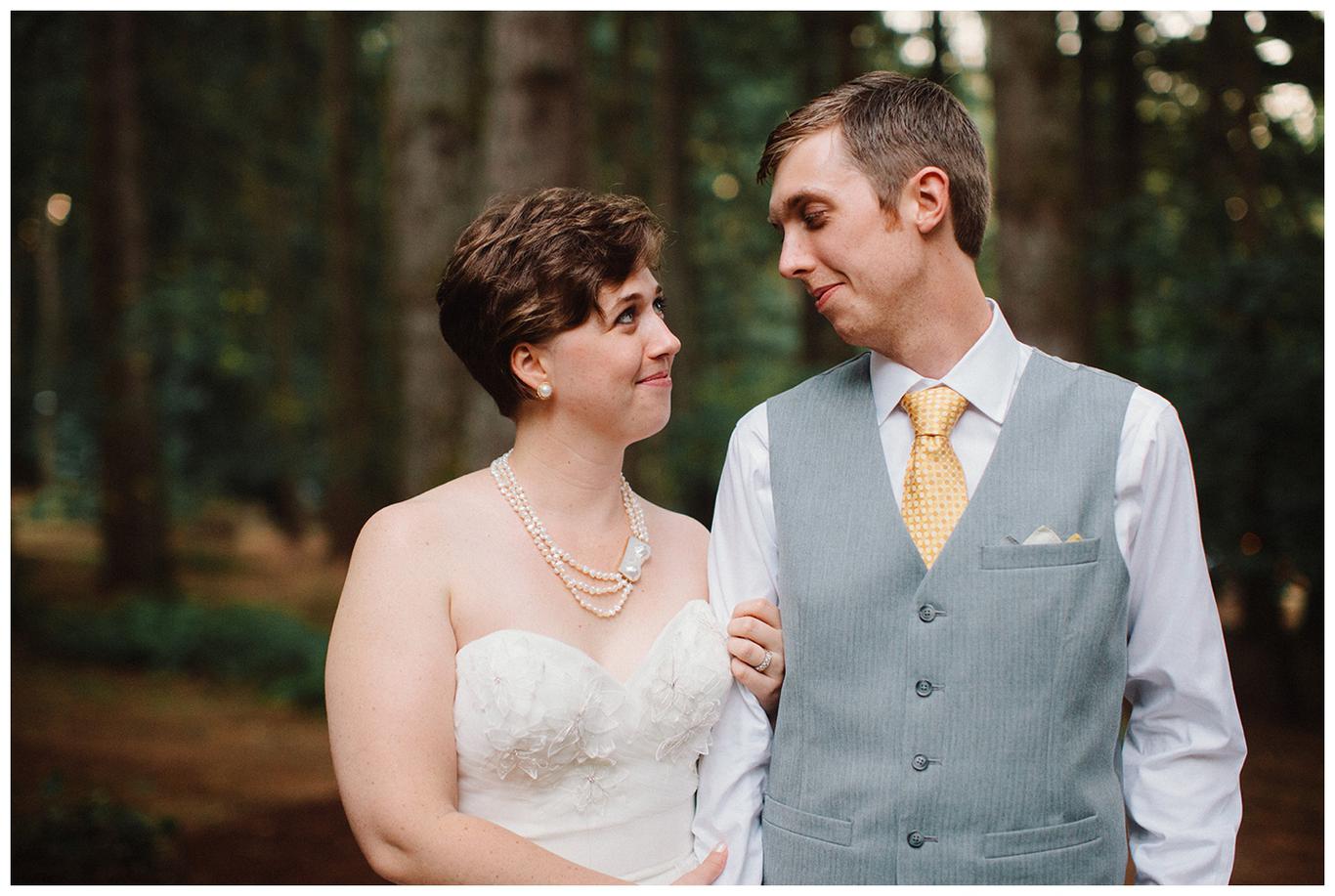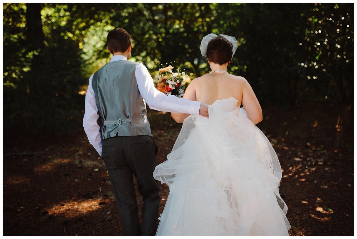 Sweet. Personalized. Hilarious. Emotional. Goofy. Loving. Amy and Ben’s wedding day was all of those things and more. These two planned a gorgeous DIY backyard wedding in Salem, and it was absolutely lovely. They started the day getting ready at a big property in Silverton and planned one of the sweetest first looks I have ever witnessed. They hid on either side of a corner, held hands, then exchanged letters and read them while being able to hear each others laughter and tears, but had see each other yet. After they finished reading, they counted to three and peeked out to see each other for the first time and hug, kiss, smile and cry. It was beautiful. They were married a few hours later under the shade of tall trees, surrounded by all their friends and family. The rest of the afternoon was spent mingling, listening to a ton of hilarious toasts, dancing, eating from many different types of pie (all of which Amy and Ben baked themselves), and taking fun photos of course. I had an absolute blast working with these two and getting to document such a unique day. Congratulations Amy and Ben!
