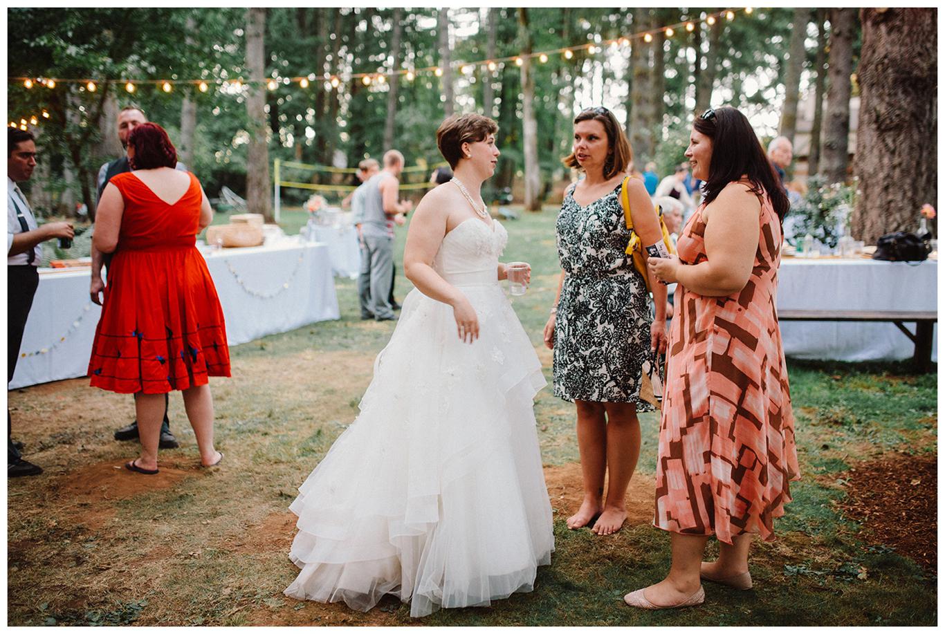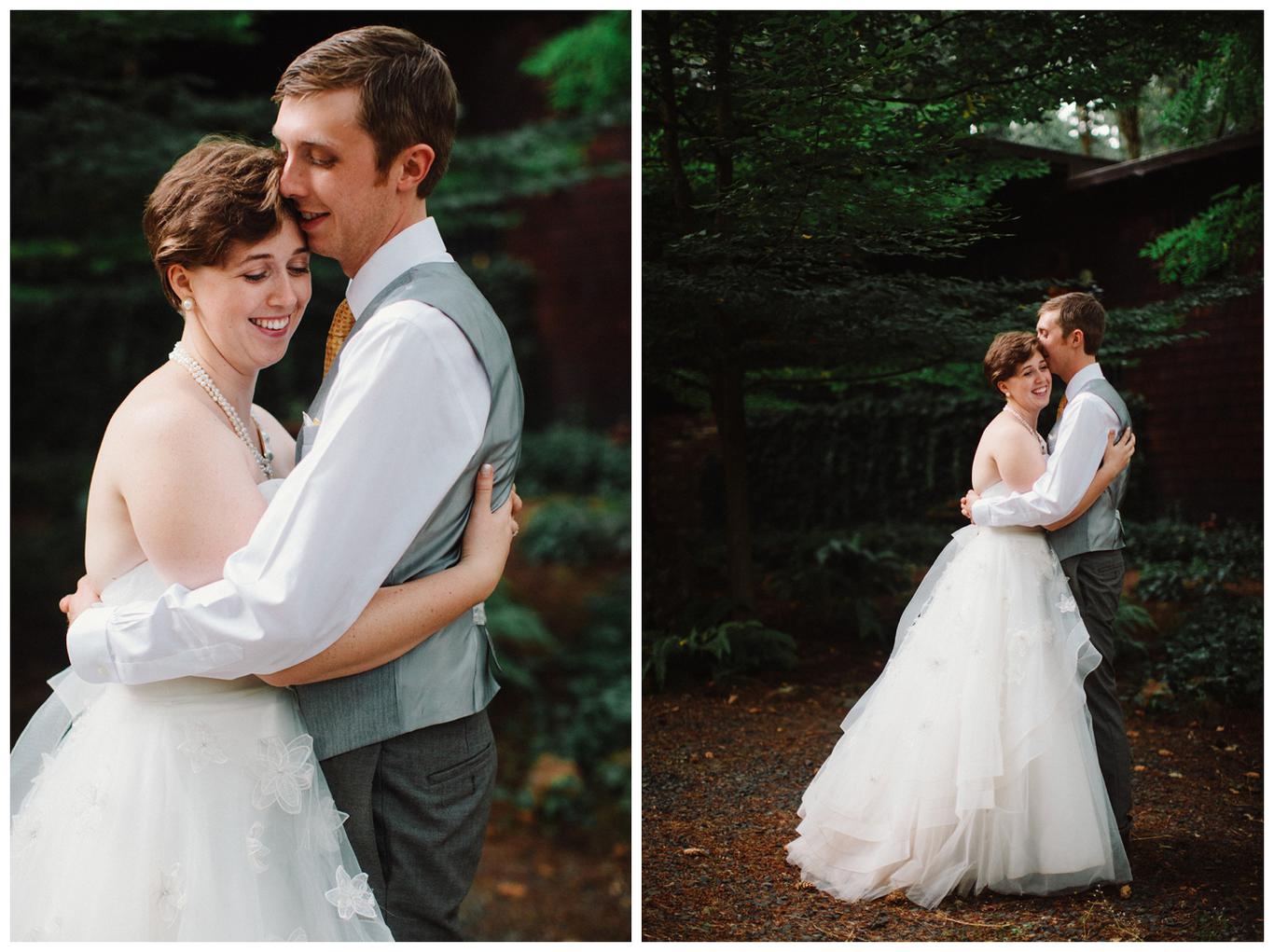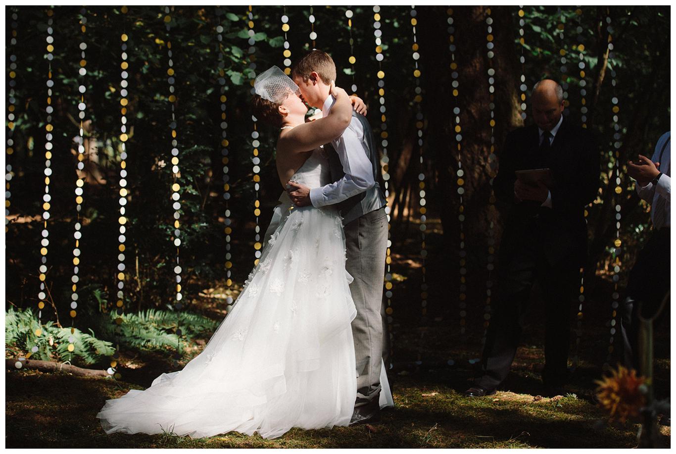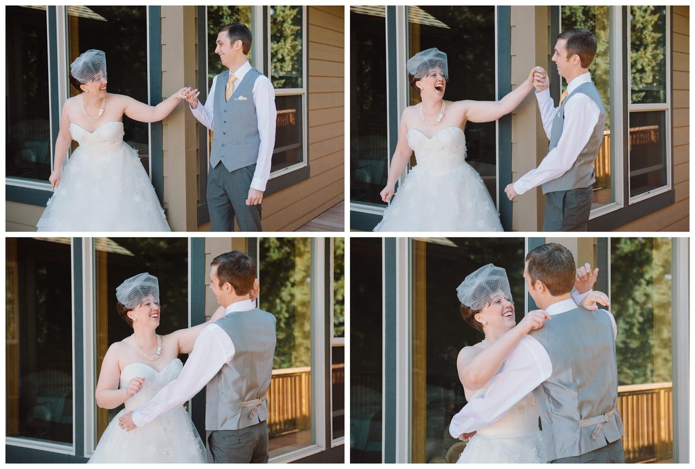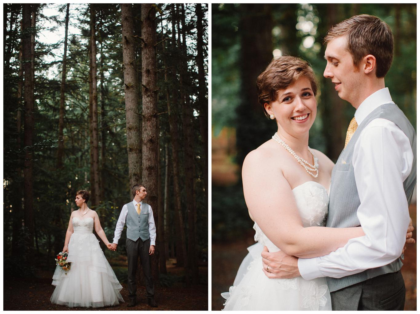 Sweet. Personalized. Hilarious. Emotional. Goofy. Loving. Amy and Ben’s wedding day was all of those things and more. These two planned a gorgeous DIY backyard wedding in Salem, and it was absolutely lovely. They started the day getting ready at a big property in Silverton and planned one of the sweetest first looks I have ever witnessed. They hid on either side of a corner, held hands, then exchanged letters and read them while being able to hear each others laughter and tears, but had see each other yet. After they finished reading, they counted to three and peeked out to see each other for the first time and hug, kiss, smile and cry. It was beautiful. They were married a few hours later under the shade of tall trees, surrounded by all their friends and family. The rest of the afternoon was spent mingling, listening to a ton of hilarious toasts, dancing, eating from many different types of pie (all of which Amy and Ben baked themselves), and taking fun photos of course. I had an absolute blast working with these two and getting to document such a unique day. Congratulations Amy and Ben!