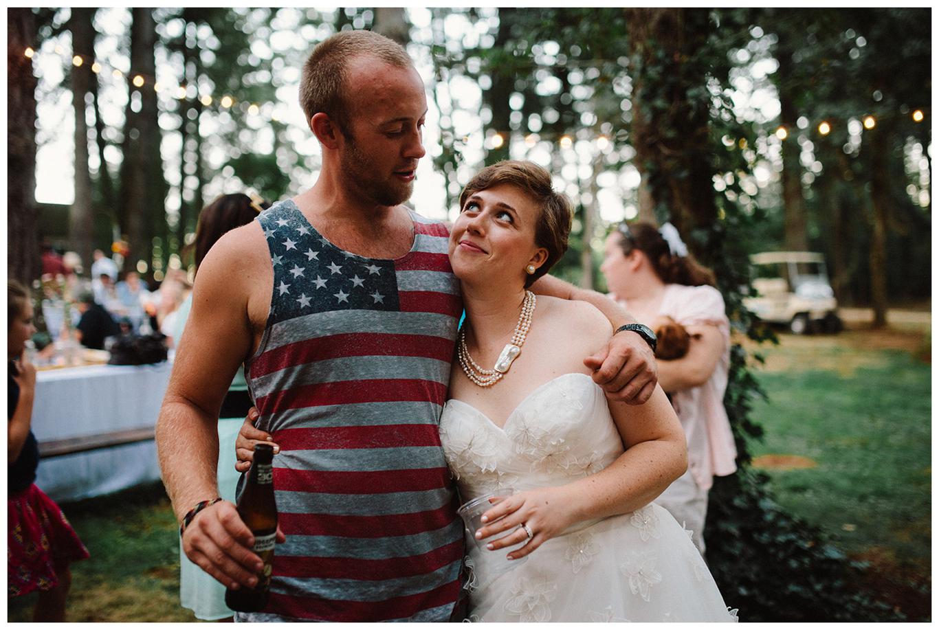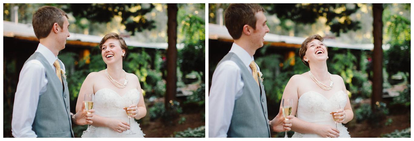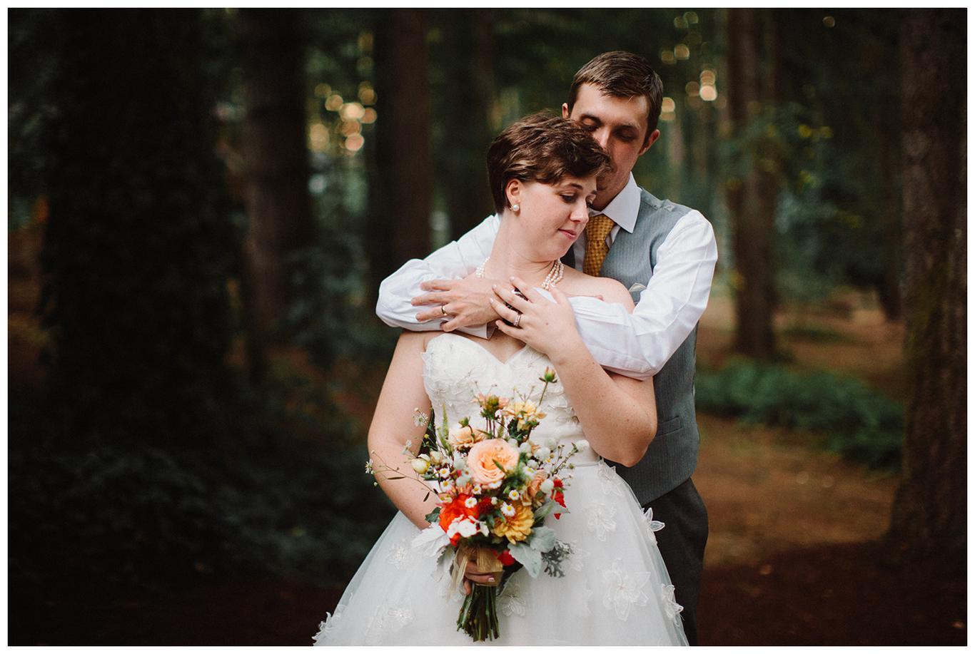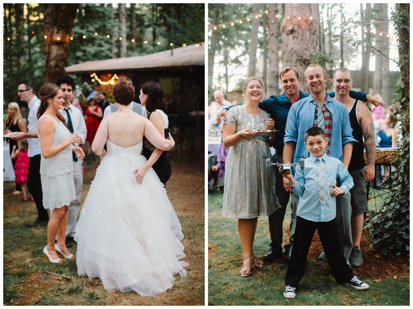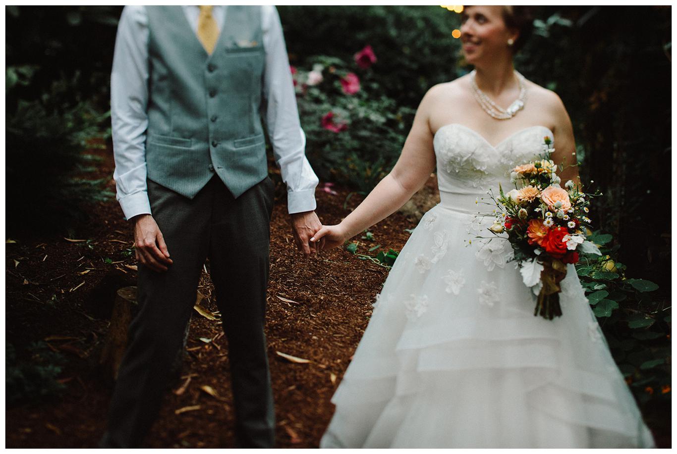 Sweet. Personalized. Hilarious. Emotional. Goofy. Loving. Amy and Ben’s wedding day was all of those things and more. These two planned a gorgeous DIY backyard wedding in Salem, and it was absolutely lovely. They started the day getting ready at a big property in Silverton and planned one of the sweetest first looks I have ever witnessed. They hid on either side of a corner, held hands, then exchanged letters and read them while being able to hear each others laughter and tears, but had see each other yet. After they finished reading, they counted to three and peeked out to see each other for the first time and hug, kiss, smile and cry. It was beautiful. They were married a few hours later under the shade of tall trees, surrounded by all their friends and family. The rest of the afternoon was spent mingling, listening to a ton of hilarious toasts, dancing, eating from many different types of pie (all of which Amy and Ben baked themselves), and taking fun photos of course. I had an absolute blast working with these two and getting to document such a unique day. Congratulations Amy and Ben!