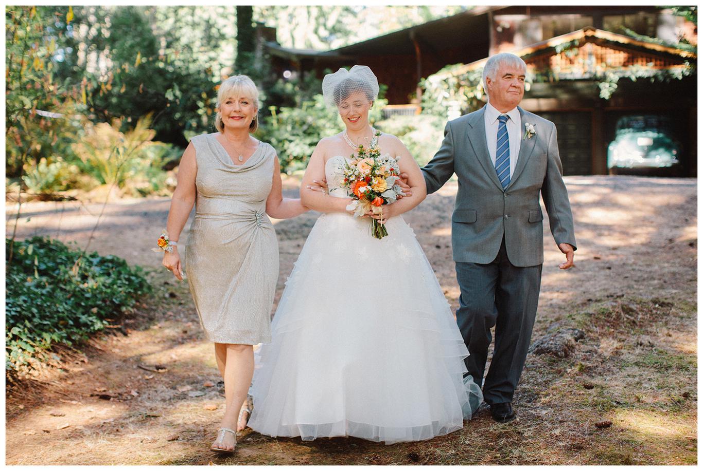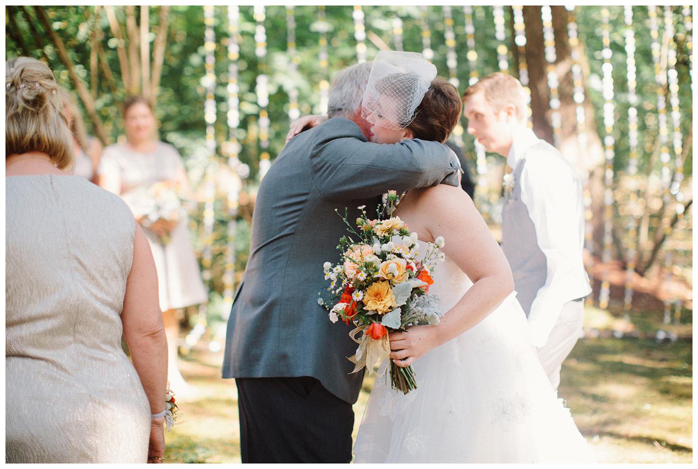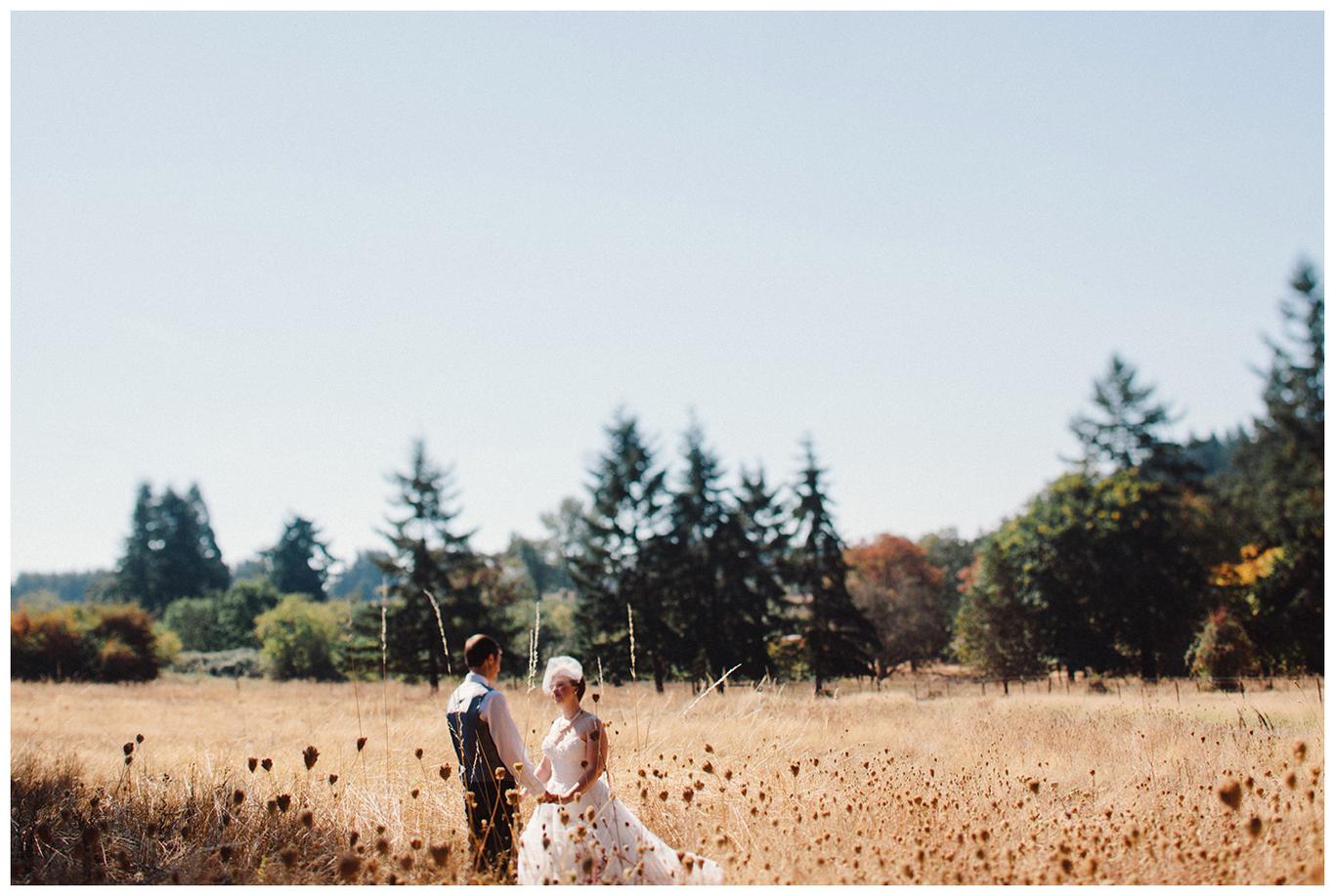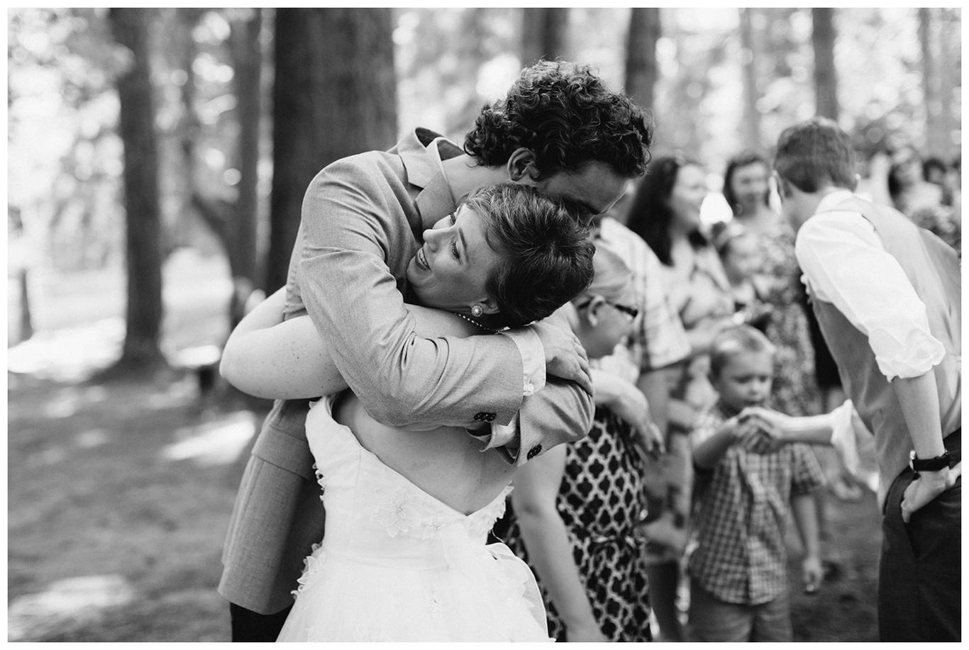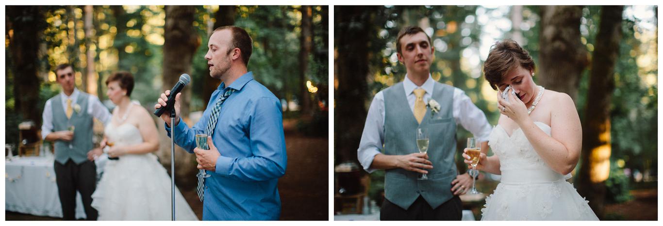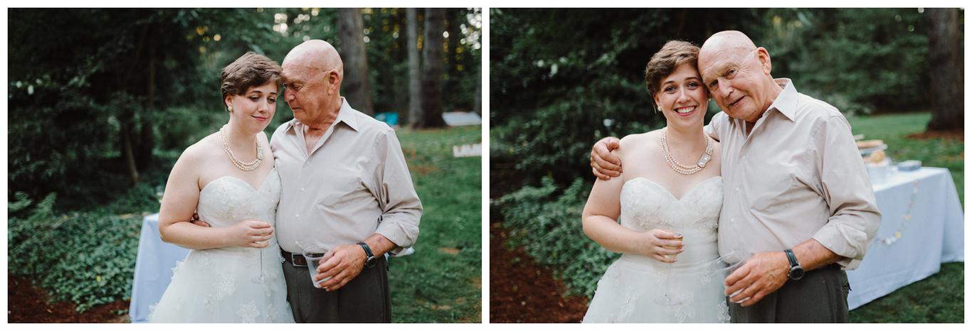 Sweet. Personalized. Hilarious. Emotional. Goofy. Loving. Amy and Ben’s wedding day was all of those things and more. These two planned a gorgeous DIY backyard wedding in Salem, and it was absolutely lovely. They started the day getting ready at a big property in Silverton and planned one of the sweetest first looks I have ever witnessed. They hid on either side of a corner, held hands, then exchanged letters and read them while being able to hear each others laughter and tears, but had see each other yet. After they finished reading, they counted to three and peeked out to see each other for the first time and hug, kiss, smile and cry. It was beautiful. They were married a few hours later under the shade of tall trees, surrounded by all their friends and family. The rest of the afternoon was spent mingling, listening to a ton of hilarious toasts, dancing, eating from many different types of pie (all of which Amy and Ben baked themselves), and taking fun photos of course. I had an absolute blast working with these two and getting to document such a unique day. Congratulations Amy and Ben!