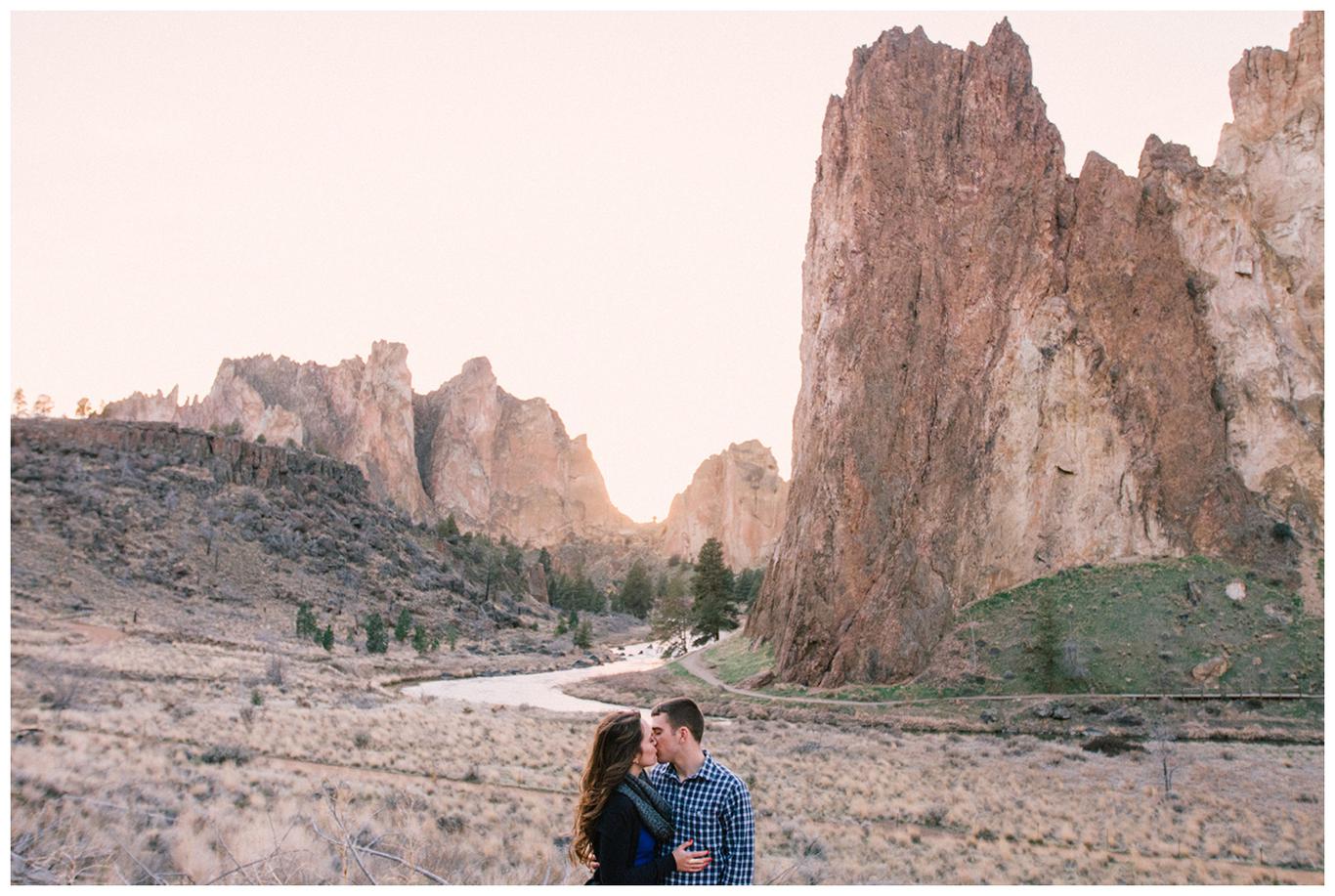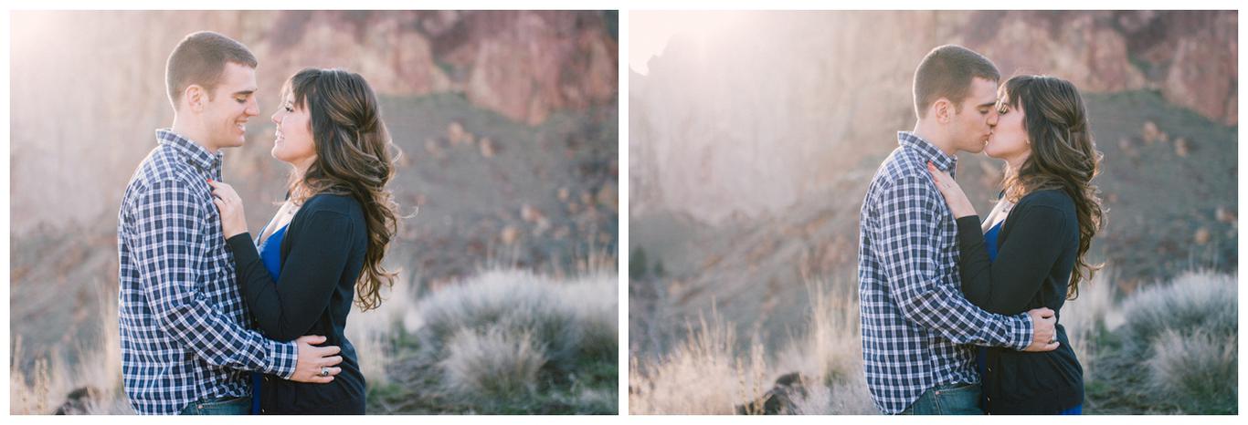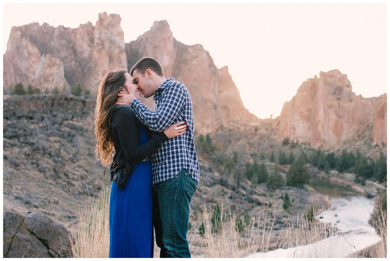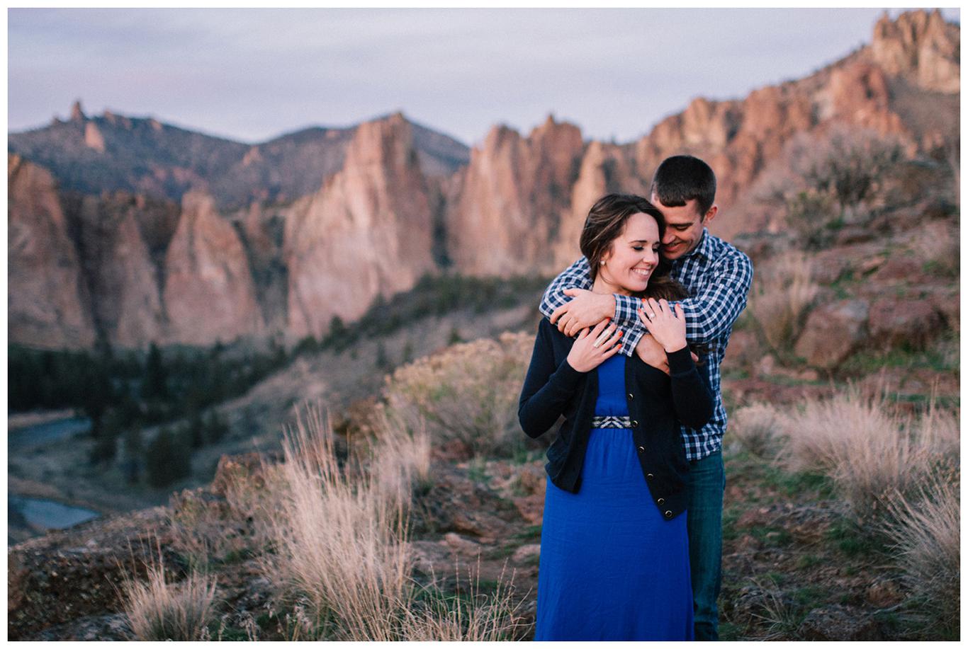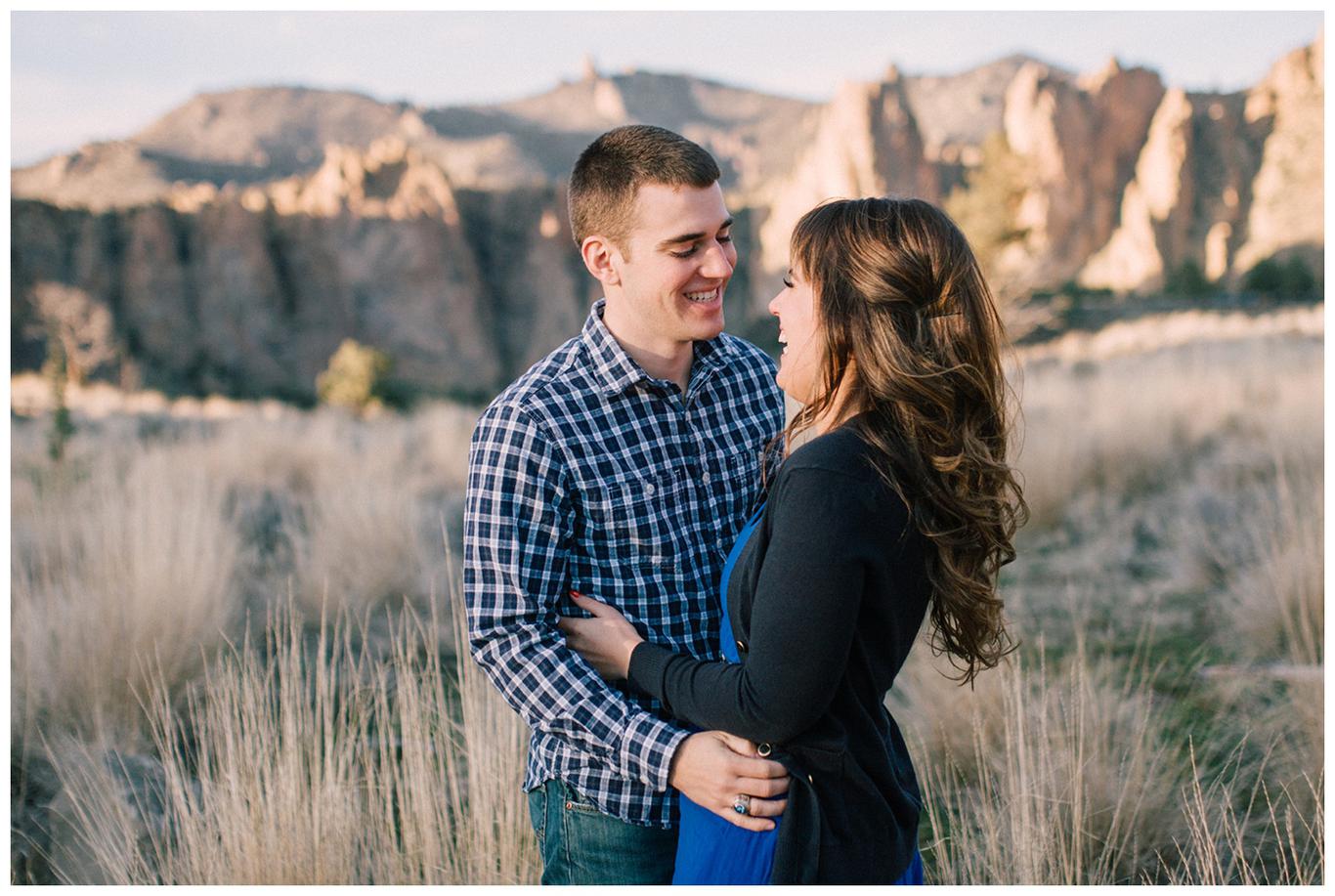 I had never met Sarah or Chris until this day, but oh my gosh did I love them. They are funny and kind, giggly and goofy, adventurous and amazing. We met up in Bend and drove for miles and miles, laughing in the car, telling stories, jumping out, running across highways, tramping through underbrush, chasing the light the whole time. They’ve been doing long distance for two years now and I could tell that every moment together was worth so much to them. I was thrilled when they suggested doing their engagement photos in Central Oregon because I absolutely love getting to shoot in this part of the state. We shot outside of Sisters, up on Santiam Pass and then finished the night at Smith Rock State Park, watching as a gorgeous sunset lit up the sky to make the day even more perfect. And oh yeah โ it was Valentine’s day. Couldn’t get any better than that. Sarah and Chris โ thank you for adventuring and exploring with me. Thank you for being game to climb up scary rocks in high winds in sandals. Thank you for making this day so, so much fun. I cannot wait to shoot your wedding this summer!