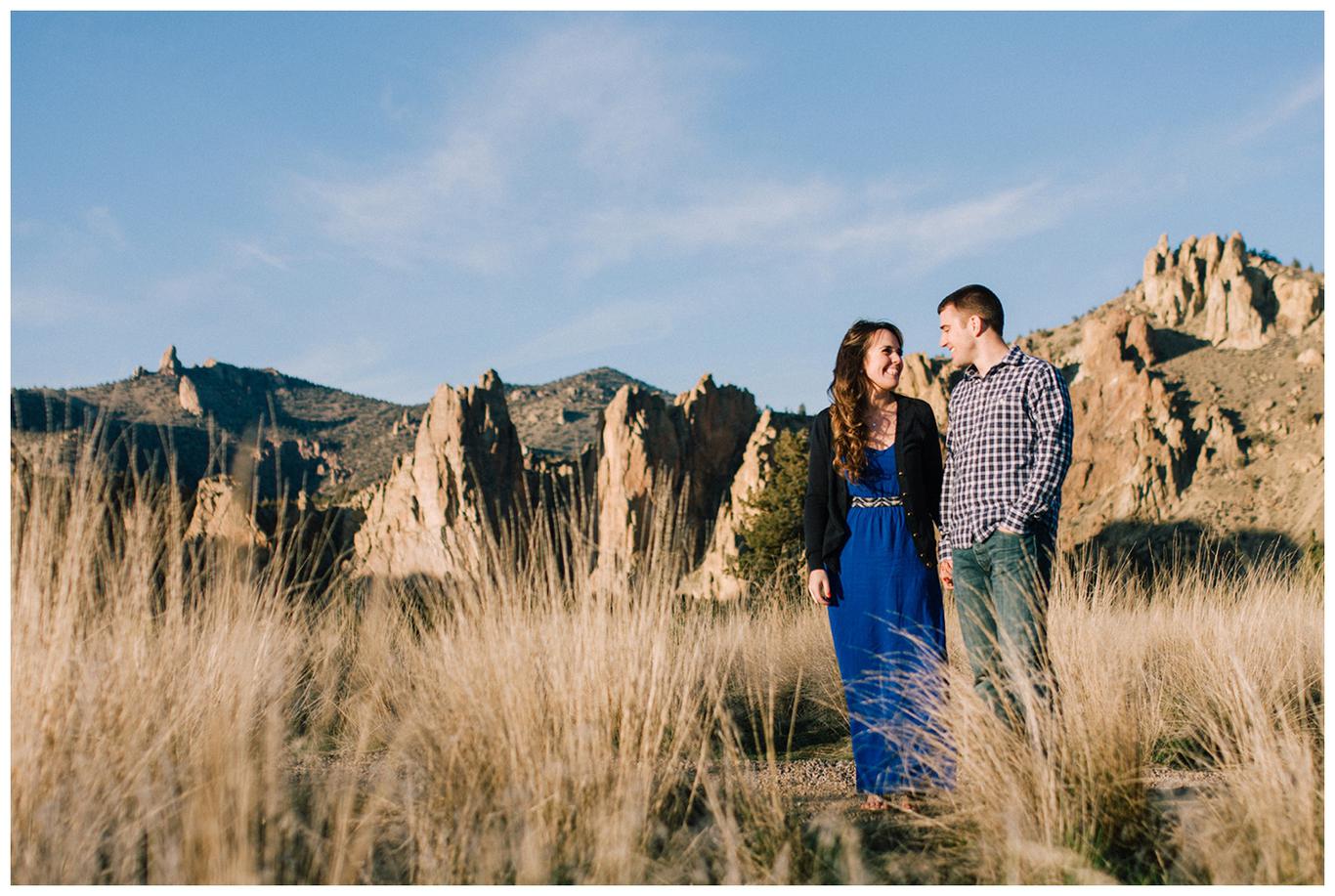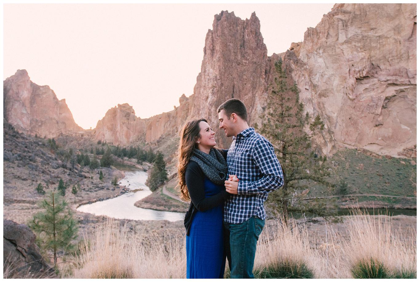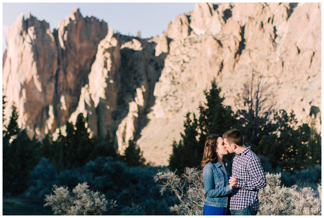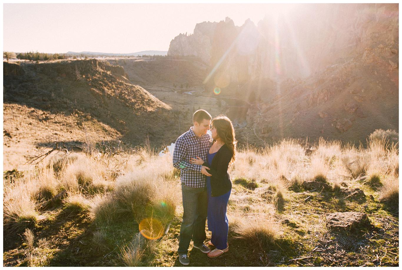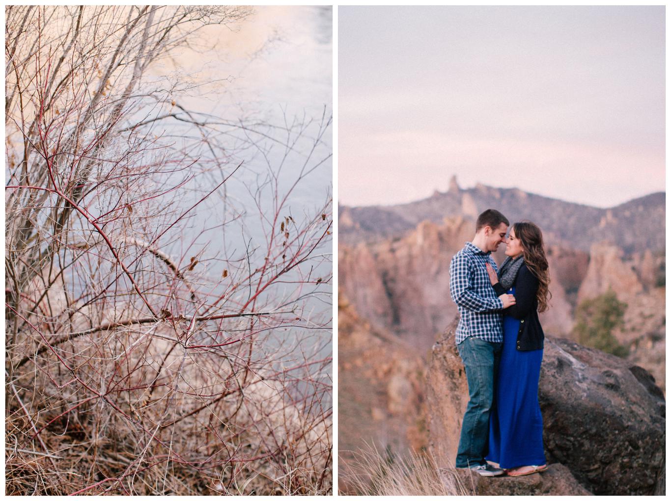 I had never met Sarah or Chris until this day, but oh my gosh did I love them. They are funny and kind, giggly and goofy, adventurous and amazing. We met up in Bend and drove for miles and miles, laughing in the car, telling stories, jumping out, running across highways, tramping through underbrush, chasing the light the whole time. They’ve been doing long distance for two years now and I could tell that every moment together was worth so much to them. I was thrilled when they suggested doing their engagement photos in Central Oregon because I absolutely love getting to shoot in this part of the state. We shot outside of Sisters, up on Santiam Pass and then finished the night at Smith Rock State Park, watching as a gorgeous sunset lit up the sky to make the day even more perfect. And oh yeah โ it was Valentine’s day. Couldn’t get any better than that. Sarah and Chris โ thank you for adventuring and exploring with me. Thank you for being game to climb up scary rocks in high winds in sandals. Thank you for making this day so, so much fun. I cannot wait to shoot your wedding this summer!