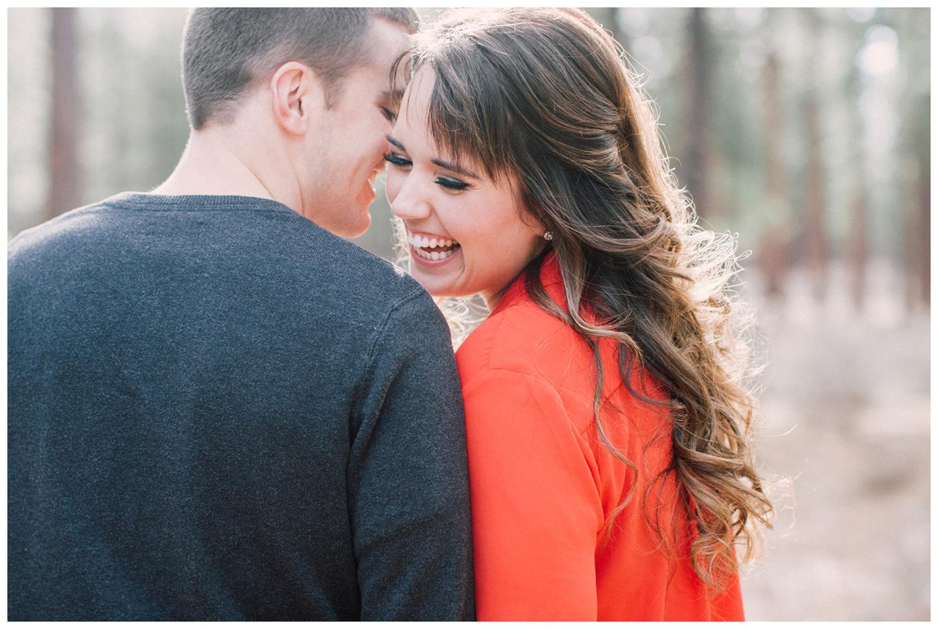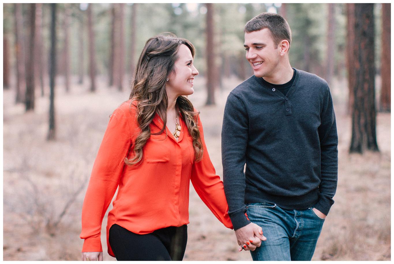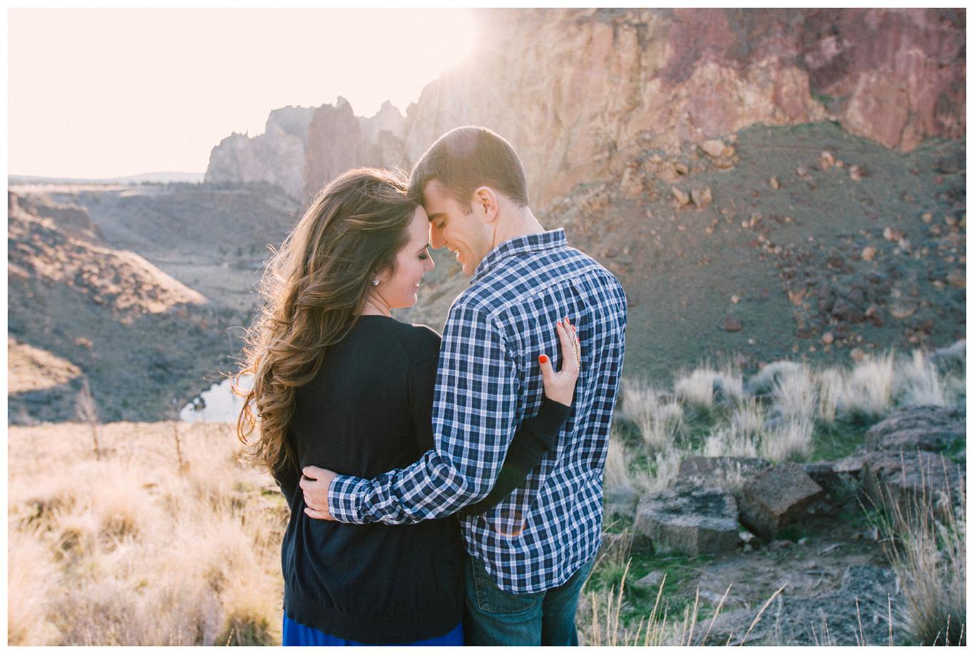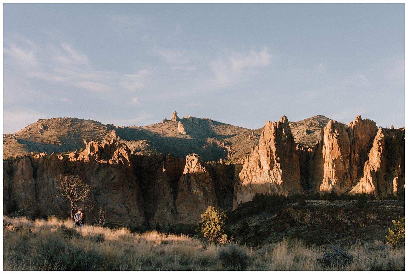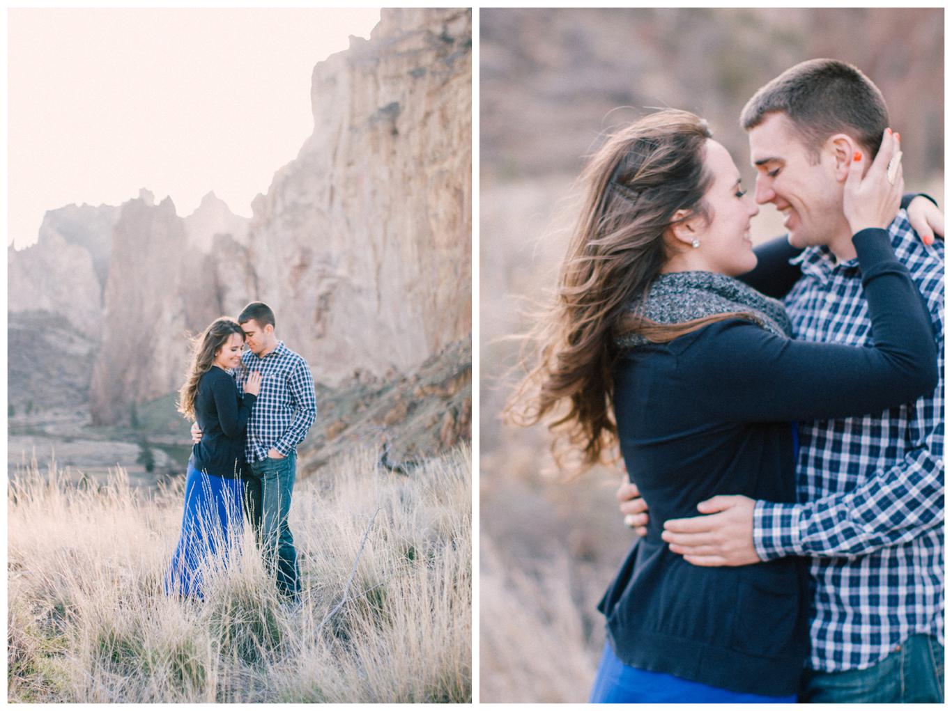 I had never met Sarah or Chris until this day, but oh my gosh did I love them. They are funny and kind, giggly and goofy, adventurous and amazing. We met up in Bend and drove for miles and miles, laughing in the car, telling stories, jumping out, running across highways, tramping through underbrush, chasing the light the whole time. They’ve been doing long distance for two years now and I could tell that every moment together was worth so much to them. I was thrilled when they suggested doing their engagement photos in Central Oregon because I absolutely love getting to shoot in this part of the state. We shot outside of Sisters, up on Santiam Pass and then finished the night at Smith Rock State Park, watching as a gorgeous sunset lit up the sky to make the day even more perfect. And oh yeah โ it was Valentine’s day. Couldn’t get any better than that. Sarah and Chris โ thank you for adventuring and exploring with me. Thank you for being game to climb up scary rocks in high winds in sandals. Thank you for making this day so, so much fun. I cannot wait to shoot your wedding this summer!