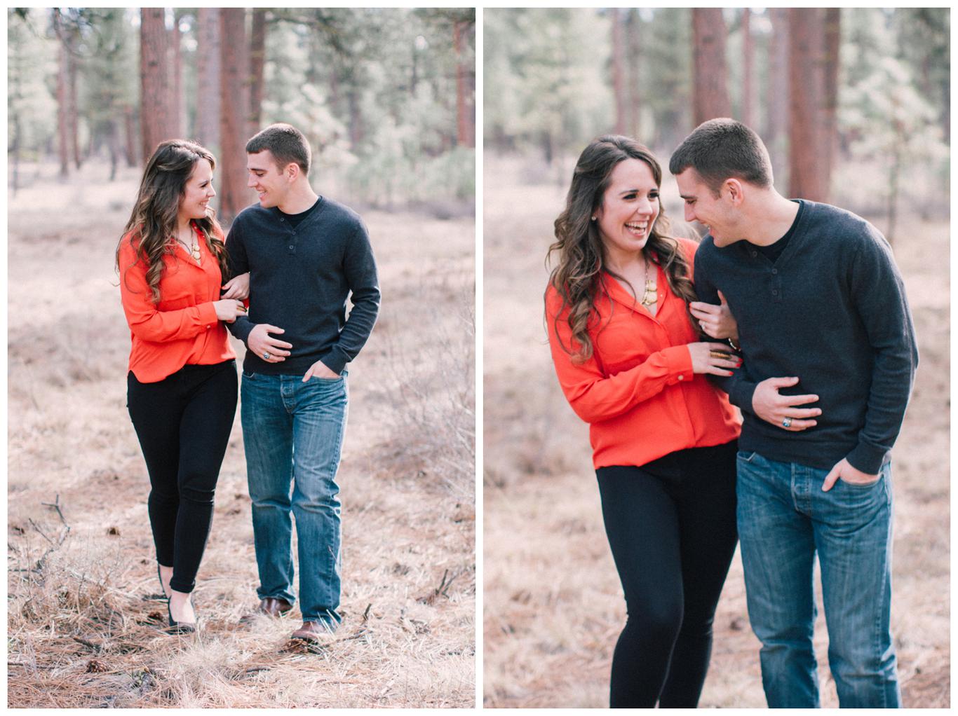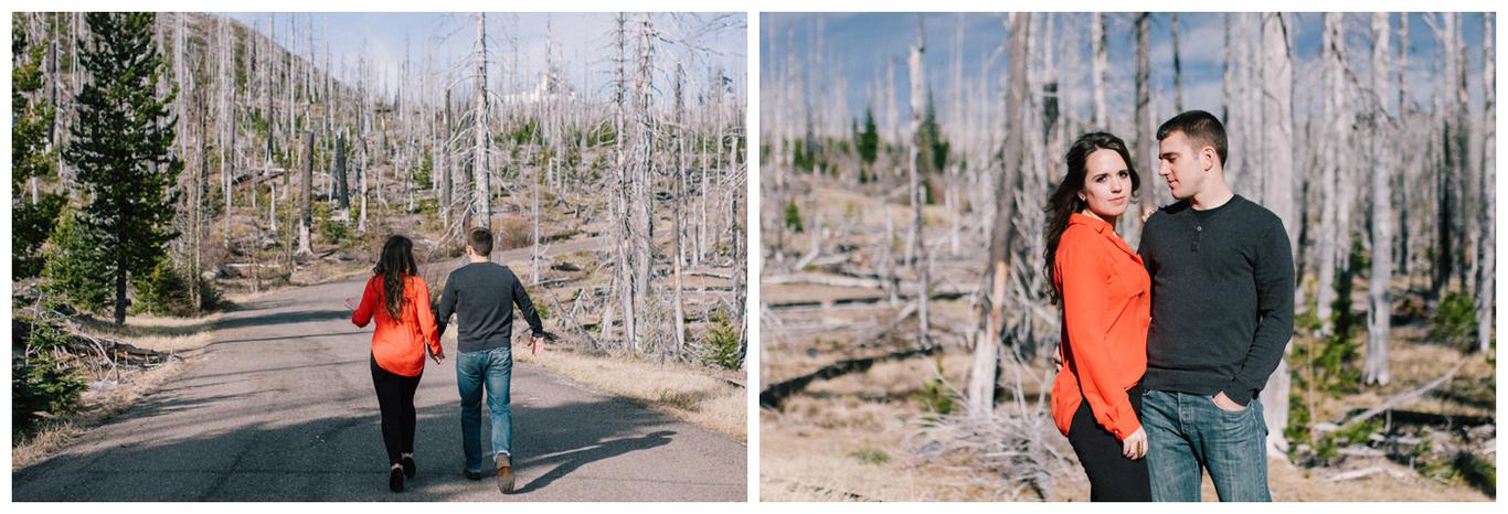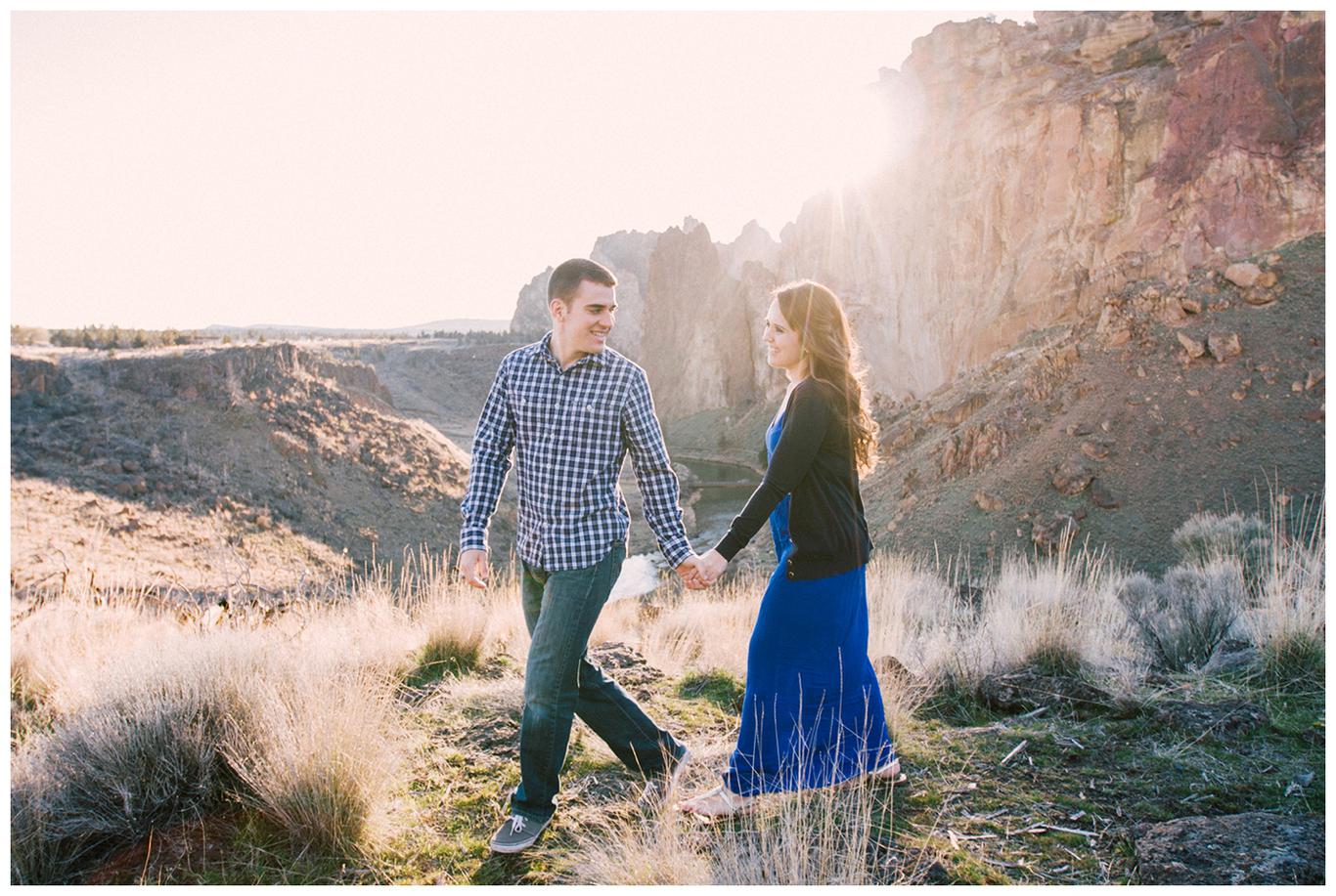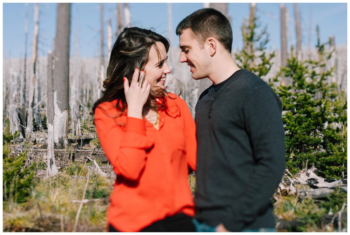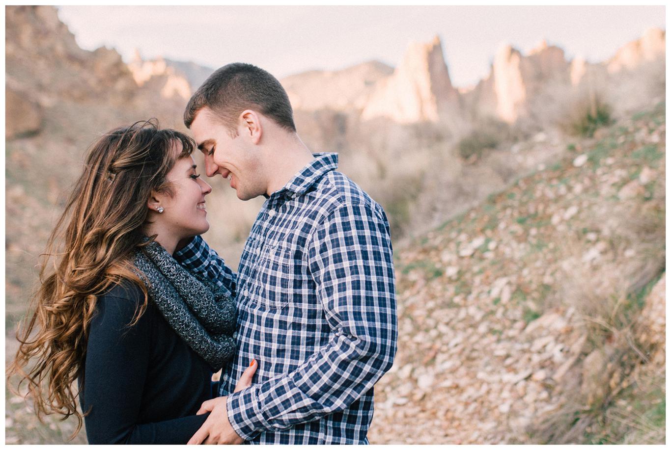 I had never met Sarah or Chris until this day, but oh my gosh did I love them. They are funny and kind, giggly and goofy, adventurous and amazing. We met up in Bend and drove for miles and miles, laughing in the car, telling stories, jumping out, running across highways, tramping through underbrush, chasing the light the whole time. They’ve been doing long distance for two years now and I could tell that every moment together was worth so much to them. I was thrilled when they suggested doing their engagement photos in Central Oregon because I absolutely love getting to shoot in this part of the state. We shot outside of Sisters, up on Santiam Pass and then finished the night at Smith Rock State Park, watching as a gorgeous sunset lit up the sky to make the day even more perfect. And oh yeah โ it was Valentine’s day. Couldn’t get any better than that. Sarah and Chris โ thank you for adventuring and exploring with me. Thank you for being game to climb up scary rocks in high winds in sandals. Thank you for making this day so, so much fun. I cannot wait to shoot your wedding this summer!