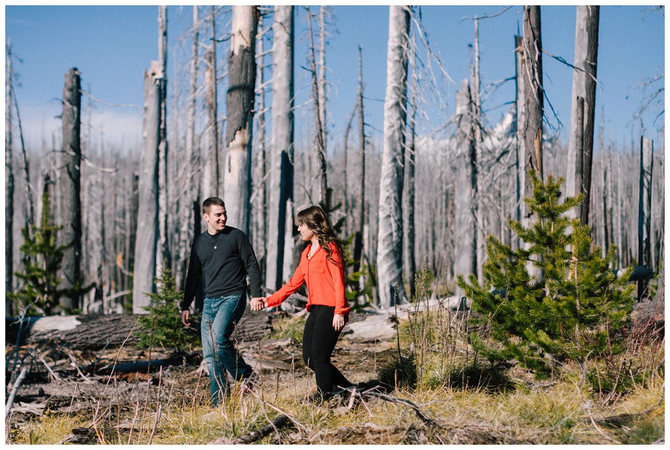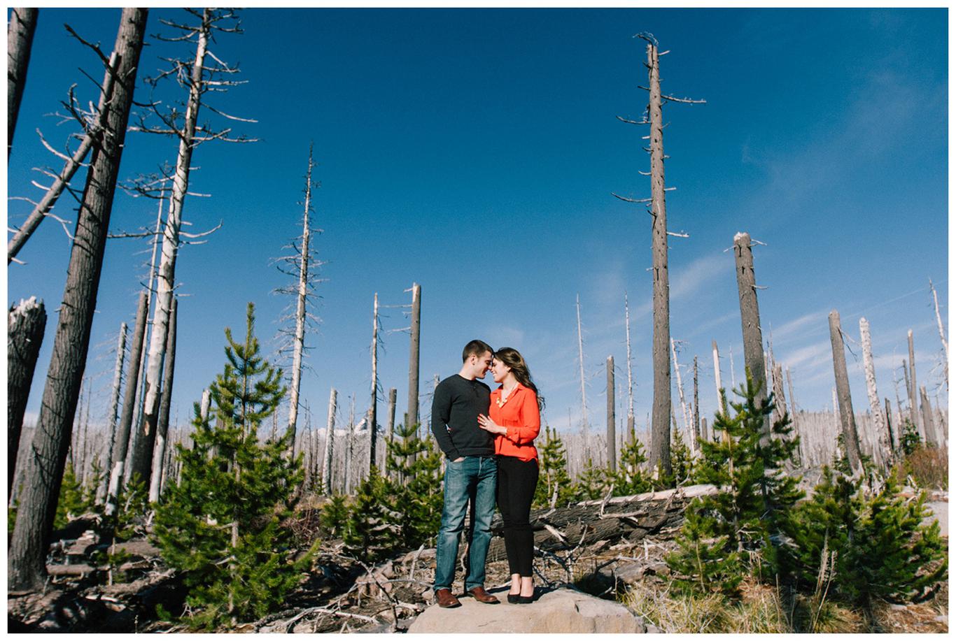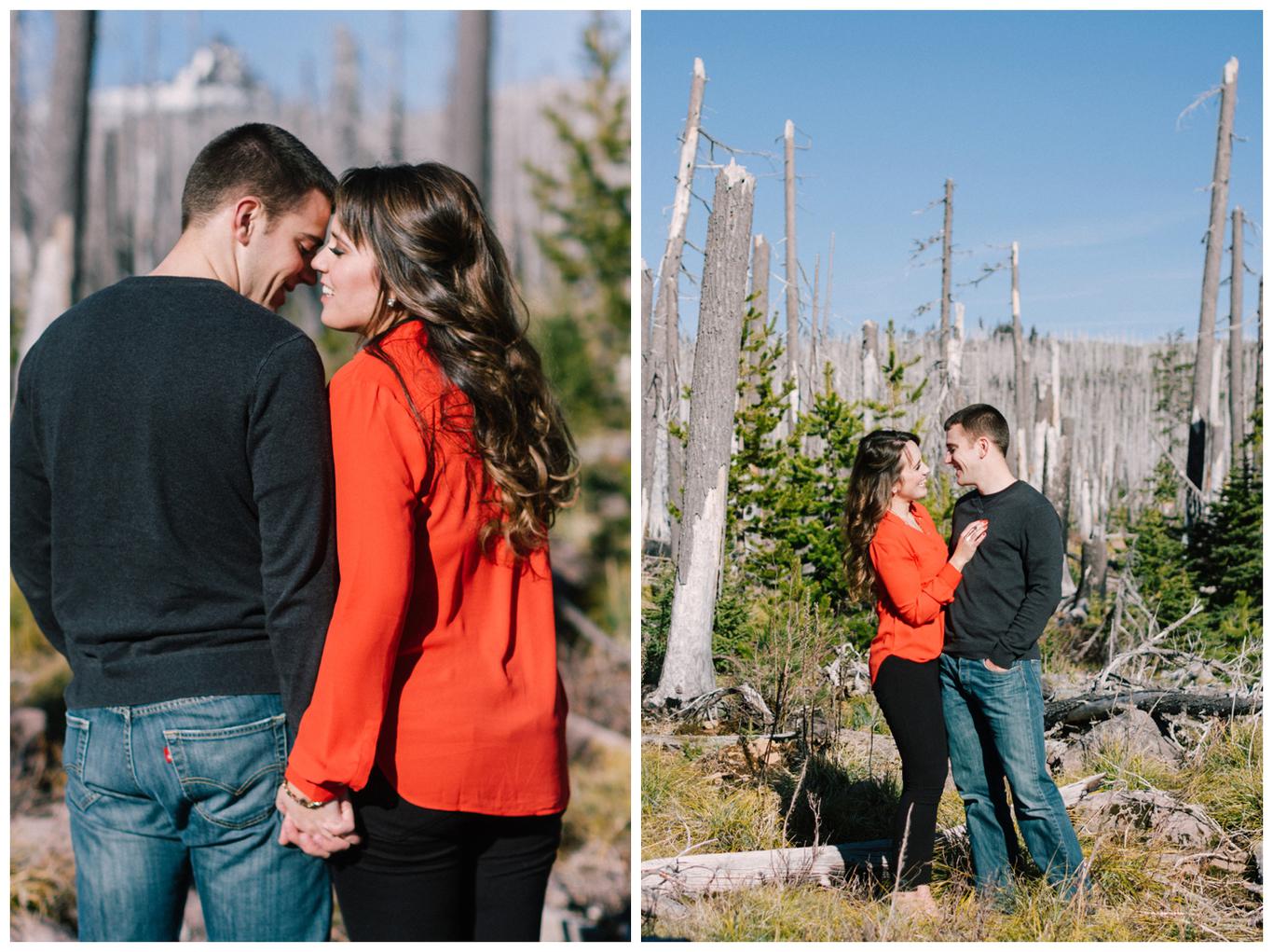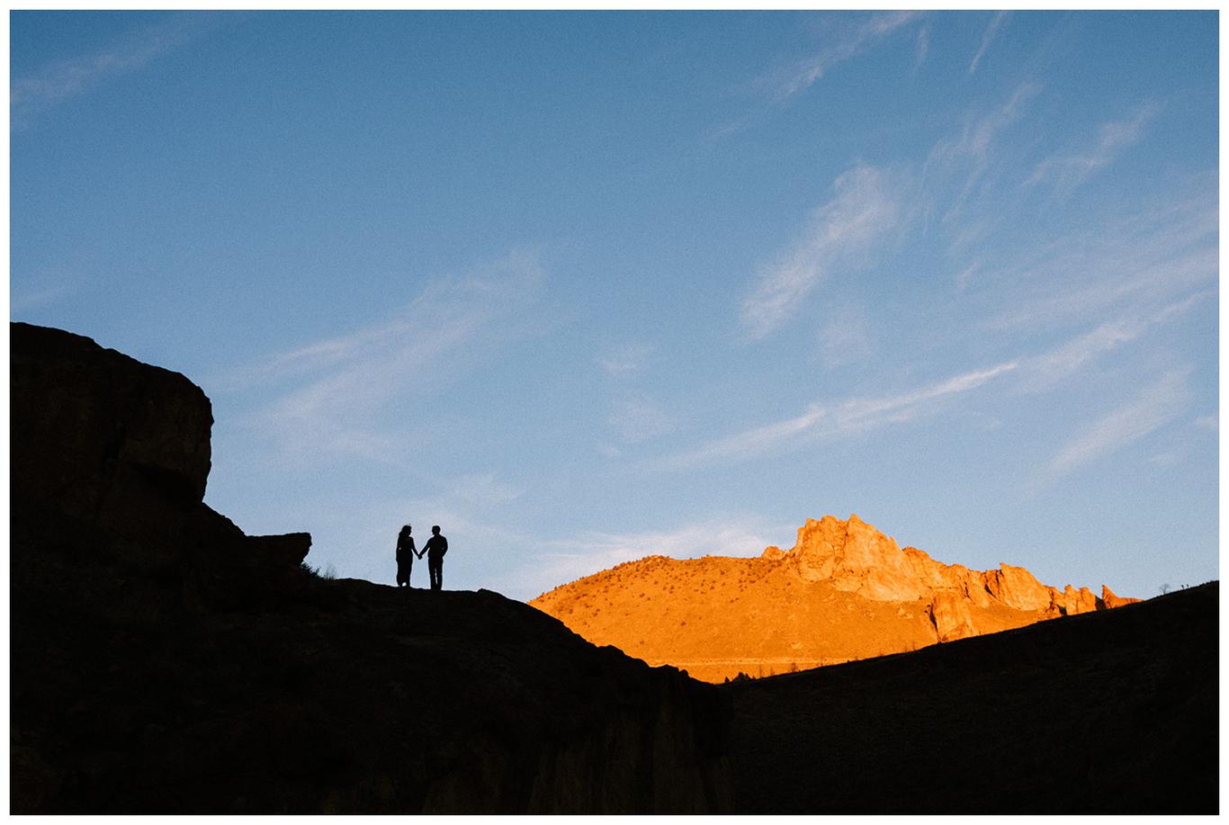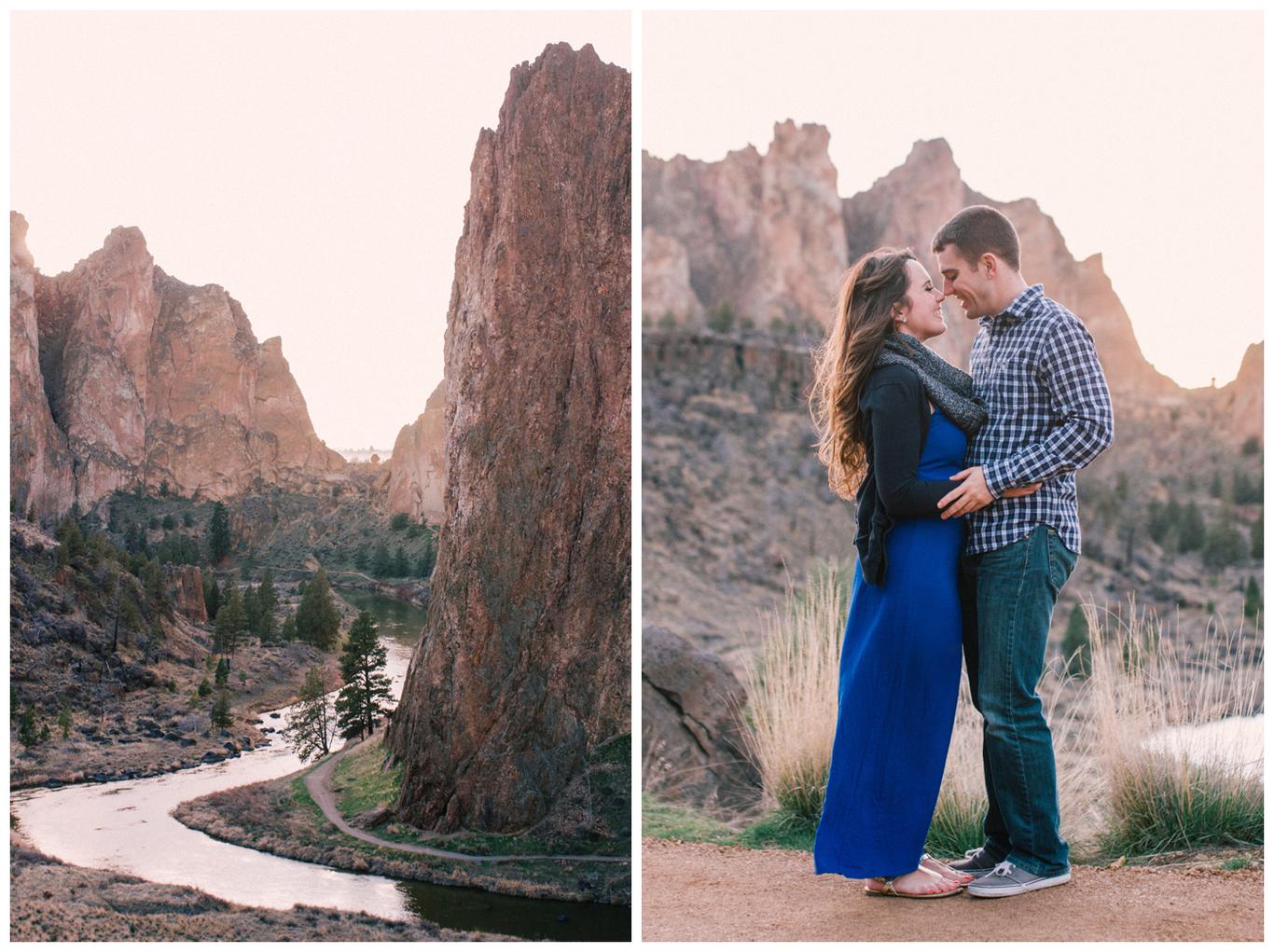 I had never met Sarah or Chris until this day, but oh my gosh did I love them. They are funny and kind, giggly and goofy, adventurous and amazing. We met up in Bend and drove for miles and miles, laughing in the car, telling stories, jumping out, running across highways, tramping through underbrush, chasing the light the whole time. They’ve been doing long distance for two years now and I could tell that every moment together was worth so much to them. I was thrilled when they suggested doing their engagement photos in Central Oregon because I absolutely love getting to shoot in this part of the state. We shot outside of Sisters, up on Santiam Pass and then finished the night at Smith Rock State Park, watching as a gorgeous sunset lit up the sky to make the day even more perfect. And oh yeah โ it was Valentine’s day. Couldn’t get any better than that. Sarah and Chris โ thank you for adventuring and exploring with me. Thank you for being game to climb up scary rocks in high winds in sandals. Thank you for making this day so, so much fun. I cannot wait to shoot your wedding this summer!