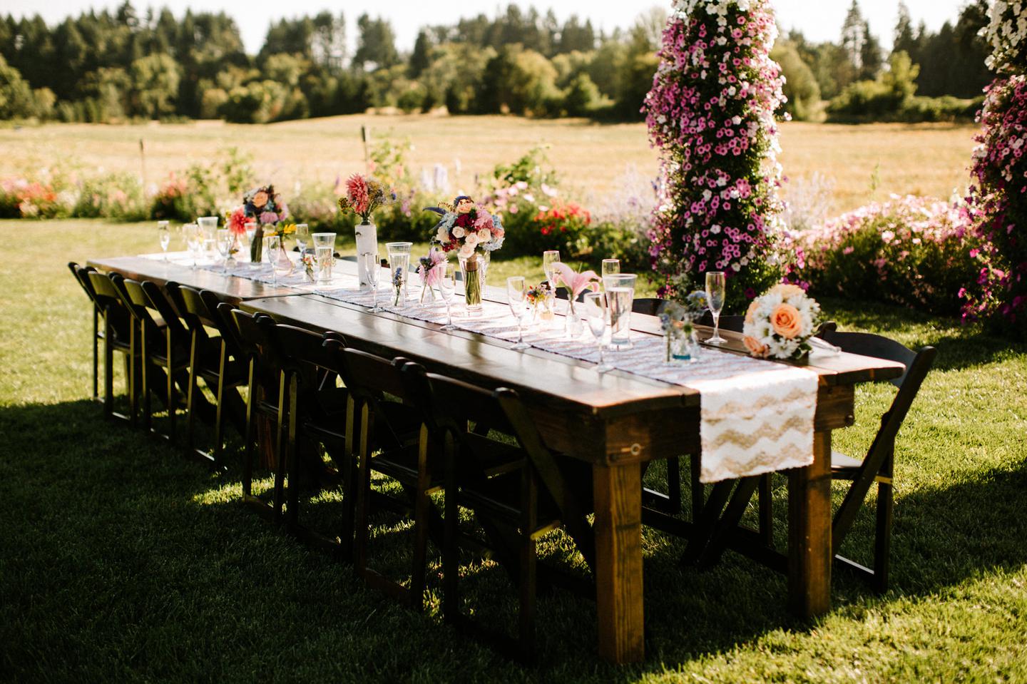 I love when people get married in a place that is meaningful to them. Megan and Isaac had a deeply personal wedding on Isaac’s family property in McMinnville They spent months growing tons of flowers so their reception would be surrounded by color, and everyone came together to help make the day special for the two of them. It was a hot summer day but they were completely surrounded by love and the whole day had such a fun and playful spirit. I photographed Megan’s sister’s wedding the summer before (you can see it here) and it was SO much fun to hang with the whole family again! Congratulations Megan and Isaac! You two are perfect together