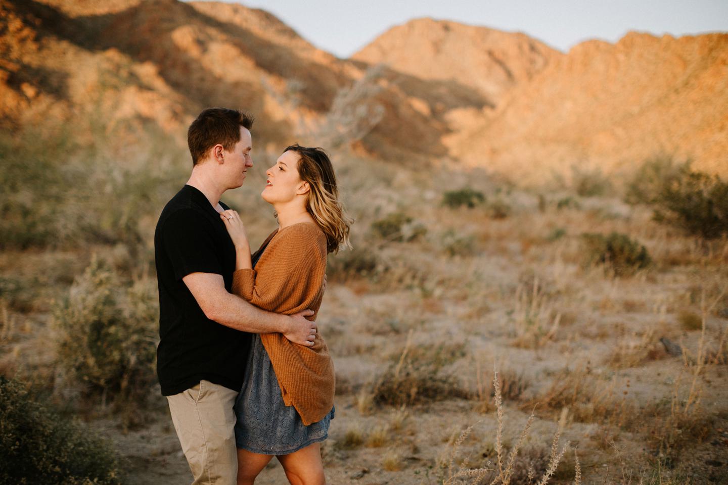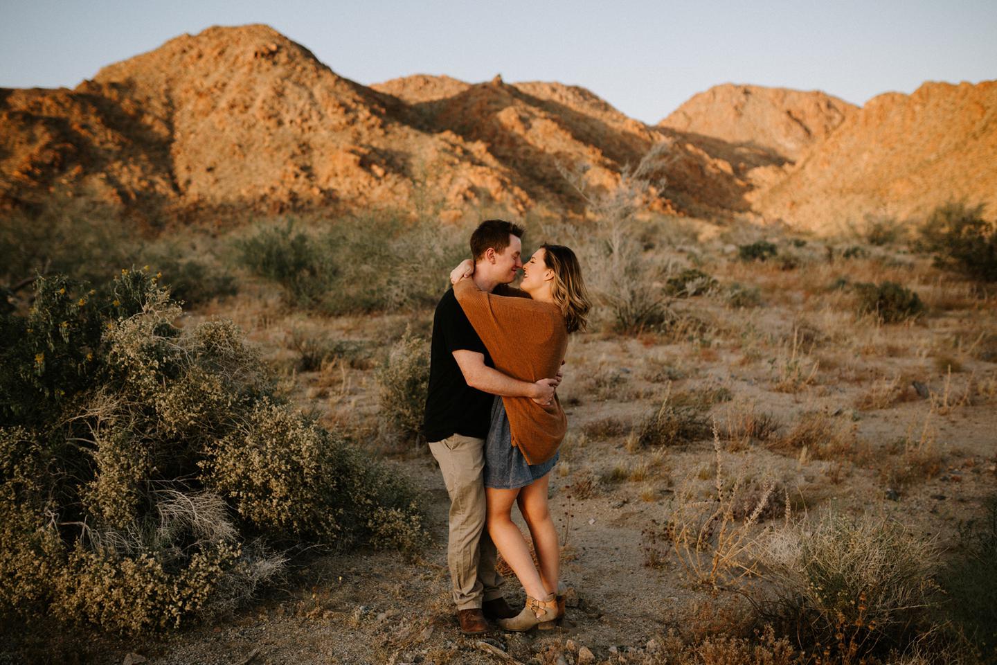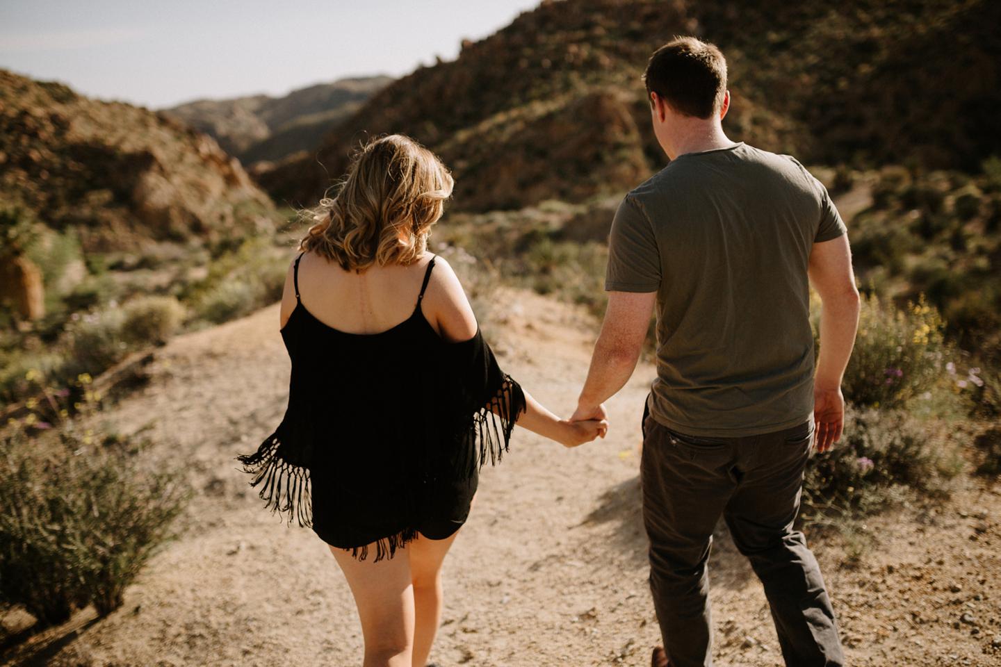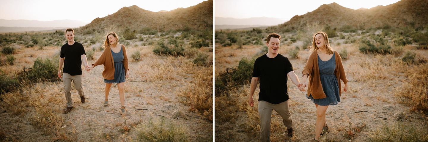Getting to take Joshua Tree engagement photos is always such a treat. Kalli and Danielย just got engaged like a week and a half ago and I was lucky enough to get to join them and my sisters for a relaxing vacation at his parents AMAZING house in the desert for Coachella right afterward! It was a perfect way to escape the craziness of daily life and the perfect time for them to just appreciate one another and their new engagement! When I suggested we take an adventure out to Joshua Tree for their engagement photos (because its only 45 min from their house!) they were totally game! The desert was blooming like crazy and we were totally in awe when we arrived. Something I love about these two is that they are SO on each otherโs team. After spending a full week with them I really got to see how kind they are to one another, and how constantly supportive they are to each other. They have such a sweet but playful relationship and I am so happy that I got to document a little bit of that during this shoot