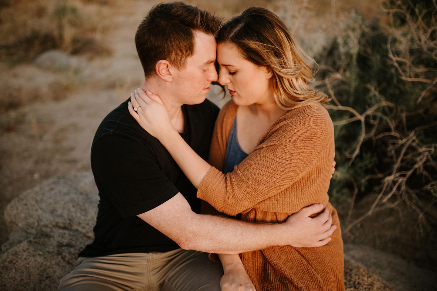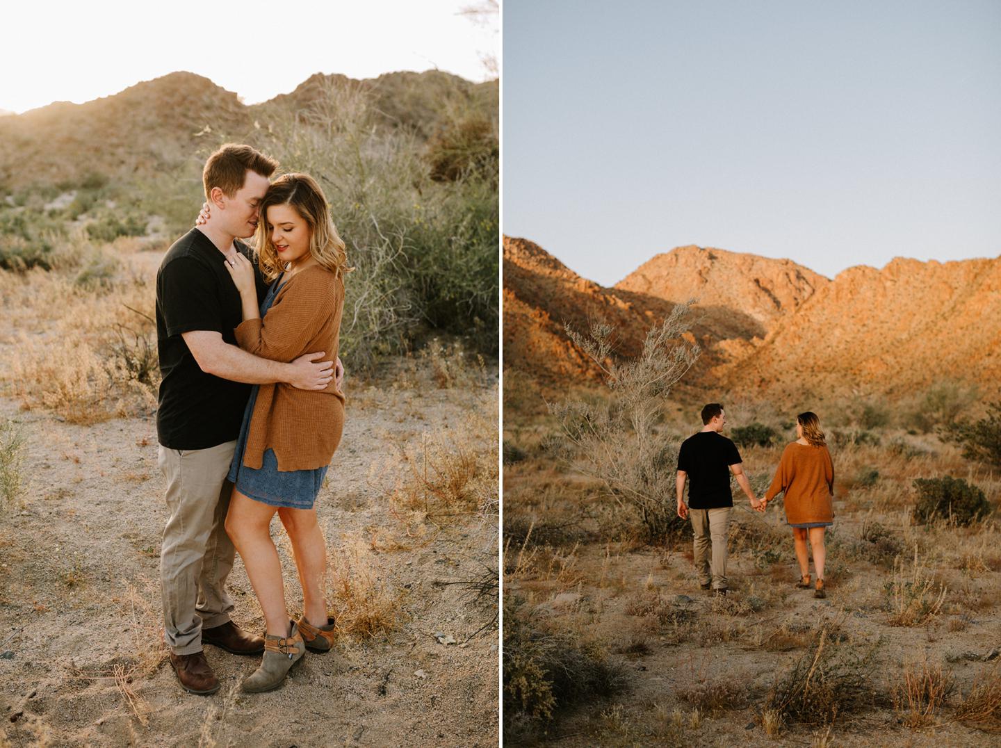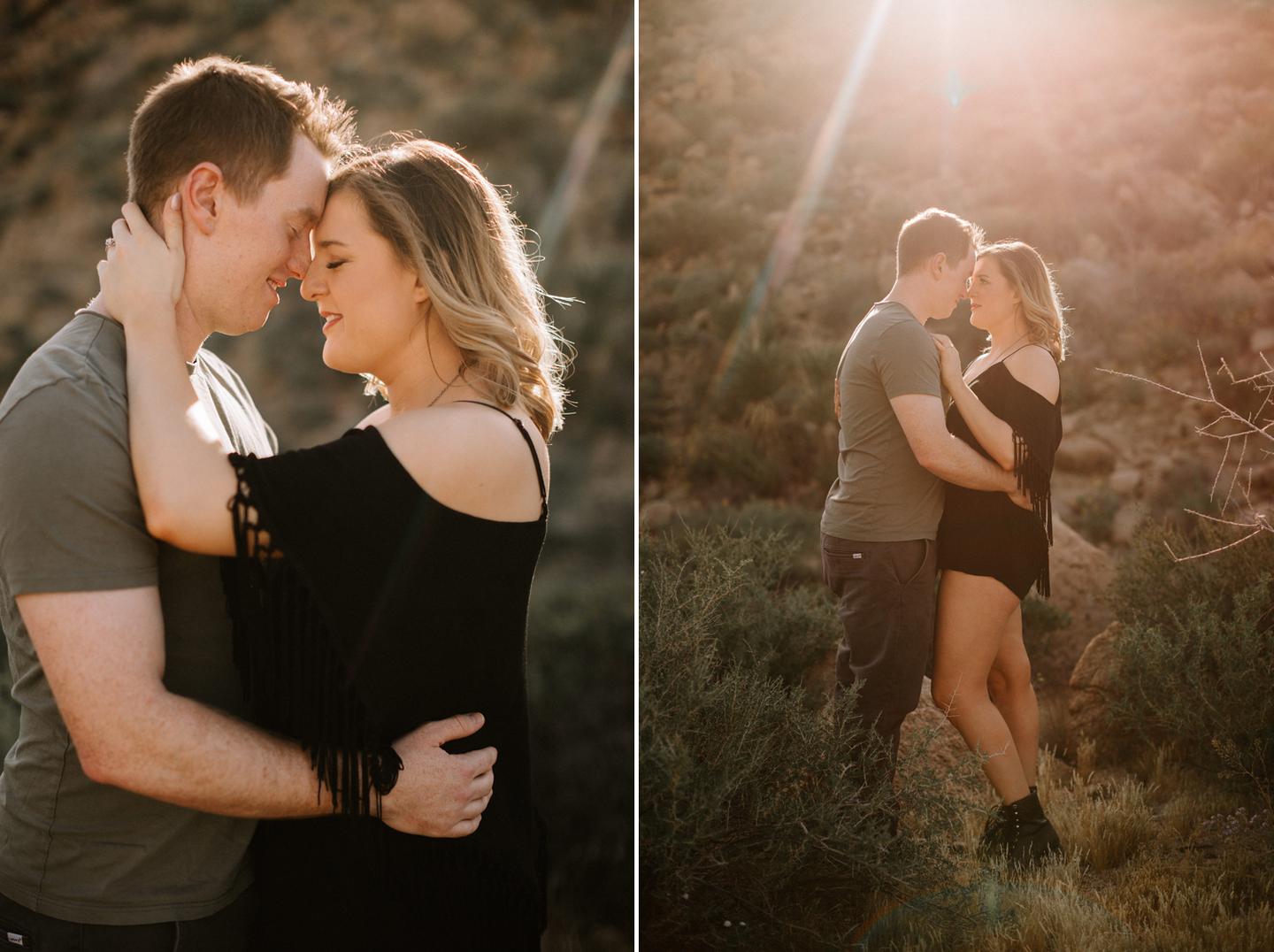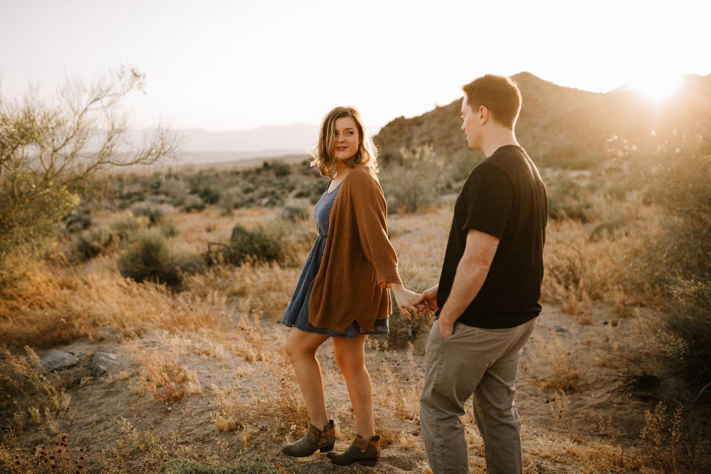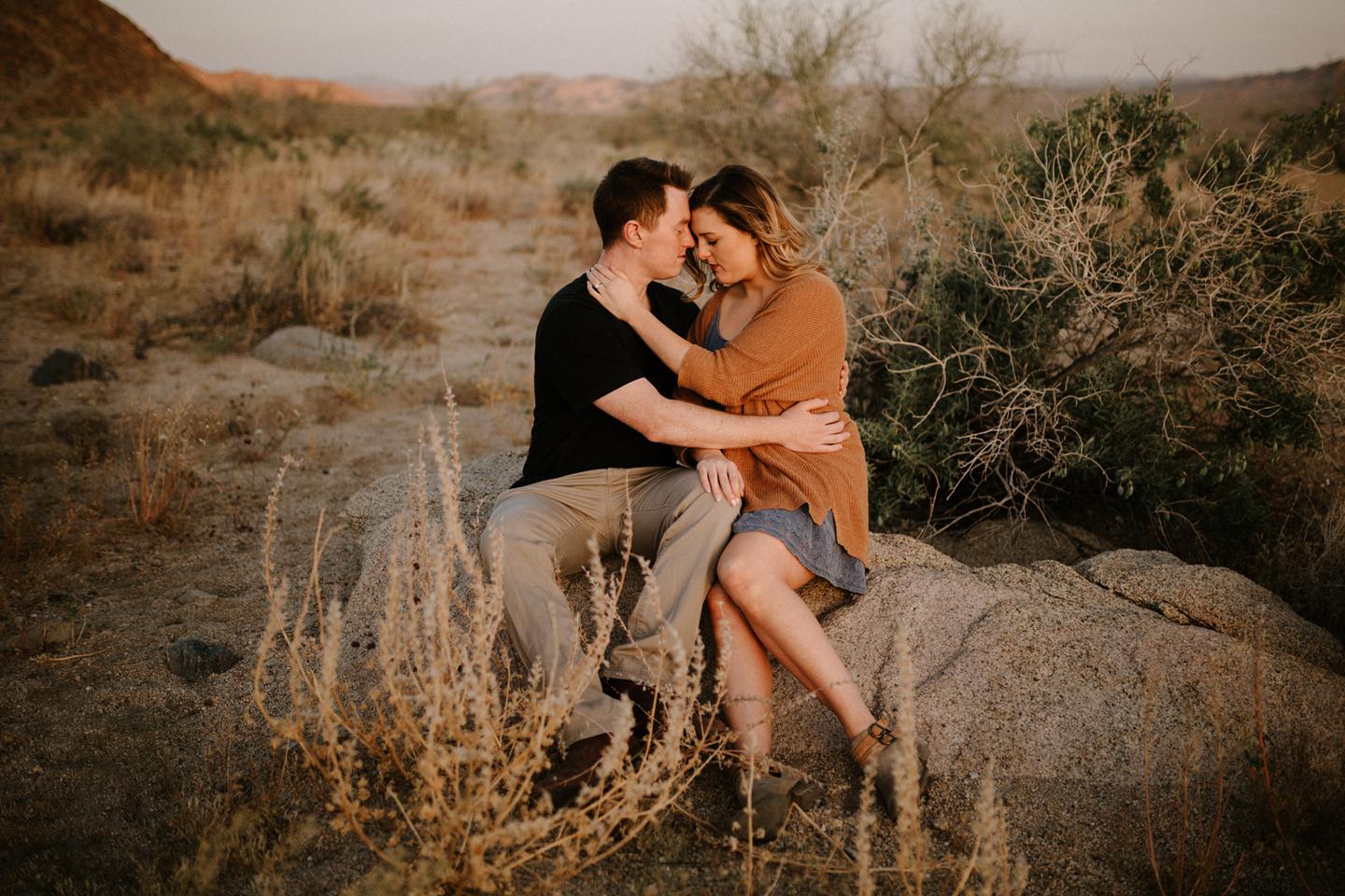 Getting to take Joshua Tree engagement photos is always such a treat. Kalli and Danielย just got engaged like a week and a half ago and I was lucky enough to get to join them and my sisters for a relaxing vacation at his parents AMAZING house in the desert for Coachella right afterward! It was a perfect way to escape the craziness of daily life and the perfect time for them to just appreciate one another and their new engagement! When I suggested we take an adventure out to Joshua Tree for their engagement photos (because its only 45 min from their house!) they were totally game! The desert was blooming like crazy and we were totally in awe when we arrived. Something I love about these two is that they are SO on each otherโs team. After spending a full week with them I really got to see how kind they are to one another, and how constantly supportive they are to each other. They have such a sweet but playful relationship and I am so happy that I got to document a little bit of that during this shoot