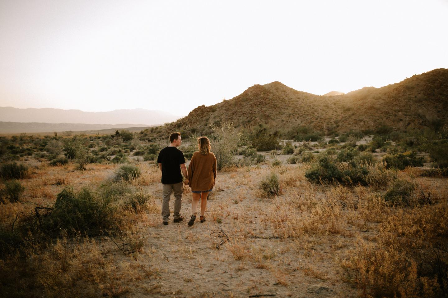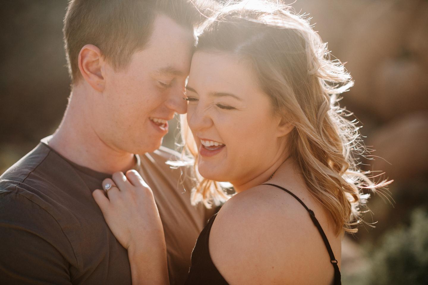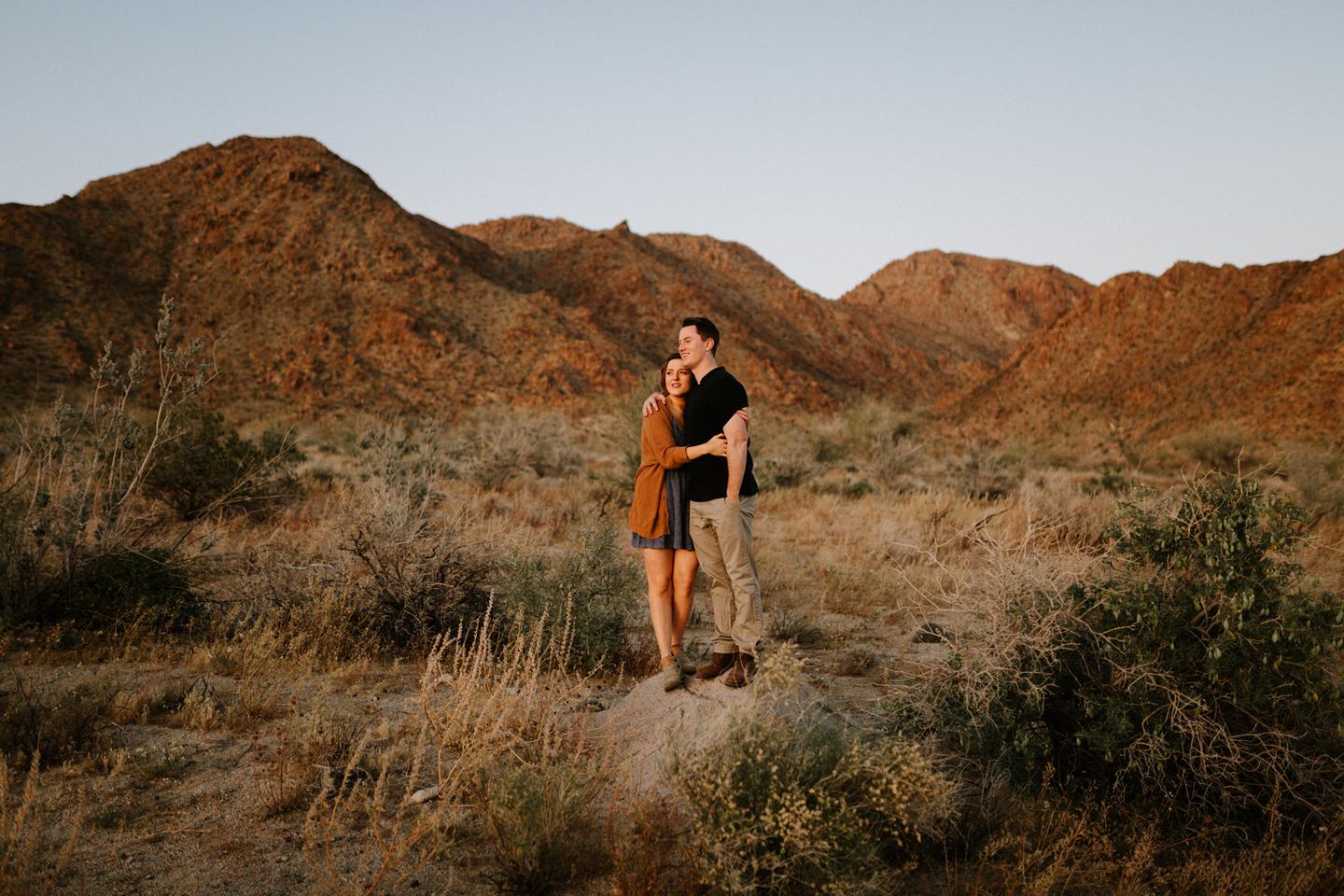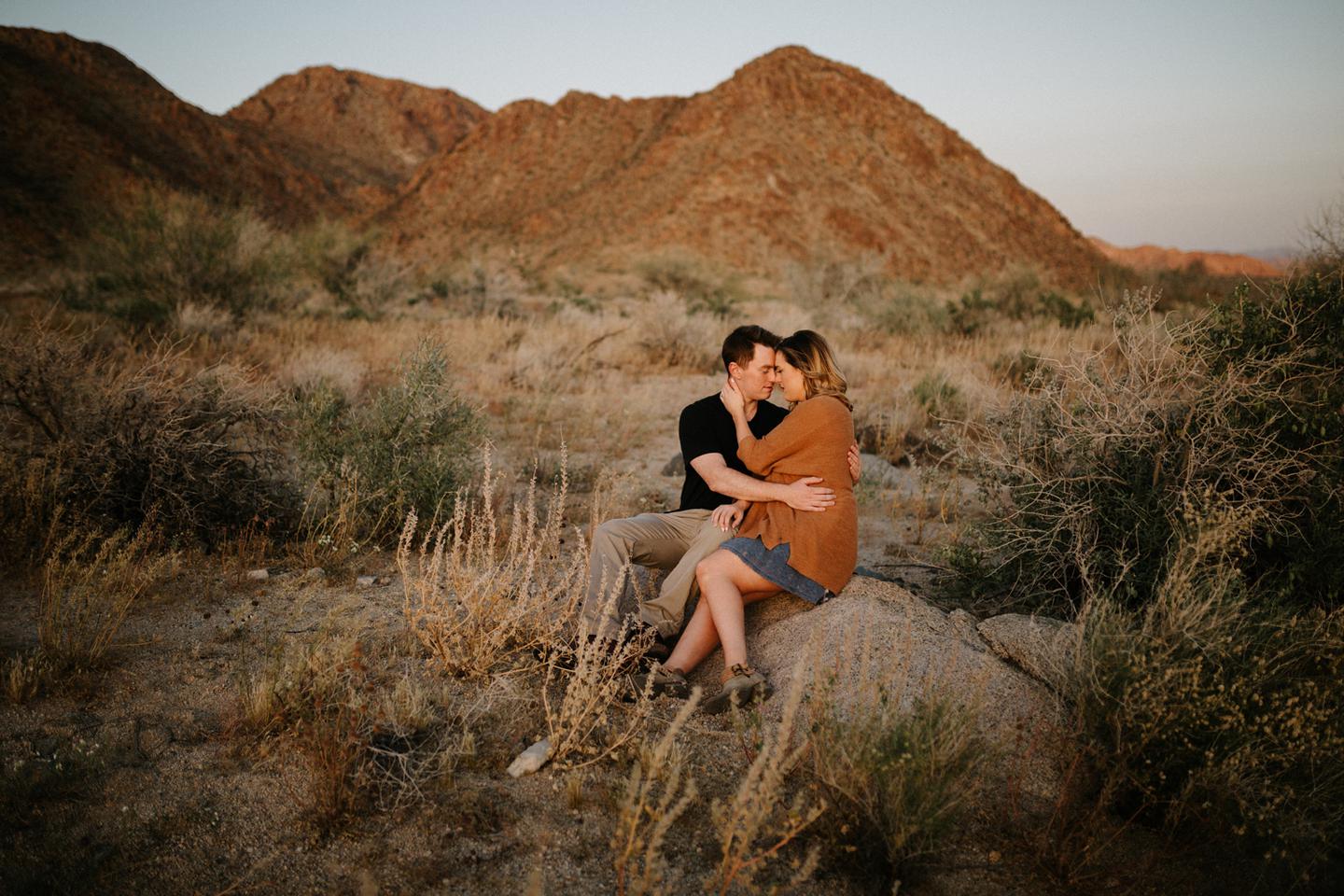 Getting to take Joshua Tree engagement photos is always such a treat. Kalli and Danielย just got engaged like a week and a half ago and I was lucky enough to get to join them and my sisters for a relaxing vacation at his parents AMAZING house in the desert for Coachella right afterward! It was a perfect way to escape the craziness of daily life and the perfect time for them to just appreciate one another and their new engagement! When I suggested we take an adventure out to Joshua Tree for their engagement photos (because its only 45 min from their house!) they were totally game! The desert was blooming like crazy and we were totally in awe when we arrived. Something I love about these two is that they are SO on each otherโs team. After spending a full week with them I really got to see how kind they are to one another, and how constantly supportive they are to each other. They have such a sweet but playful relationship and I am so happy that I got to document a little bit of that during this shoot