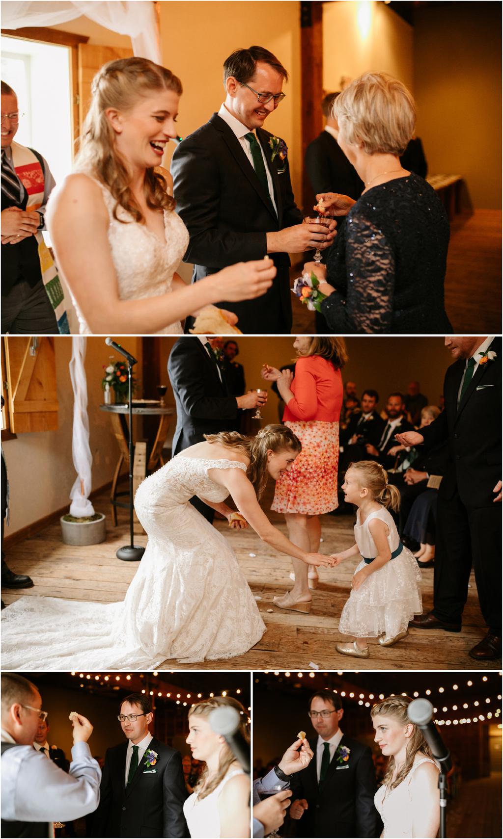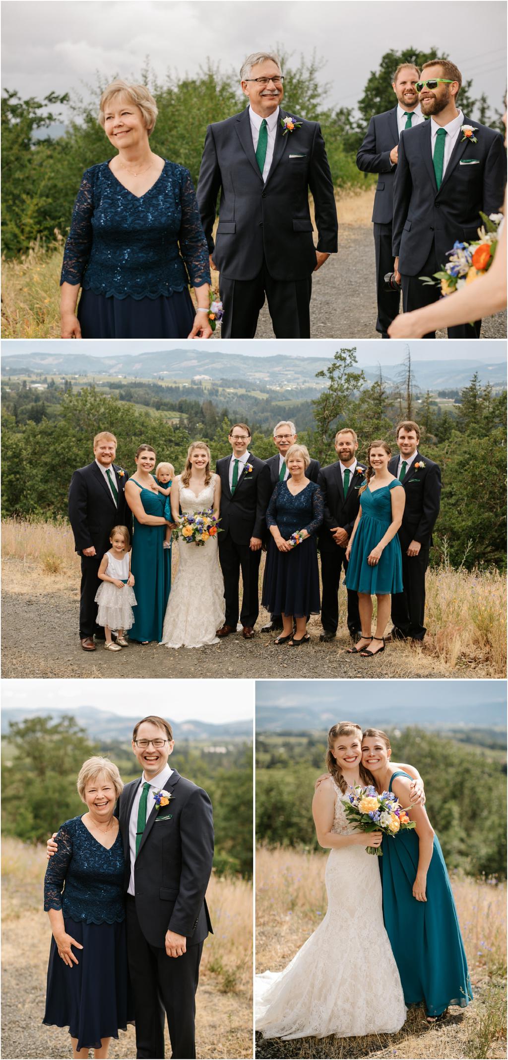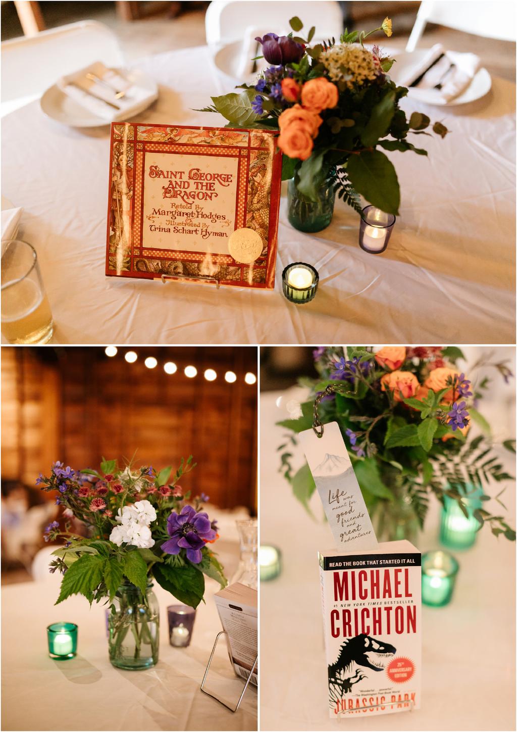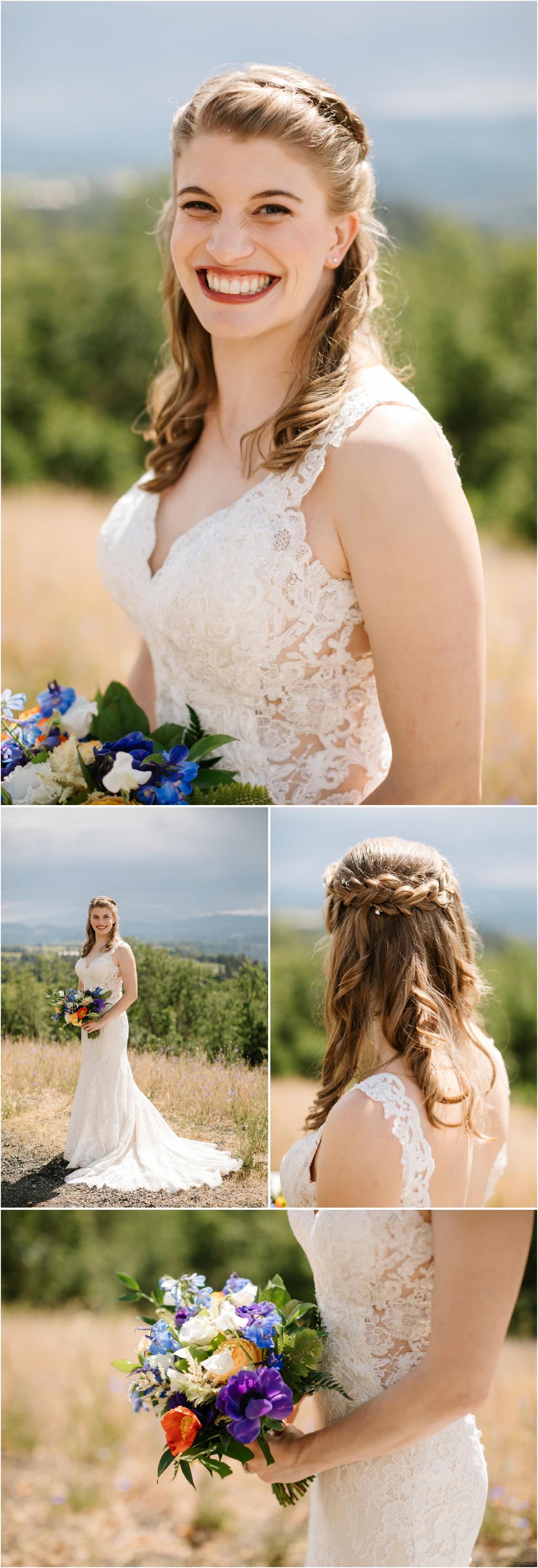 It was a stormy June day. The sun was out and shining one moment and it was pouring rain the next! But it didn’t bring Samantha and Marshall down one bit. These two had the sweetest **Wildwood Events indoor wedding in Hood River, Oregon this past weekend and it was an absolute joy to be there! The day began at Panorama Point where they did their first look. It was raining when we arrived, but we waited it out and the light was gorgeous! Sadly, Mt. Hood decided not to show herself, but it was beautiful anyway. After portraits, they had their beautiful ceremony and reception indoors at Wildwood Events, formerly known as Springhouse Cellar. It’s such a warm and cozy space! I loved that they named their tables after their favorite books and made custom bookmarks as favors. I love reading more than most things so it’s always nice to work with fellow book-lovers! They also had a delicious taco bar catered by Ahi Ohana’s Catering **and it was SO good. They even had a bunch of different hot sauces for spice-lovers like myself! Heck yes.