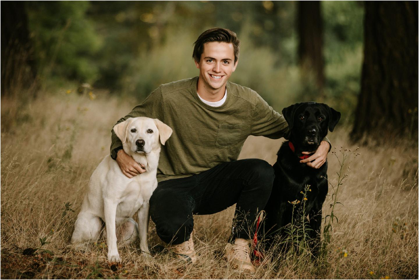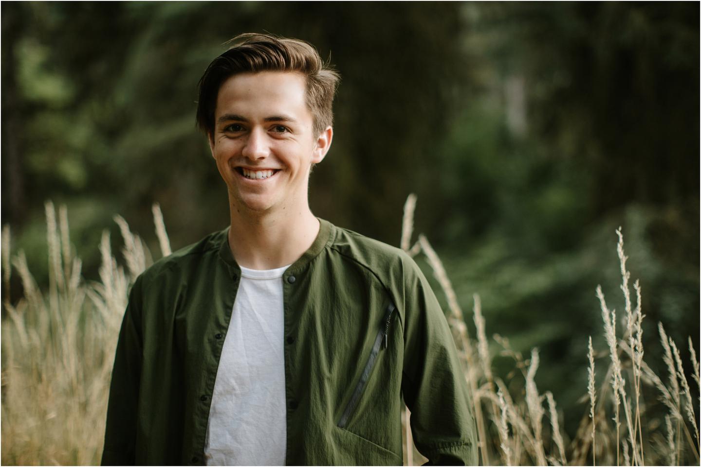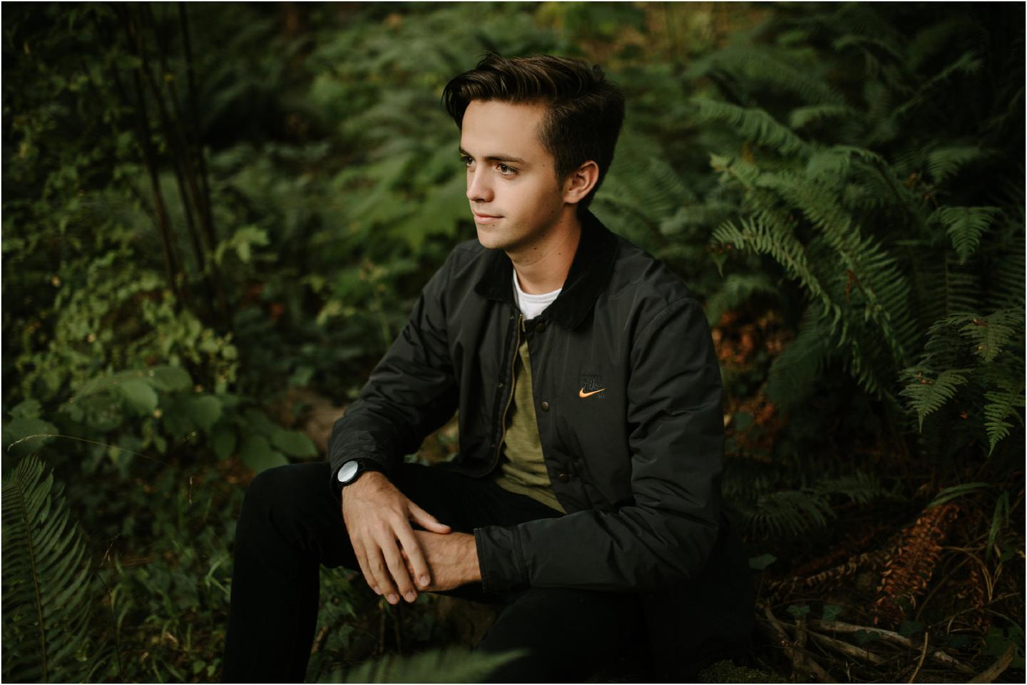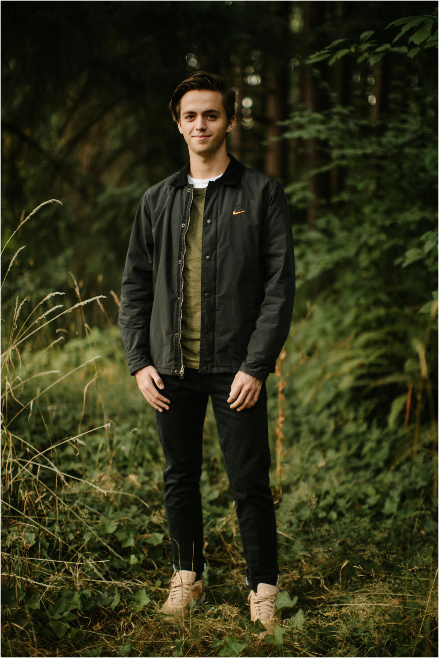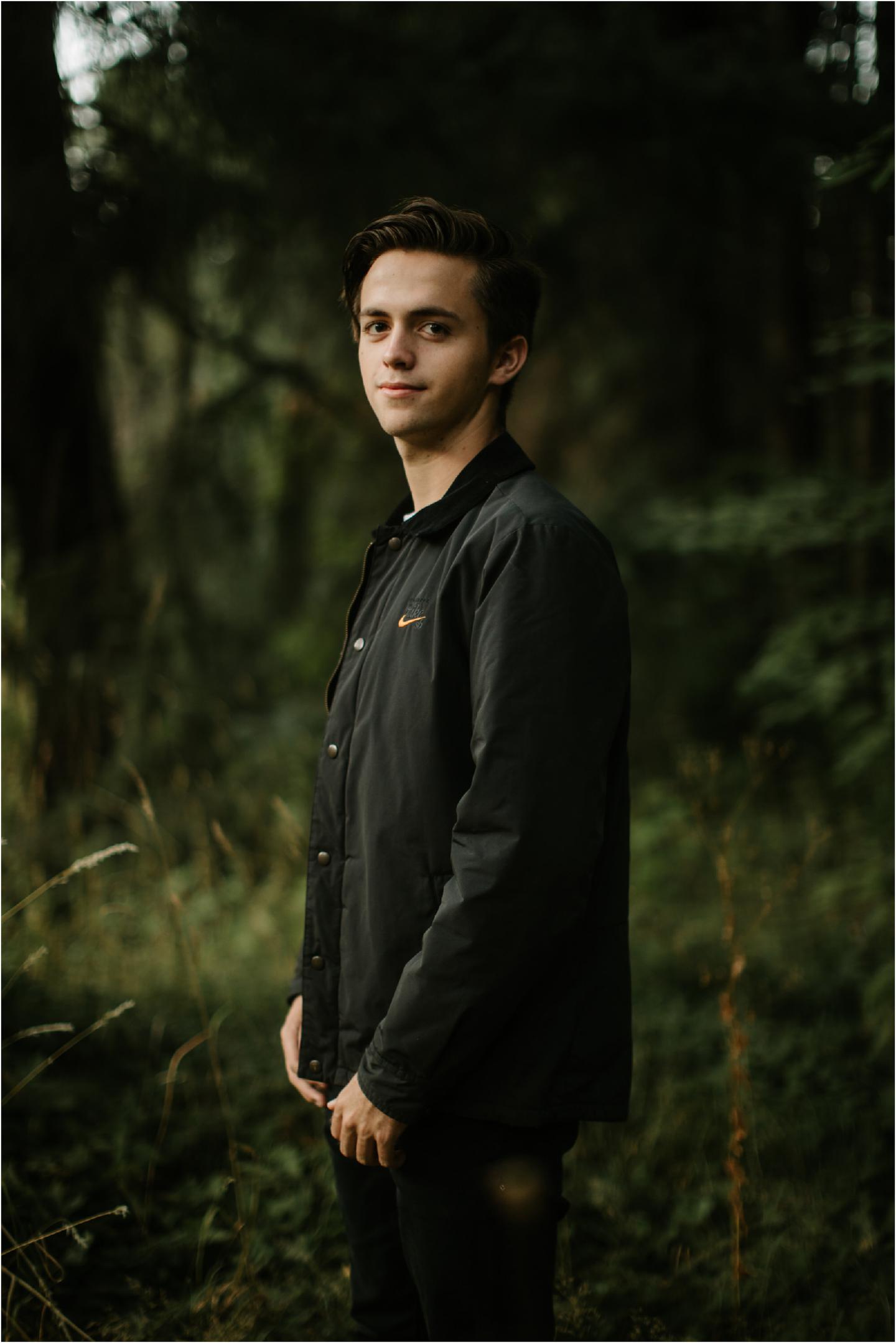 I took these Portland senior photos at the Hoyt Arboretum a few weeks ago with Cooper! He has two cute dogs and loves spending time outdoors. He’s not super extroverted, but definitely has a quiet confidence that shows in the photos. Cooper is also super athletic – he plays soccer and loves staying active. Something really cool about this guy is that he lived abroad for a few years while he was in middle school! He’s a native Oregonian (woohoo!) but his family got the opportunity to live in Amsterdam for two years and it was a really cool experience. His mom told me that it wasn’t easy to pull up and move, but that the entire experience was such a gift. It changed their entire family in a good way. Cooper knew he wanted to take photos somewhere out in nature. His Portland senior photos at the Hoyt Arboretum were perfect for his active, outdoor vibes and athletic style. Seriously, you might see the arboretum a lot on my blog, (hah) but that’s only because I love it SO freaking much. These Portland senior photos at the Hoyt Arboretum are no exception. It truly is one of my all time favorite spots in Portland for natural and moody photos