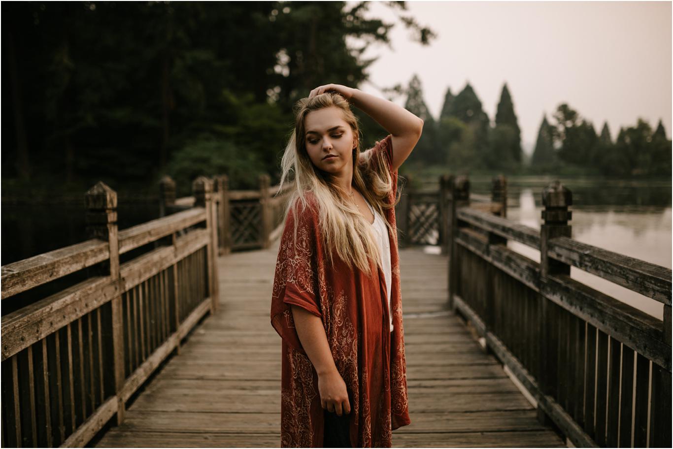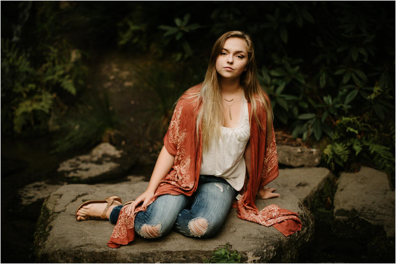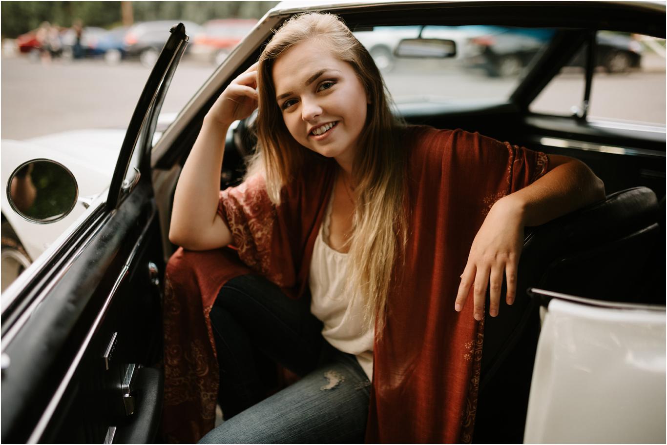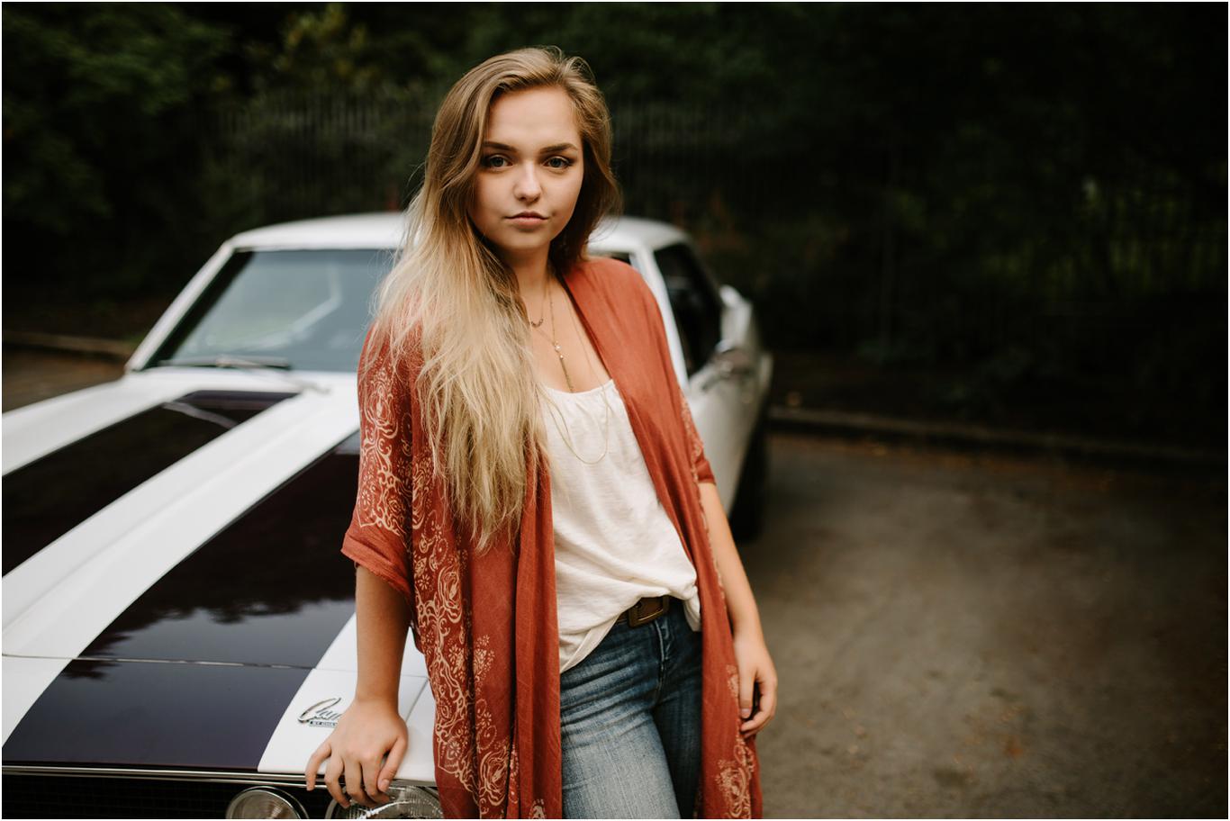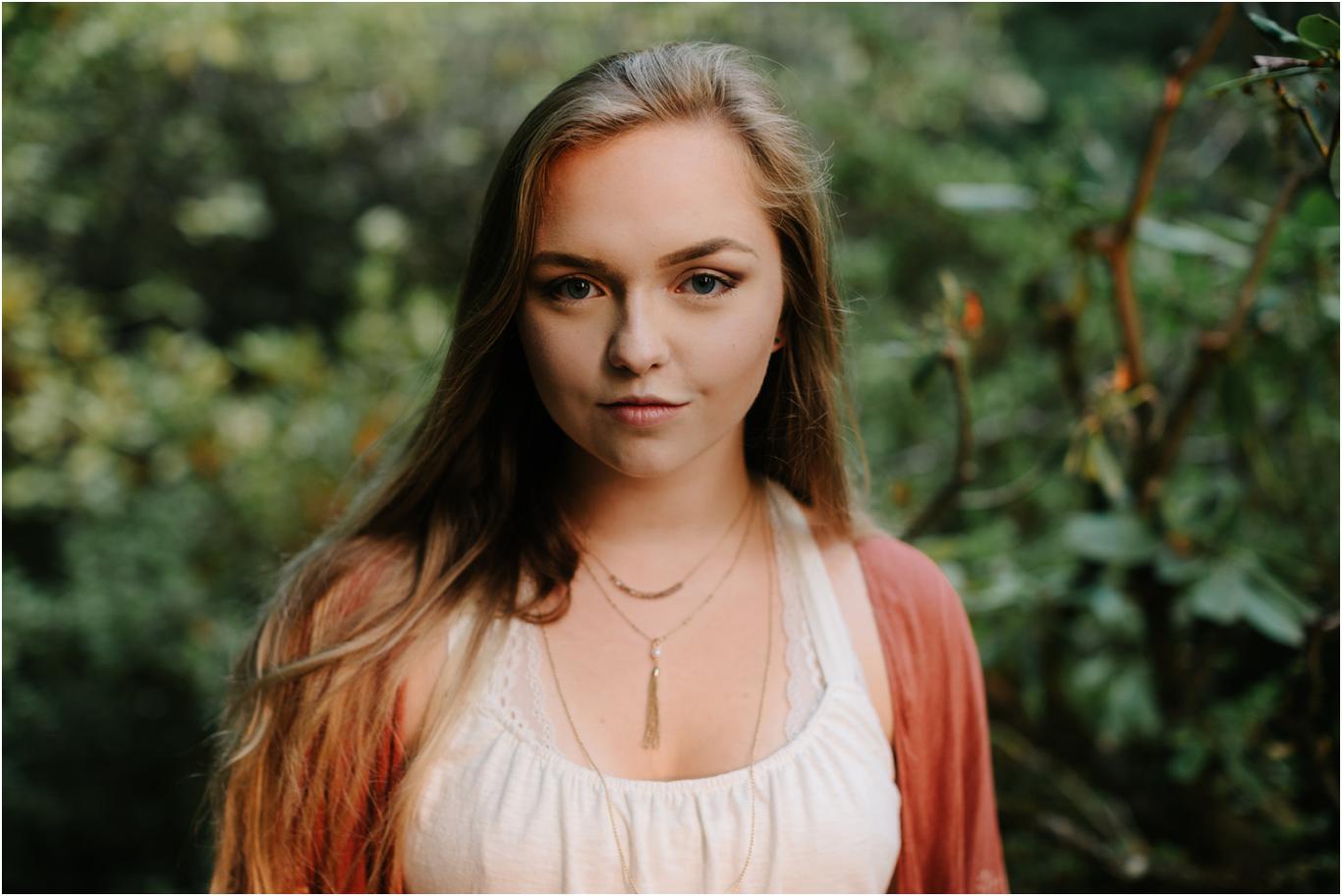I seriously love working with seniors. These Crystal Springs Rhododendron Garden senior photos were so fun and Jessica was awesome to work with. Her whole family came to the shoot and we took a few quick family photos at the beginning of our session (a great idea – by the way!) Then her dad surprised her by bringing his vintage car that she LOVES to the photoshoot. It was such cool vehicle and Jessica looked beautiful alongside it! Jessica has this chill, laid-back vibe that made her really fun to photograph. She’s definitely a tomboy and loves doing outdoor activities with her family – fishing, camping, boating, water sports, you name it. She told me she actually feels the most comfortable in sweats and athletic clothes, but that she dressed up a little more than normal for our shoot. I feel like she could totally rock that athletic vibe too, but hey, her outfit was amazing! Every time I take Crystal Springs Rhododendron Garden senior photos, I remember how much I love this location. The gardens are huge and they have so much variety! I love the rhododendron tunnels and how the light plays in the trees there. It’s a beautiful backdrop for any photoshoot and it works well for classic photos or for images that are a little moodier like mine! I definitely want to do senior shoots here more often