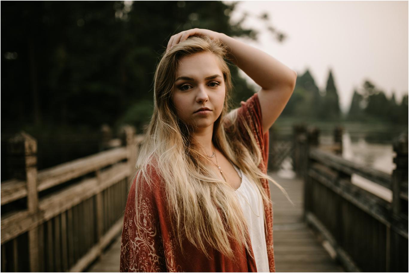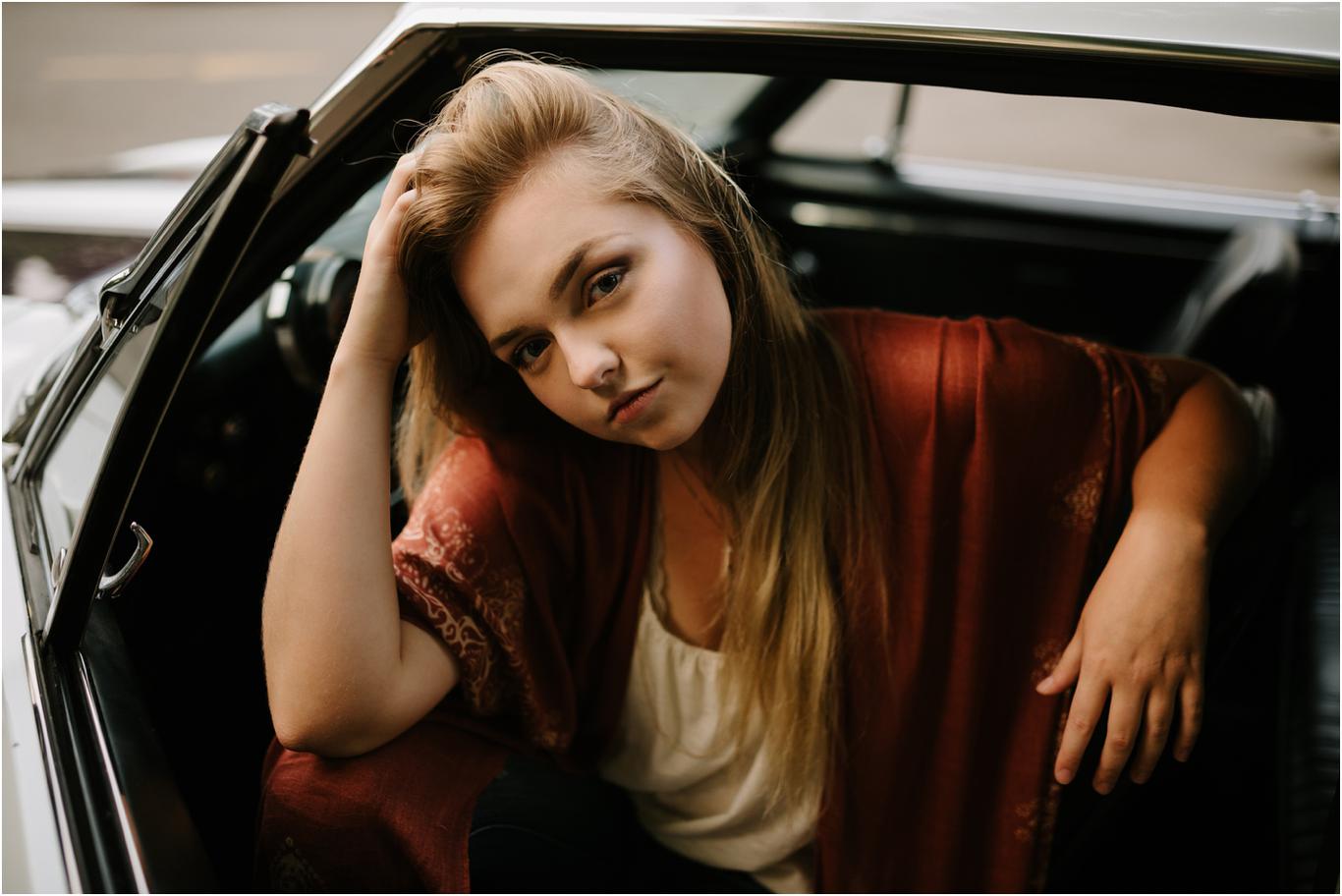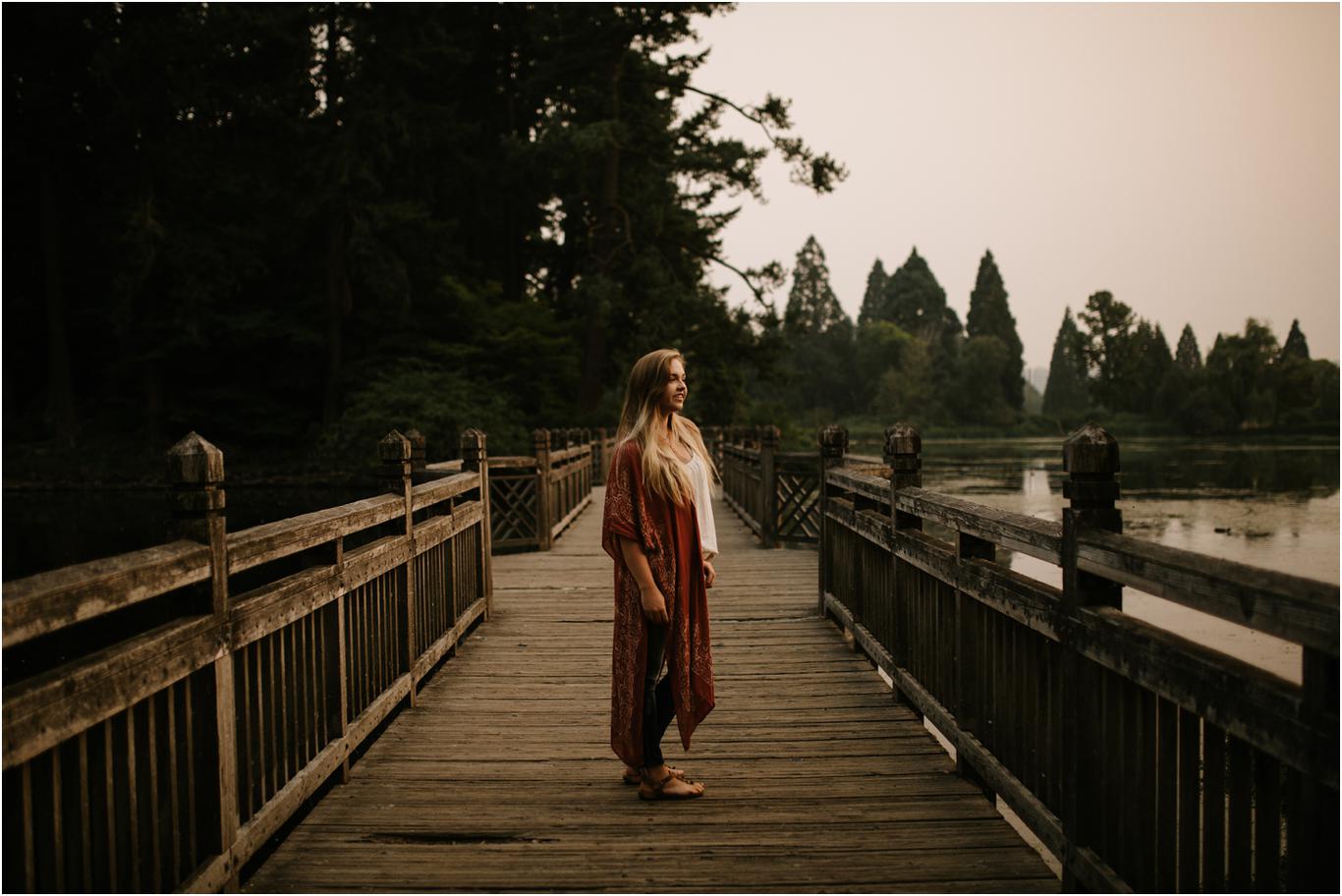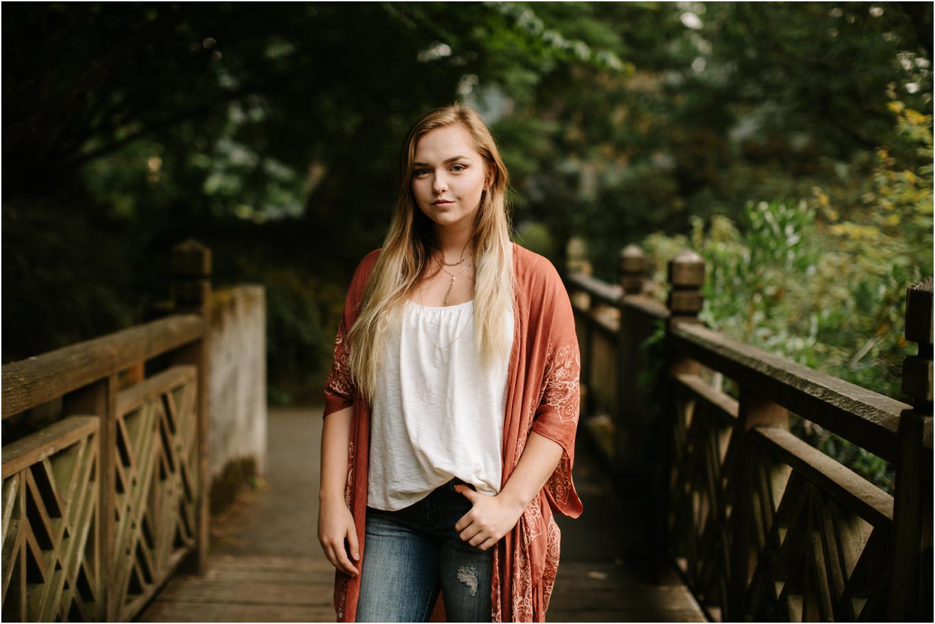 I seriously love working with seniors. These Crystal Springs Rhododendron Garden senior photos were so fun and Jessica was awesome to work with. Her whole family came to the shoot and we took a few quick family photos at the beginning of our session (a great idea – by the way!) Then her dad surprised her by bringing his vintage car that she LOVES to the photoshoot. It was such cool vehicle and Jessica looked beautiful alongside it! Jessica has this chill, laid-back vibe that made her really fun to photograph. She’s definitely a tomboy and loves doing outdoor activities with her family – fishing, camping, boating, water sports, you name it. She told me she actually feels the most comfortable in sweats and athletic clothes, but that she dressed up a little more than normal for our shoot. I feel like she could totally rock that athletic vibe too, but hey, her outfit was amazing! Every time I take Crystal Springs Rhododendron Garden senior photos, I remember how much I love this location. The gardens are huge and they have so much variety! I love the rhododendron tunnels and how the light plays in the trees there. It’s a beautiful backdrop for any photoshoot and it works well for classic photos or for images that are a little moodier like mine! I definitely want to do senior shoots here more often