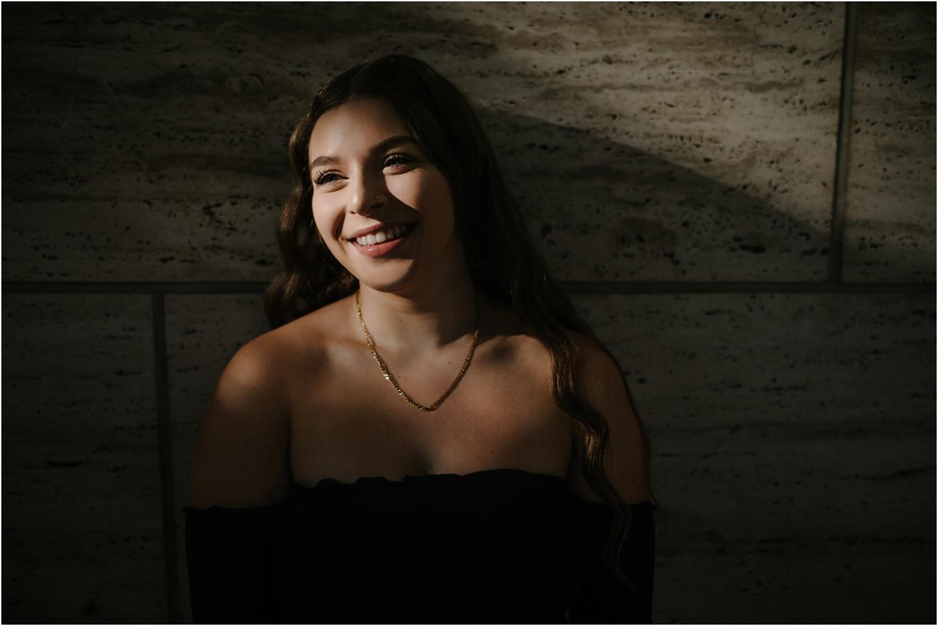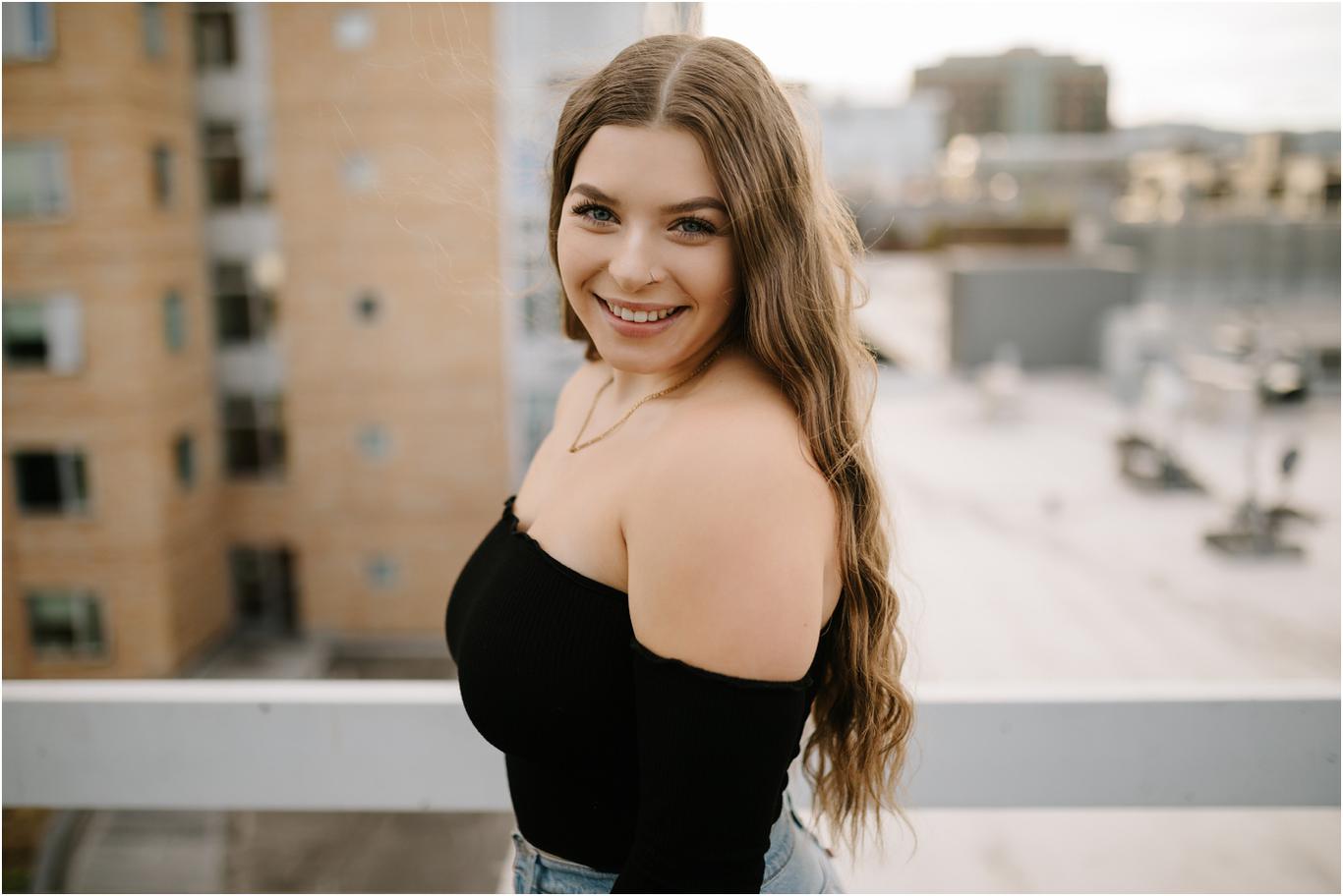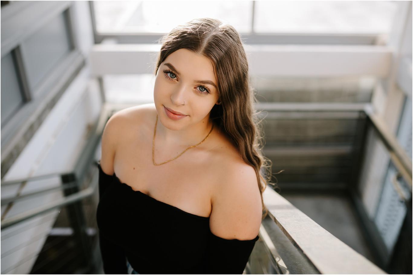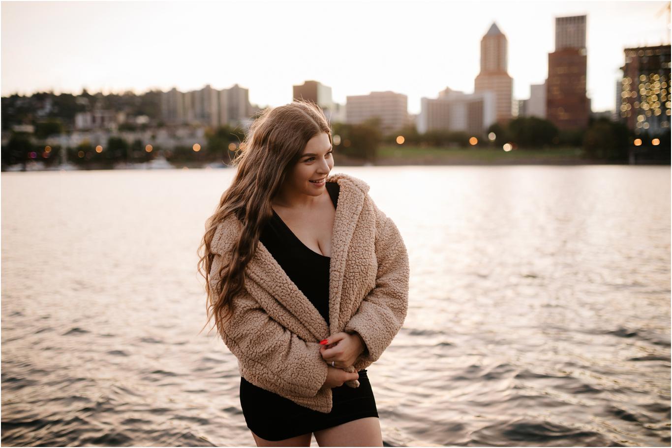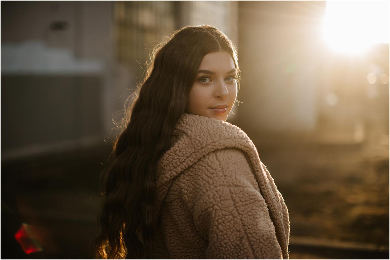 Oh my gosh I had SO much fun taking these downtown Portland senior pictures for Zorya! She is so gorgeous and we had such a fun time taking unique senior pictures in all sorts of gorgeous lighting! We started out downtown Portland senior pictures in the Pearl District. We explored around Lovejoy and Tanner Springs Park, catching pockets of bold light that really highlighted her stunning blue eyes. I love working with seniors who trust me to play with light and create imagery that is a little bolder and more unique! Zorya was totally down for that! Afterwards, we traded the west side for the east side and head down the Eastbank Esplanade near OMSI for some photos along the river. I shoot at this spot often but it never disappoints! It’s such a good place for downtown Portland senior pictures! I love the soft light at dusk with the awesome city views of Portland