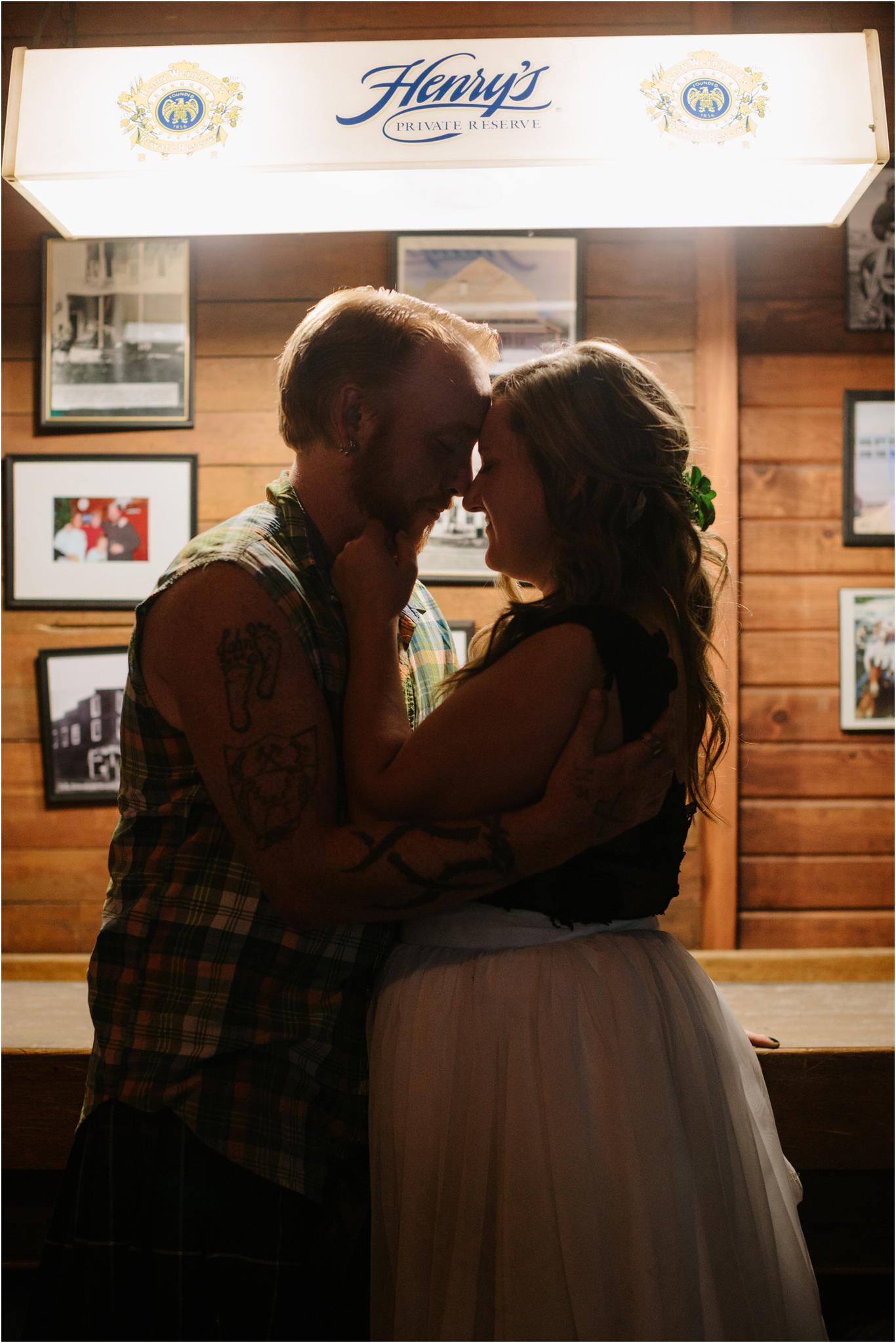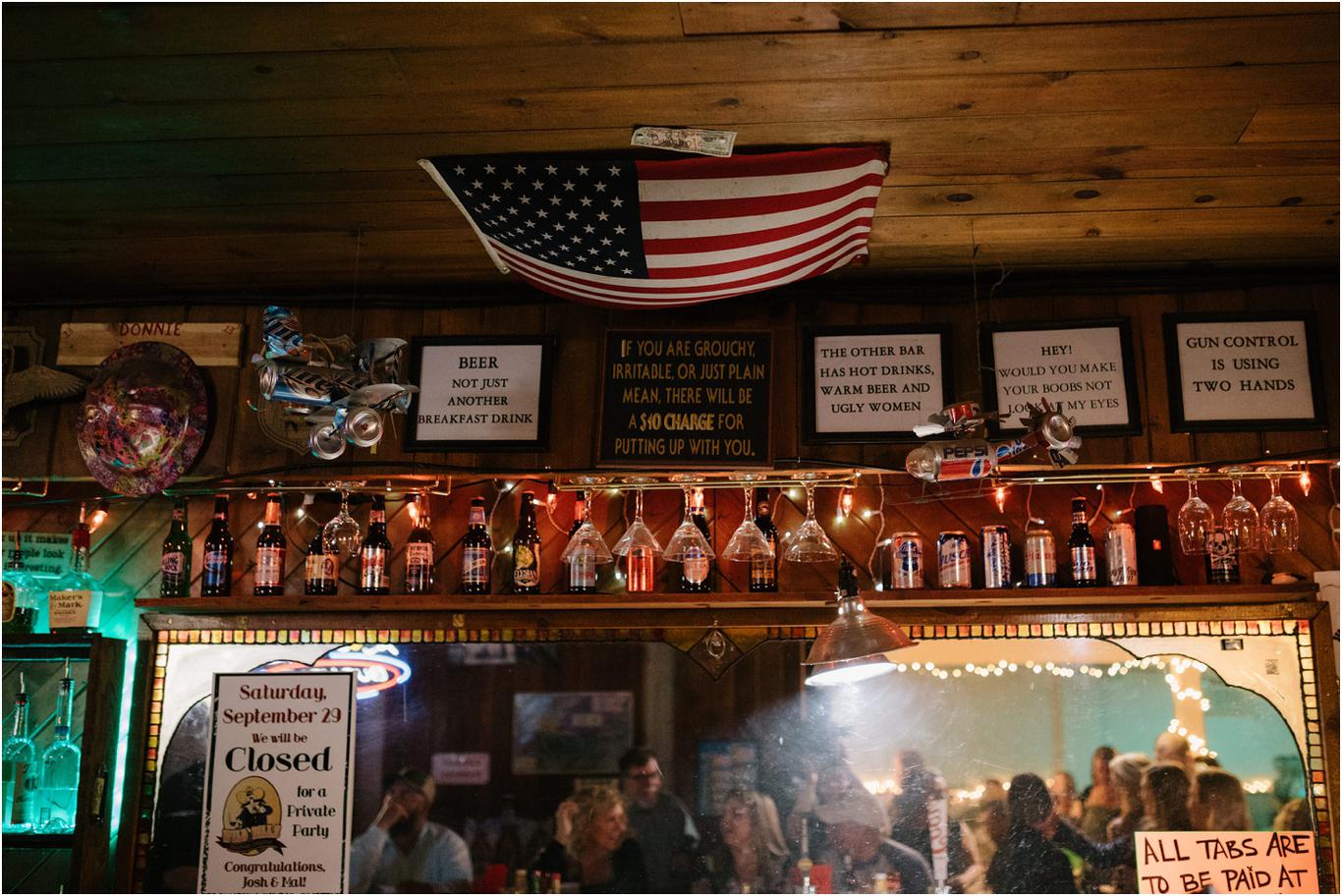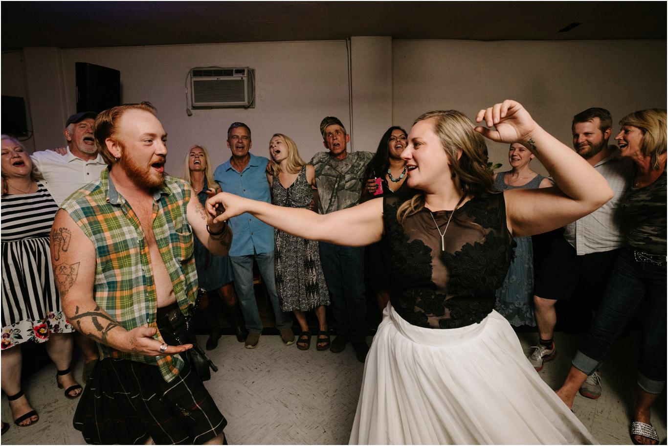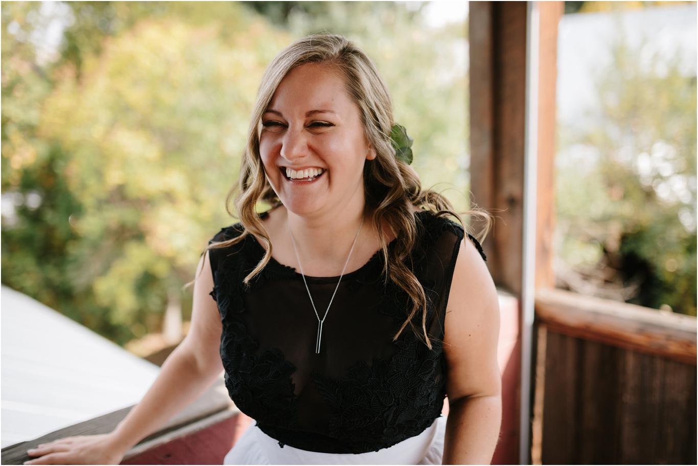 There was only one obvious place to hold Mallory and Josh’s wedding reception: at the bar that started everything. Josh works as a bartender at Wild Bills, a western dive bar in the heart of Halfway. His best friend (and Best Wo-man in his wedding party) owns the bar and was stoked to host their reception there. It was laid-back, fun, and one heck of a party. Most importantly, it was SO them. Mallory told me that the thing she loves most about Josh is that he is patient, kind, and loves her for who I she is. “We have the best time doing things together โ making things, exploring, and just hanging out,” she told me. When she asked Josh his favorite thing, he immediately responded, “her butt!” But he was joking. “The thing that attracted me to Mallory right in the beginning is her laugh,” he said. And it’s easy to see why. She has a light-up-the-whole-room laugh that just makes everything in life brighter. And it was something I was happy to capture in all their joyful wedding photos. This weekend was SO happy, relaxed, fun and unique and it was an honor to be their Eastern Oregon wedding photographer!