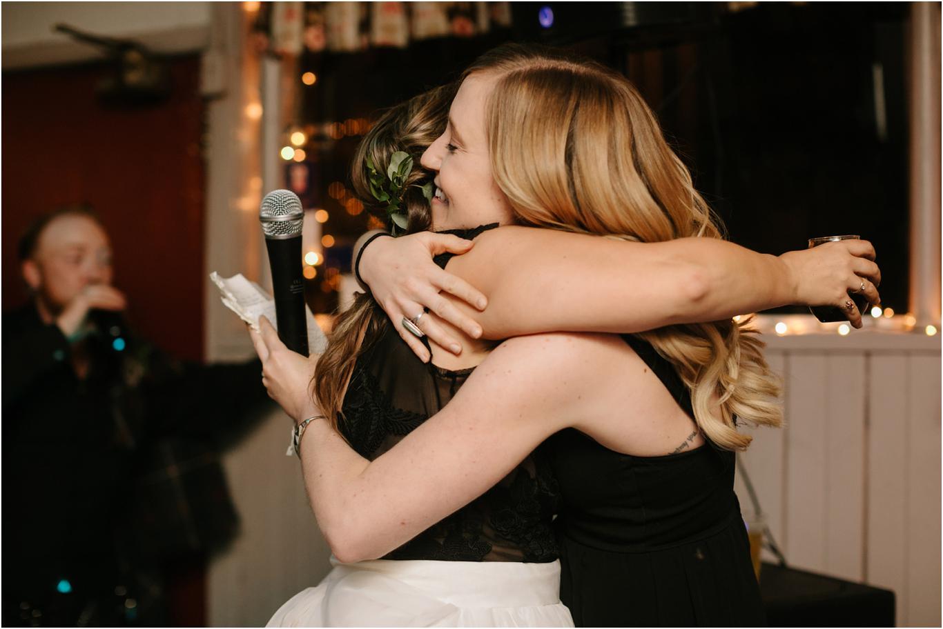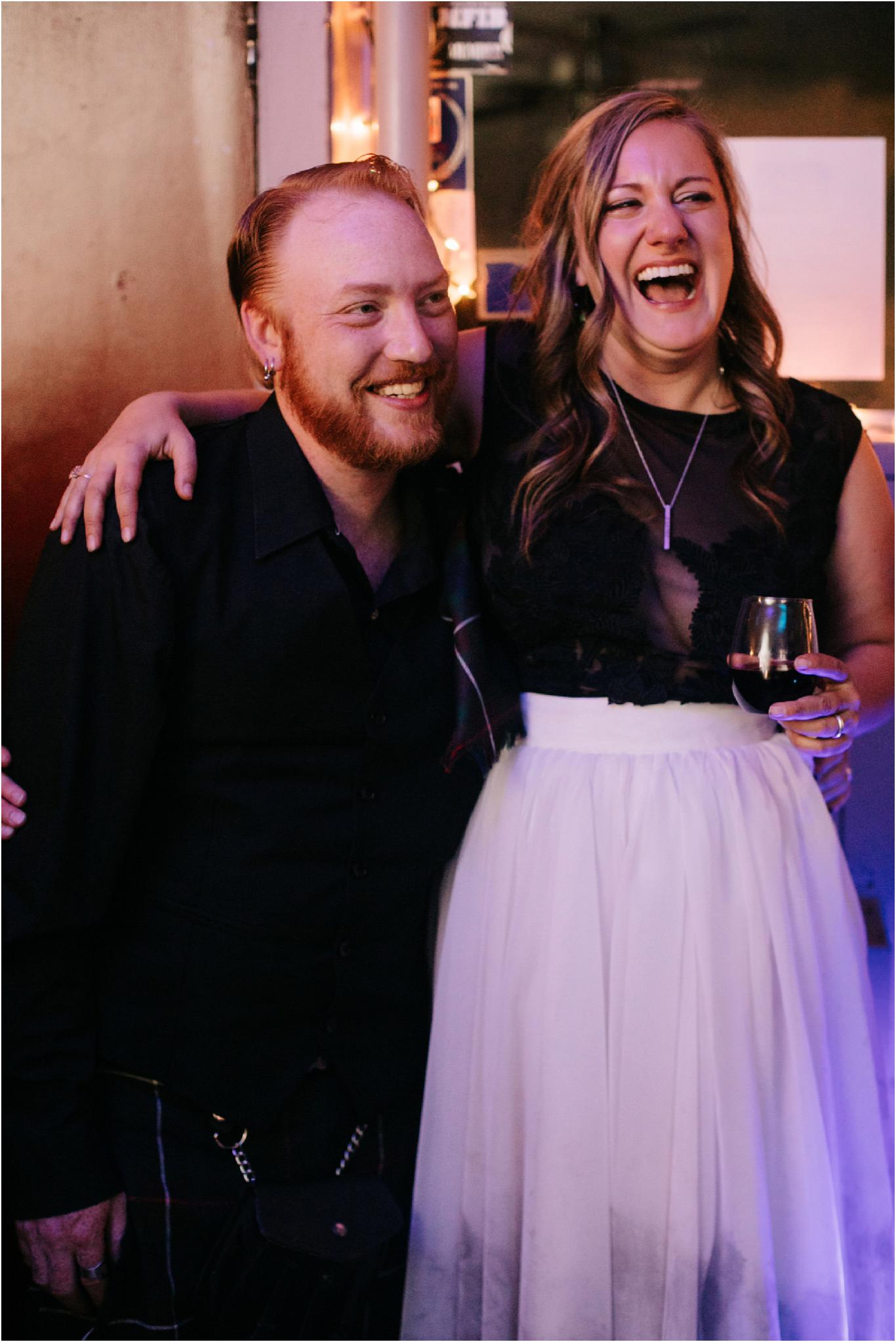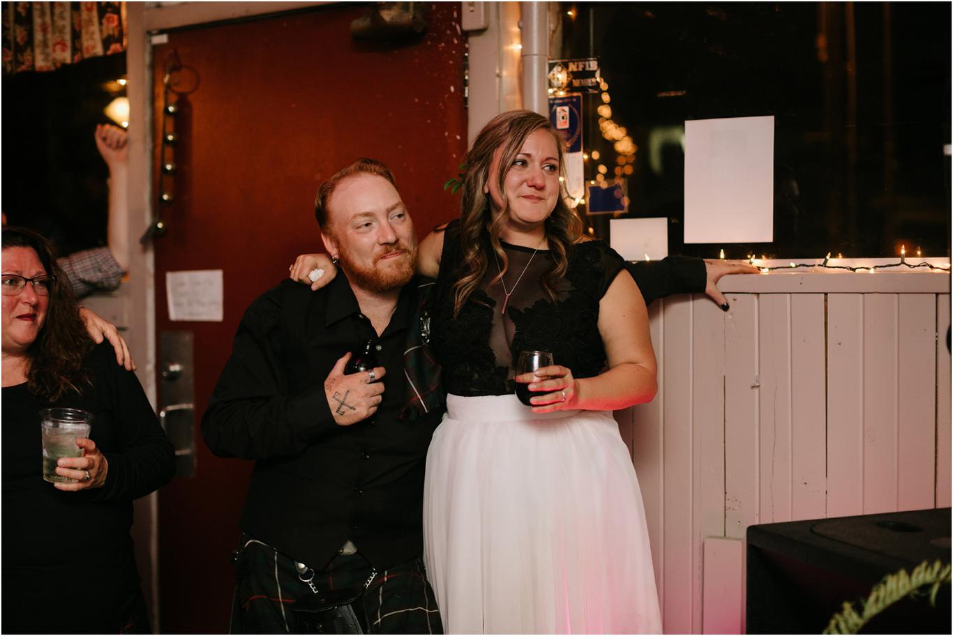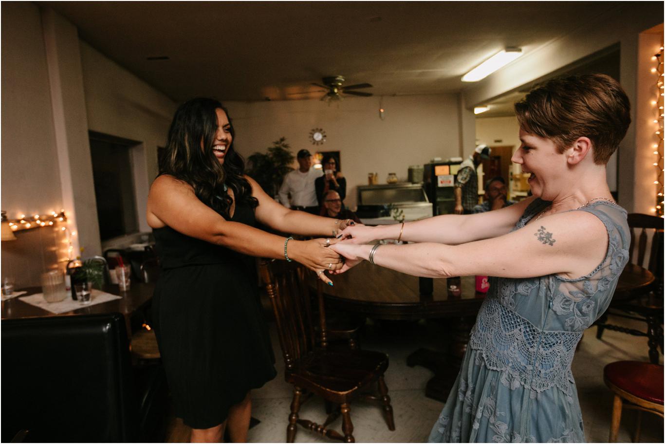 There was only one obvious place to hold Mallory and Josh’s wedding reception: at the bar that started everything. Josh works as a bartender at Wild Bills, a western dive bar in the heart of Halfway. His best friend (and Best Wo-man in his wedding party) owns the bar and was stoked to host their reception there. It was laid-back, fun, and one heck of a party. Most importantly, it was SO them. Mallory told me that the thing she loves most about Josh is that he is patient, kind, and loves her for who I she is. “We have the best time doing things together โ making things, exploring, and just hanging out,” she told me. When she asked Josh his favorite thing, he immediately responded, “her butt!” But he was joking. “The thing that attracted me to Mallory right in the beginning is her laugh,” he said. And it’s easy to see why. She has a light-up-the-whole-room laugh that just makes everything in life brighter. And it was something I was happy to capture in all their joyful wedding photos. This weekend was SO happy, relaxed, fun and unique and it was an honor to be their Eastern Oregon wedding photographer!