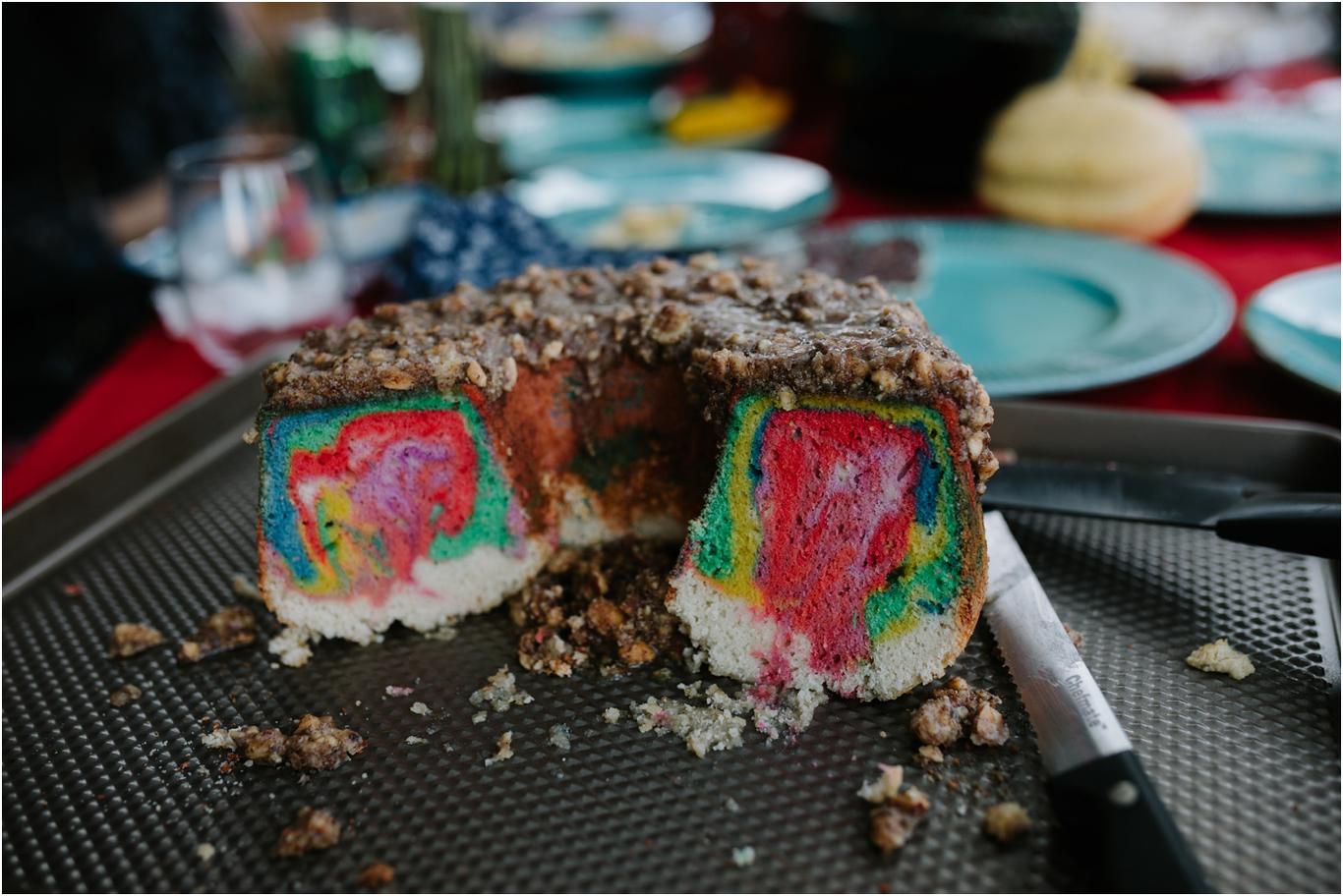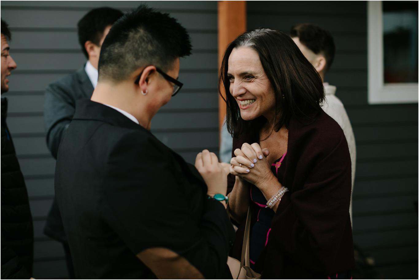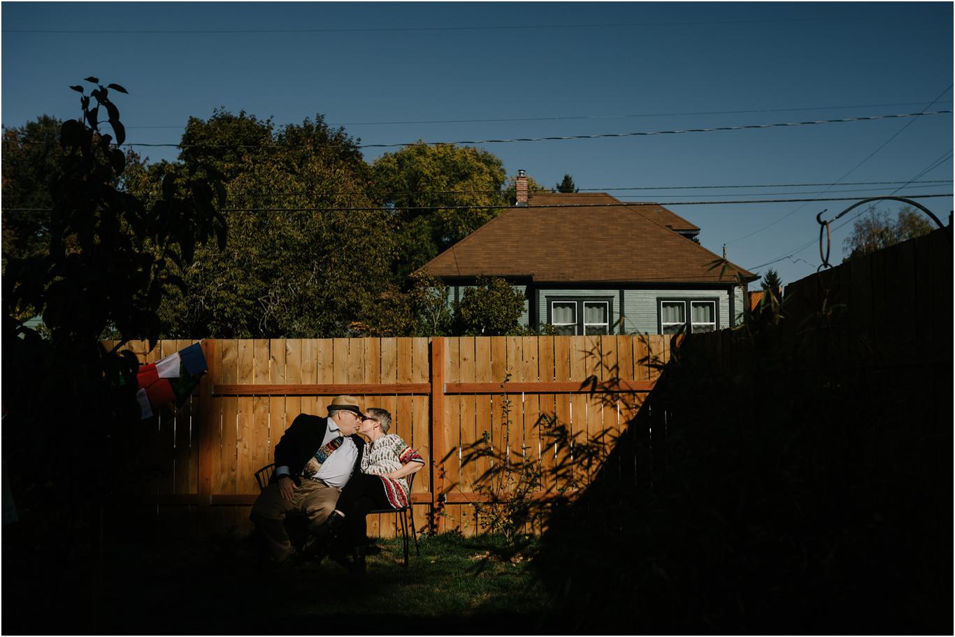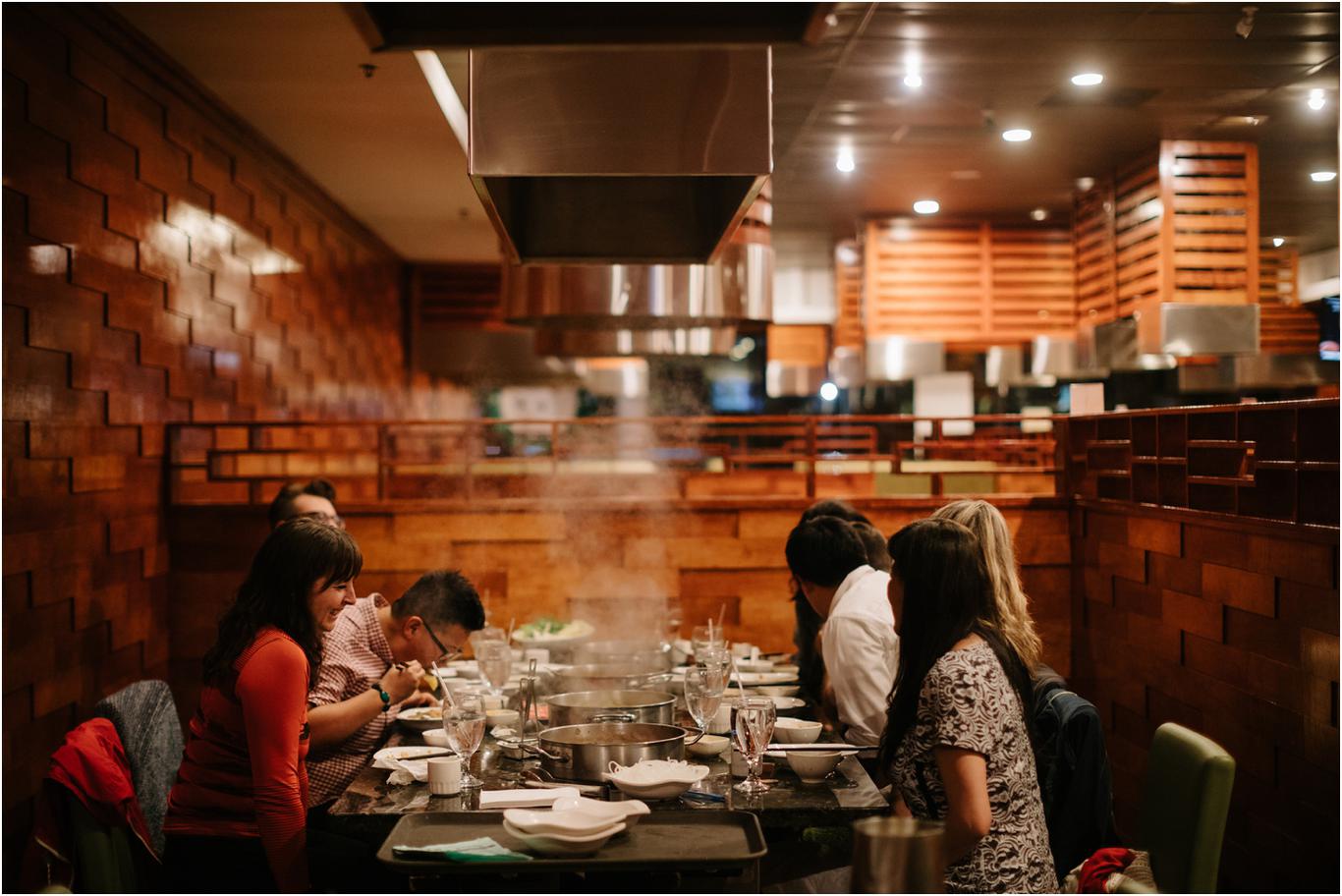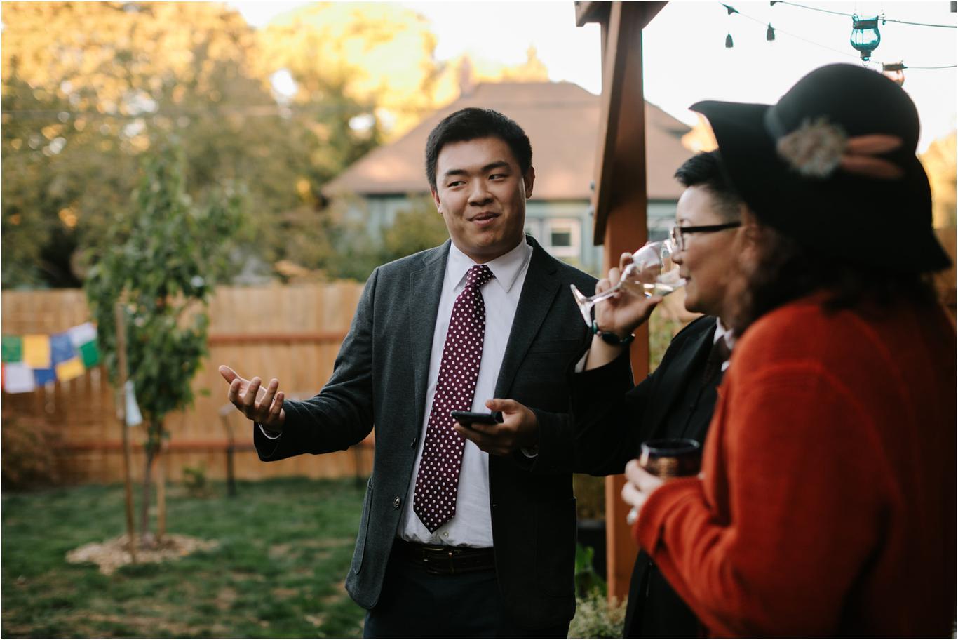 After scheming a bit, Cissey and Marya came up with the perfect plan. They decided to have an intimate Portland elopement in the forest at Pier Park. The park is just down the street from their house, and they go there all the time together! They got ready together that morning, then hosted cocktails and snacks in their backyard before walking over to the forest for their ceremony. We took a ton of pictures amongst the tall trees, then spent a little more time hanging out at their house, eating cake, giving toasts and enjoying the crisp fall weather before dinner. Finally, as it got dark, we set off to Little Sheep, a Mongolian Hot Pot restaurant in Beaverton! It was SO them and such a unique and fun way to end the day with a huge, long meal! I was SO happy I got to be their Portland same sex wedding photographer, as well as a guest!