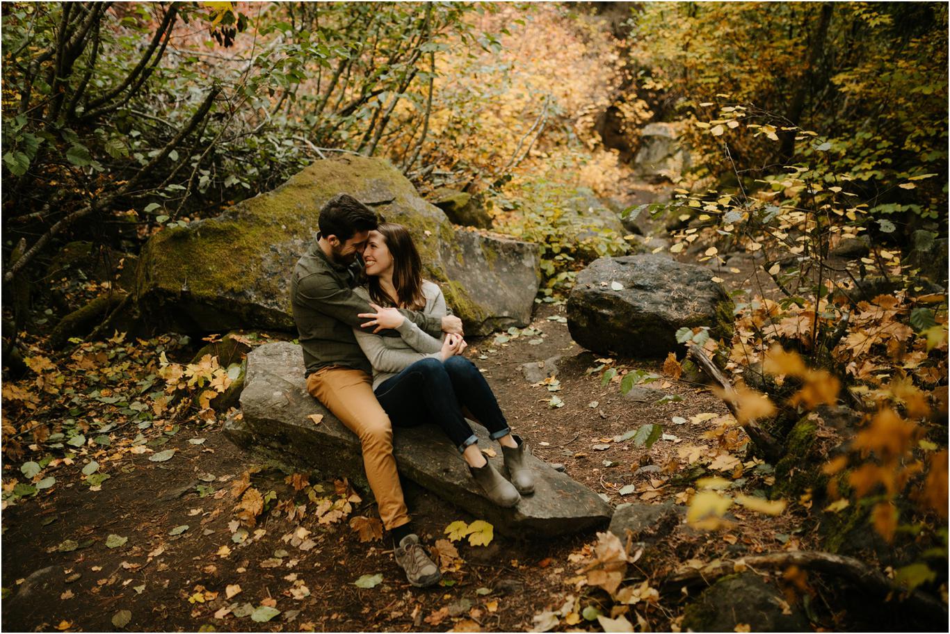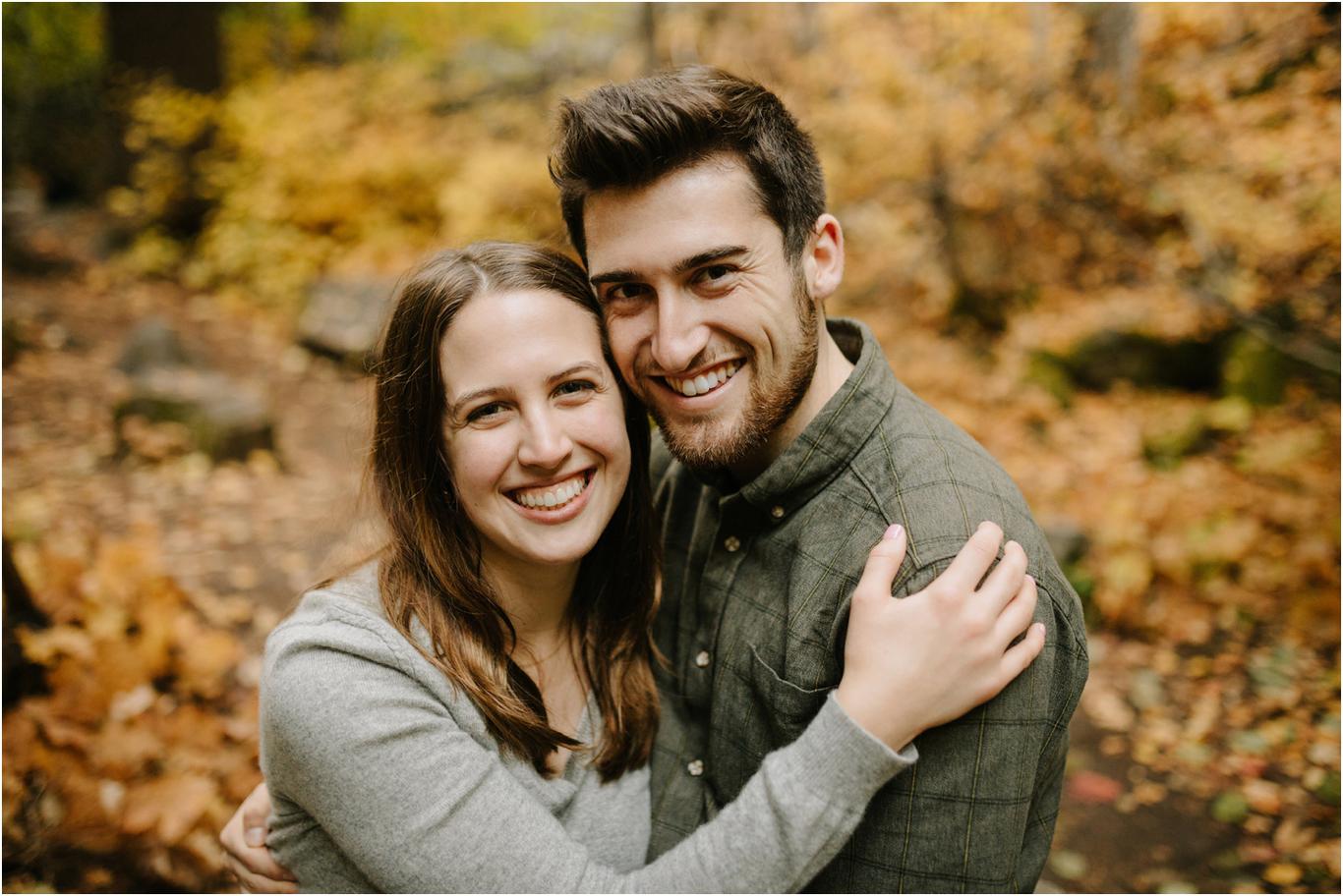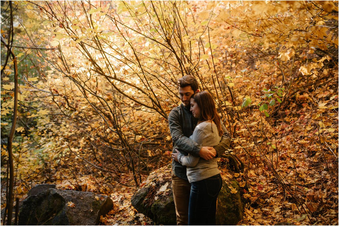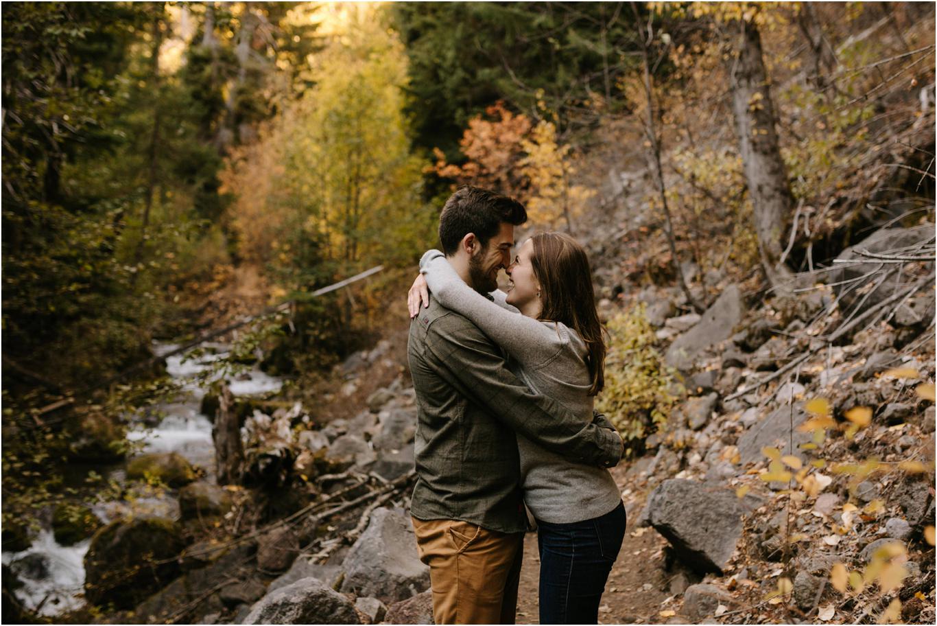 Taking these autumn Tamanawas Falls engagement photos was SO fun!! Marisa and Alex love hiking and they were totally down to do this 3.4 mile hike on Mt. Hood to Tamanawas Falls. The fall colors were spectacular and we had the perfect weather too!