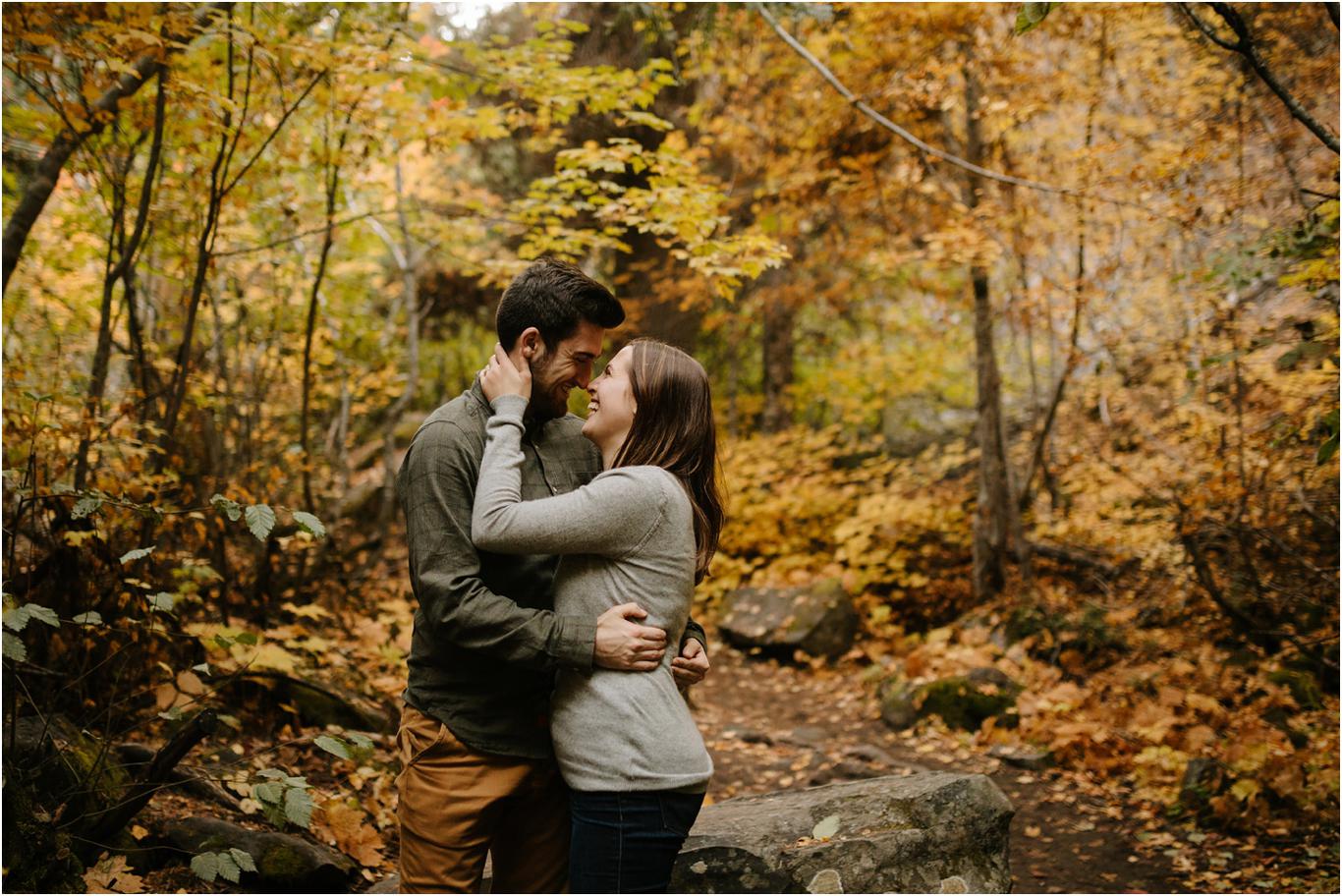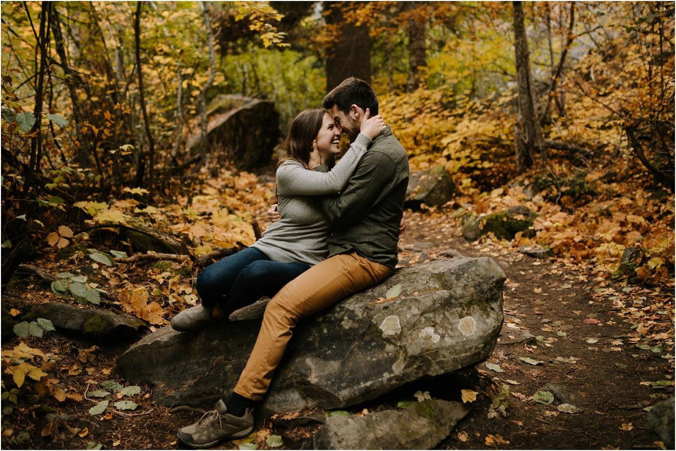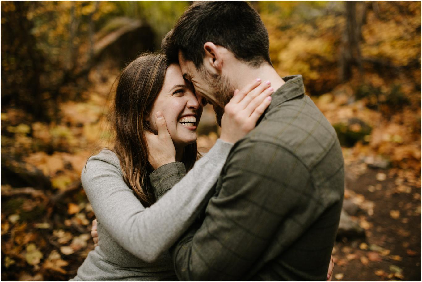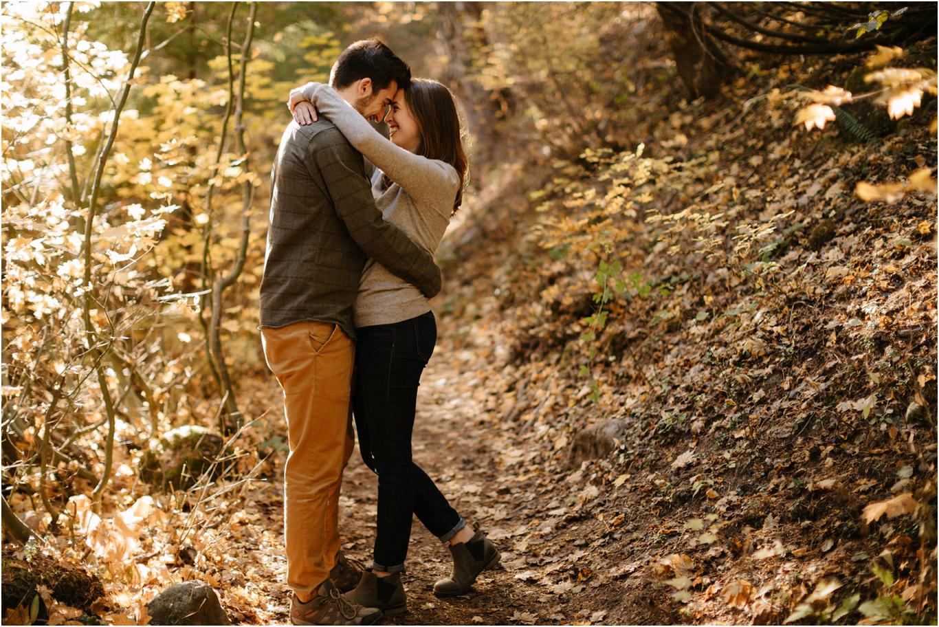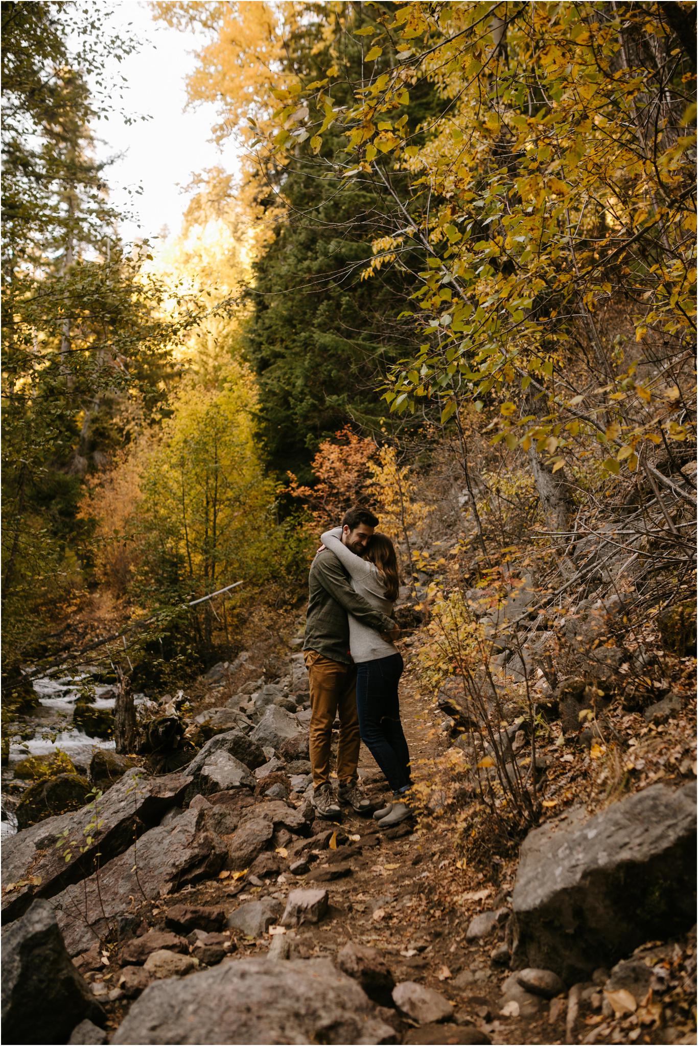 Taking these autumn Tamanawas Falls engagement photos was SO fun!! Marisa and Alex love hiking and they were totally down to do this 3.4 mile hike on Mt. Hood to Tamanawas Falls. The fall colors were spectacular and we had the perfect weather too!