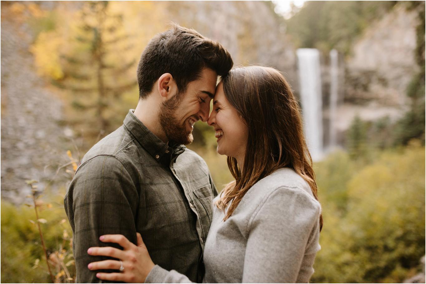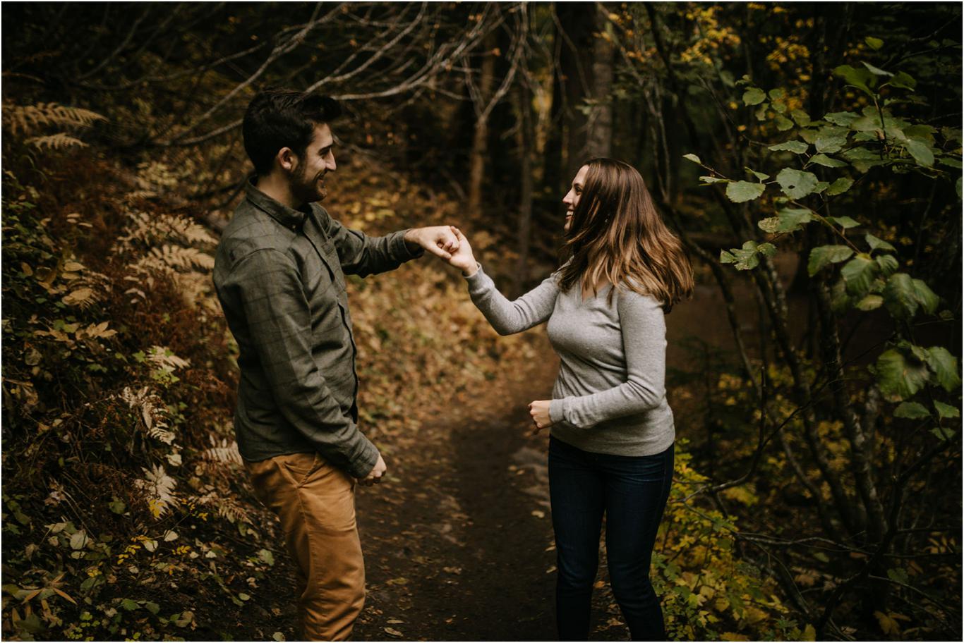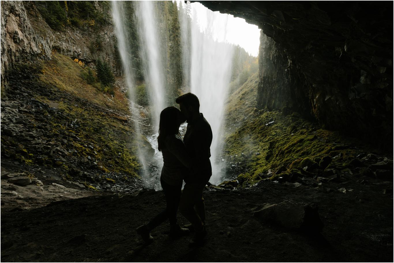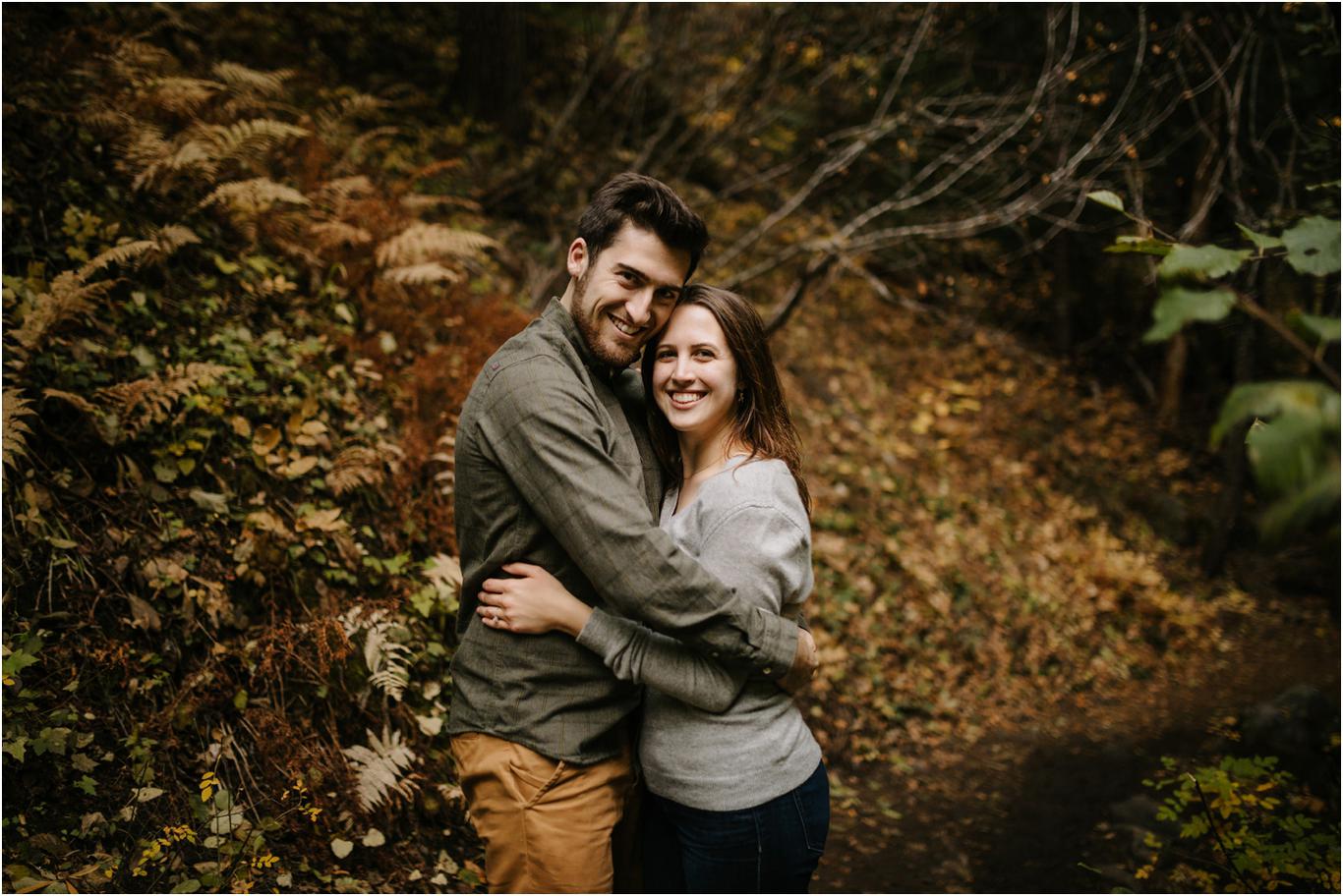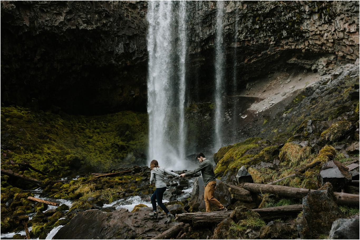 Marisa’s sister told them they were going out for happy hour and drinks, so they should get all dressed up and cute. Then her sister was like, let’s go take pictures outside before we leave! Then all of a sudden her dad walked up and there was Alex! She was so happy, and then she saw that his parents were there too and then she started getting emotional. He got down on one knee with both their families there and it was totally perfect. Family is super important to her so it was nice that he was able to surprise her and include them! I am SO excited to share their Tamanawas Falls engagement photos with you today! And I can’t wait to photograph their beautiful wedding next spring!
