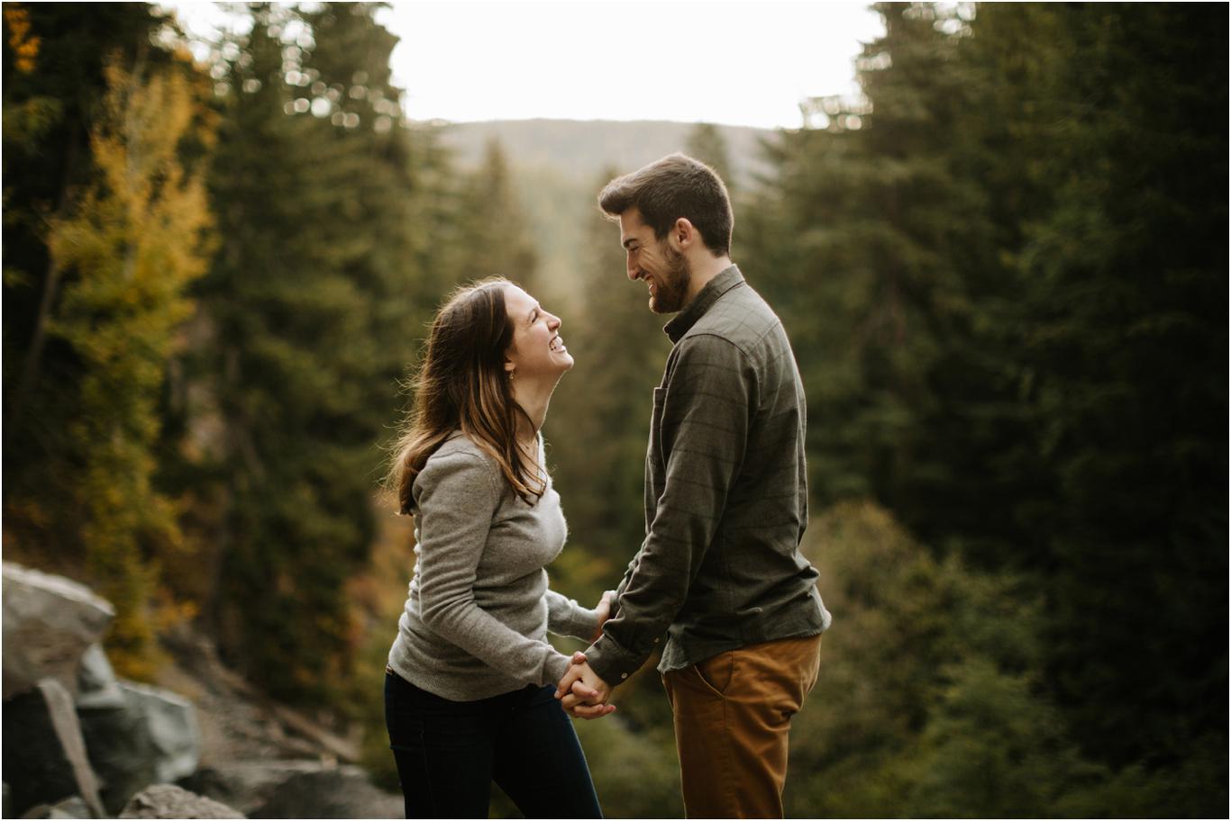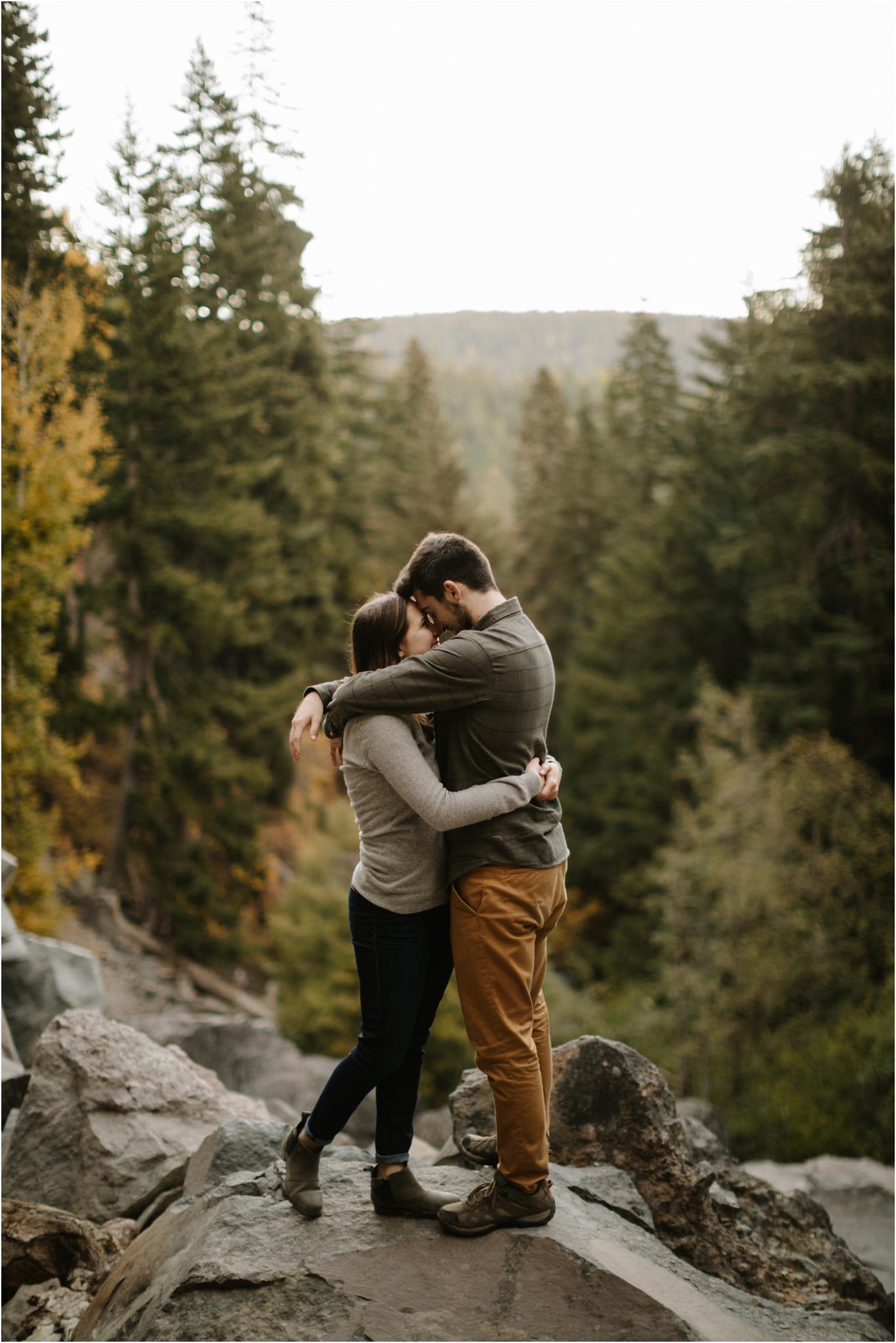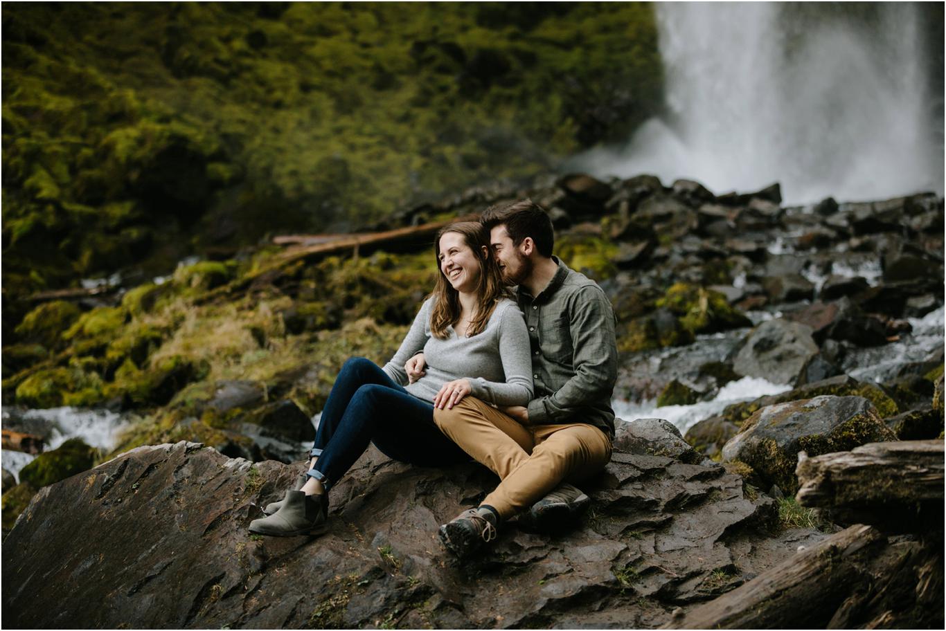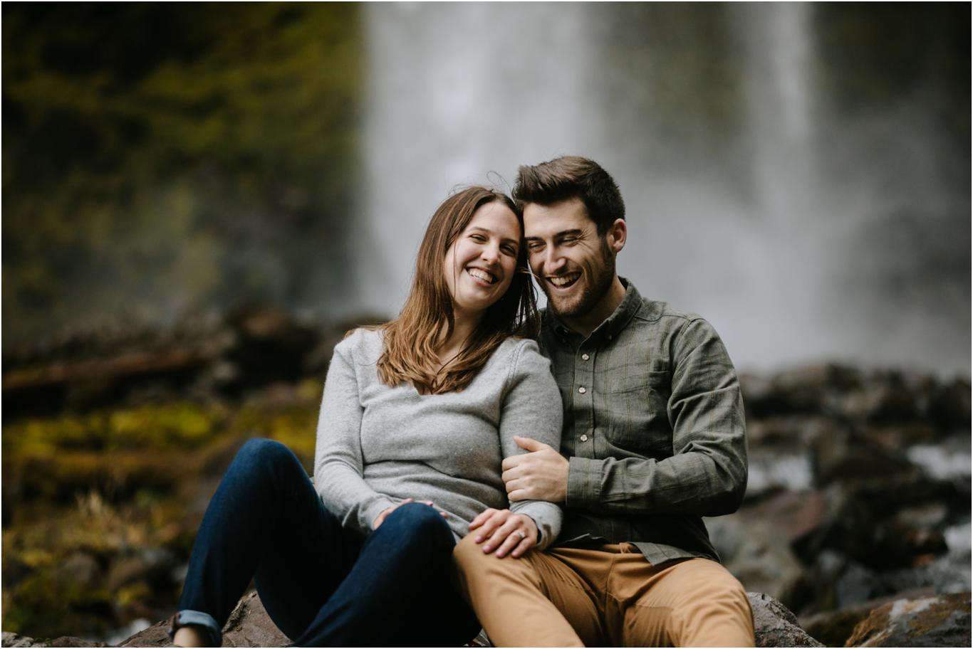 Marisa’s sister told them they were going out for happy hour and drinks, so they should get all dressed up and cute. Then her sister was like, let’s go take pictures outside before we leave! Then all of a sudden her dad walked up and there was Alex! She was so happy, and then she saw that his parents were there too and then she started getting emotional. He got down on one knee with both their families there and it was totally perfect. Family is super important to her so it was nice that he was able to surprise her and include them! I am SO excited to share their Tamanawas Falls engagement photos with you today! And I can’t wait to photograph their beautiful wedding next spring!