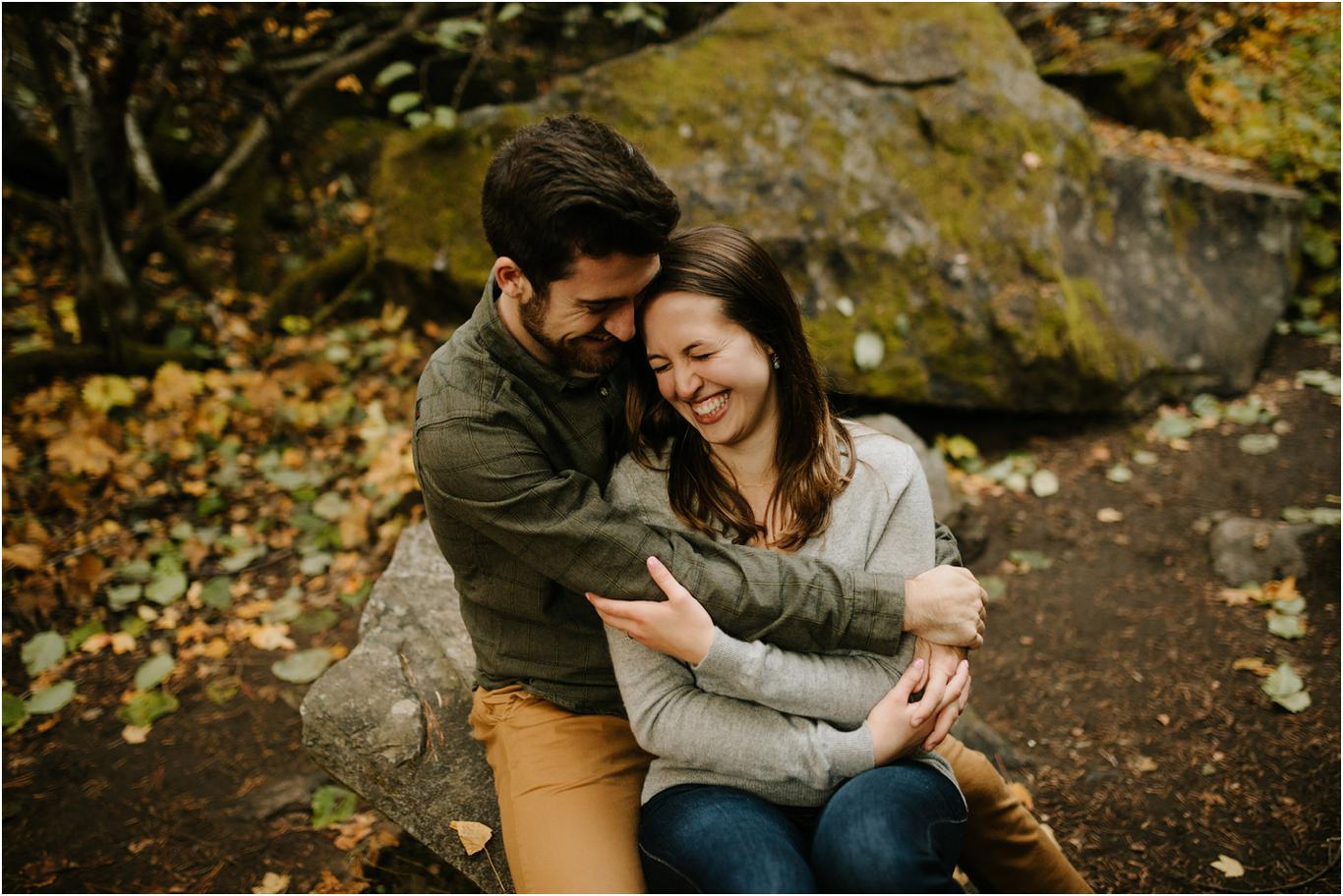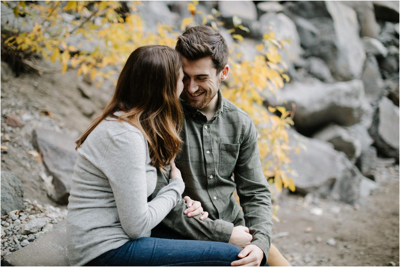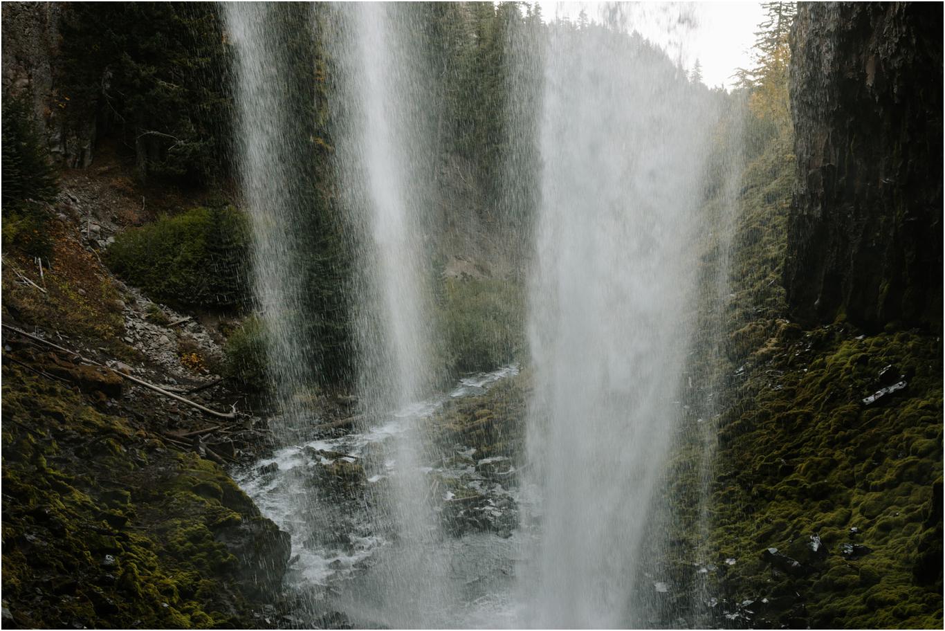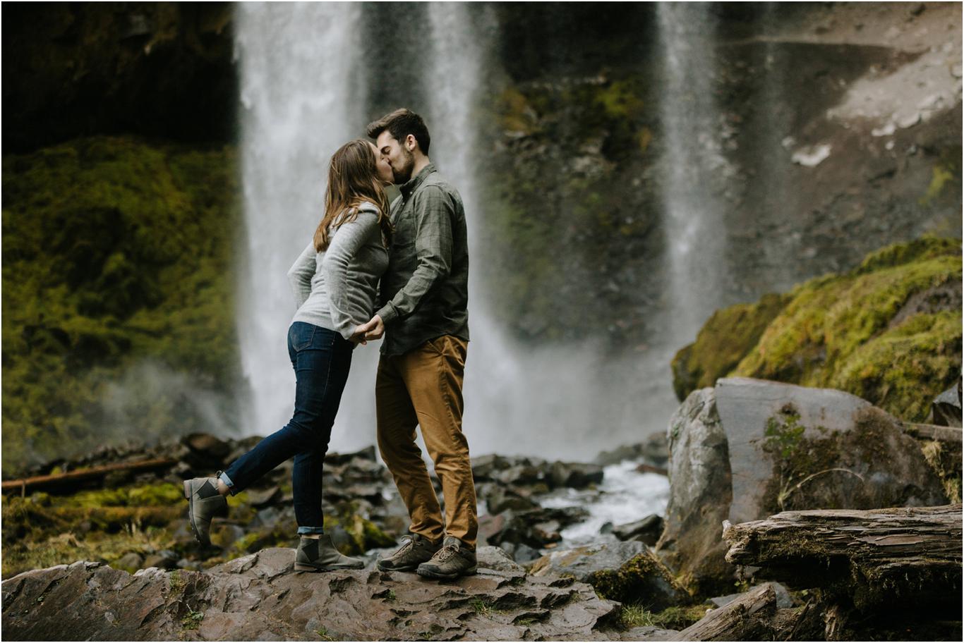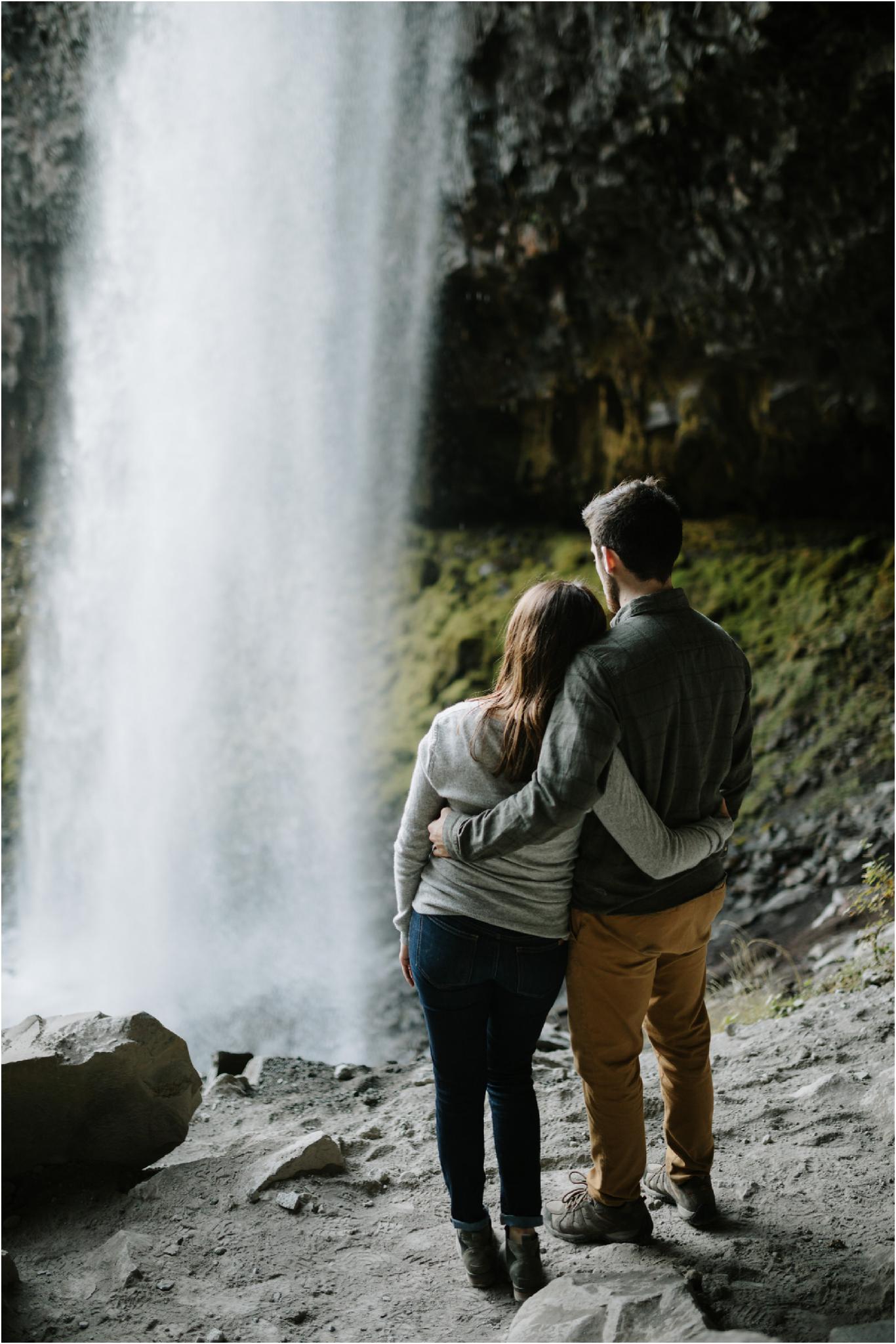 Marisa’s sister told them they were going out for happy hour and drinks, so they should get all dressed up and cute. Then her sister was like, let’s go take pictures outside before we leave! Then all of a sudden her dad walked up and there was Alex! She was so happy, and then she saw that his parents were there too and then she started getting emotional. He got down on one knee with both their families there and it was totally perfect. Family is super important to her so it was nice that he was able to surprise her and include them! I am SO excited to share their Tamanawas Falls engagement photos with you today! And I can’t wait to photograph their beautiful wedding next spring!