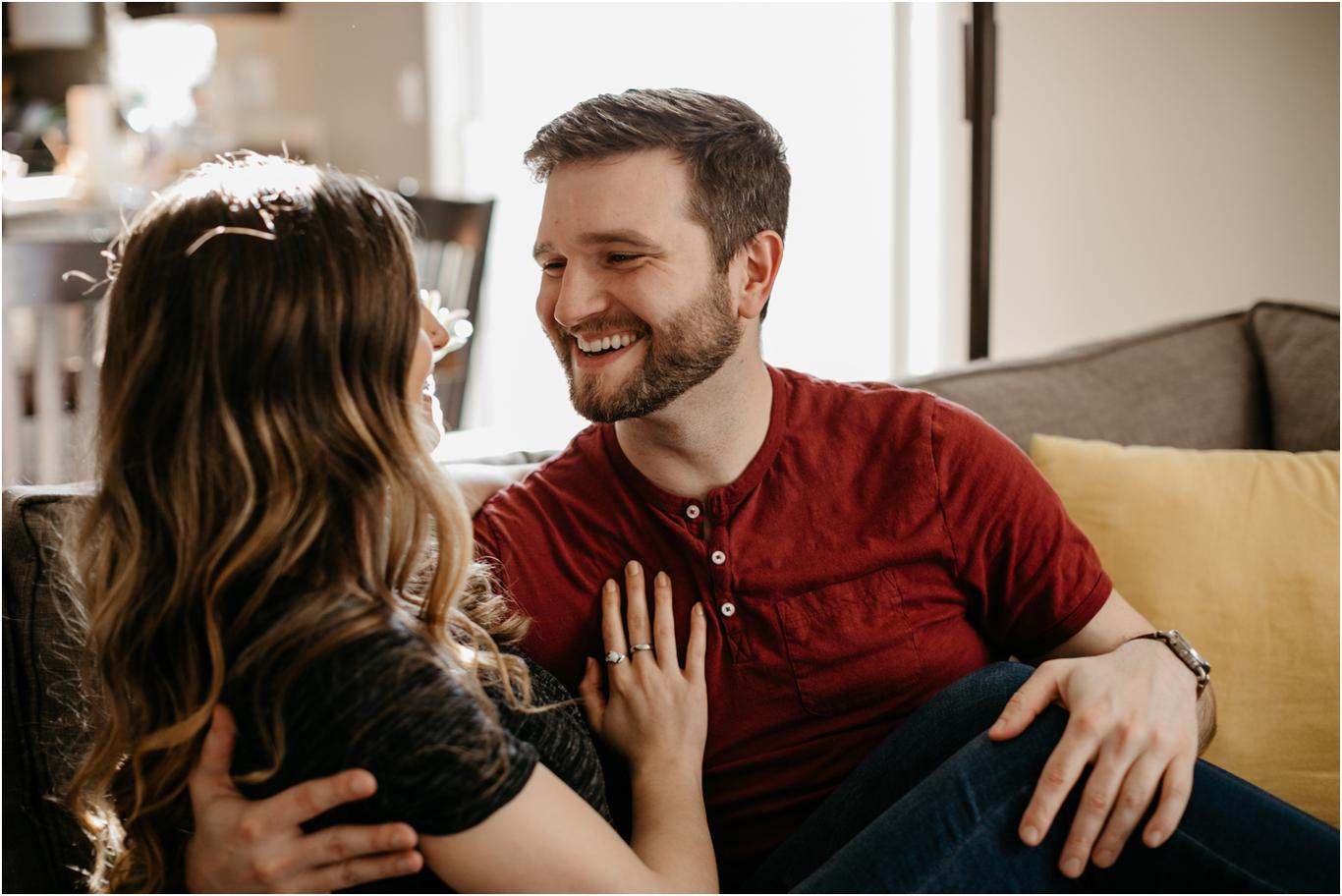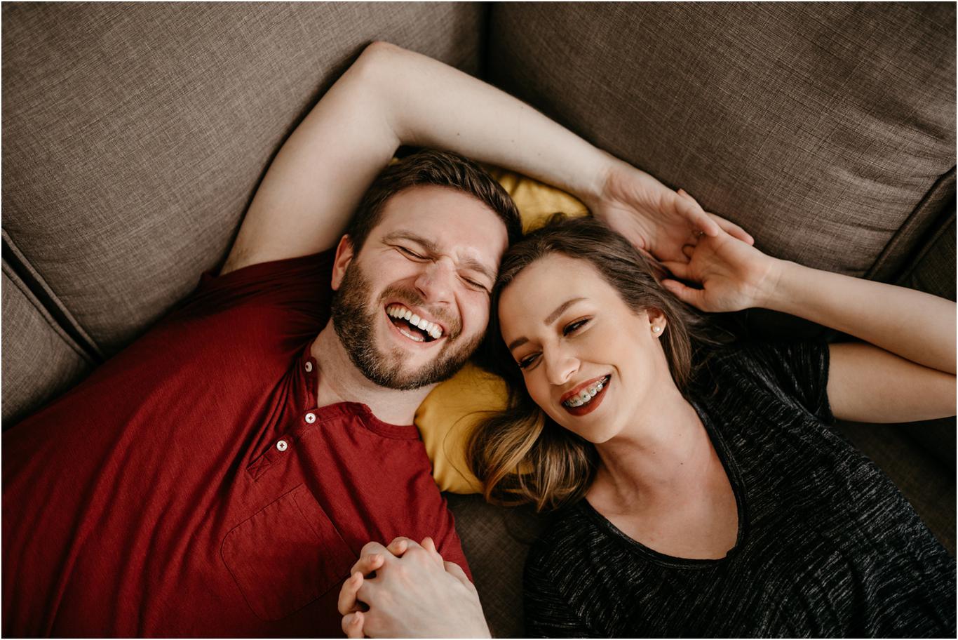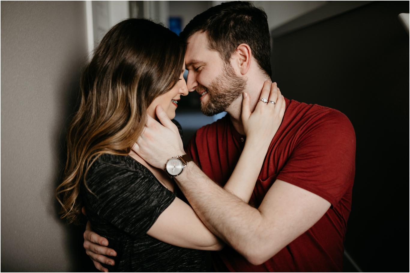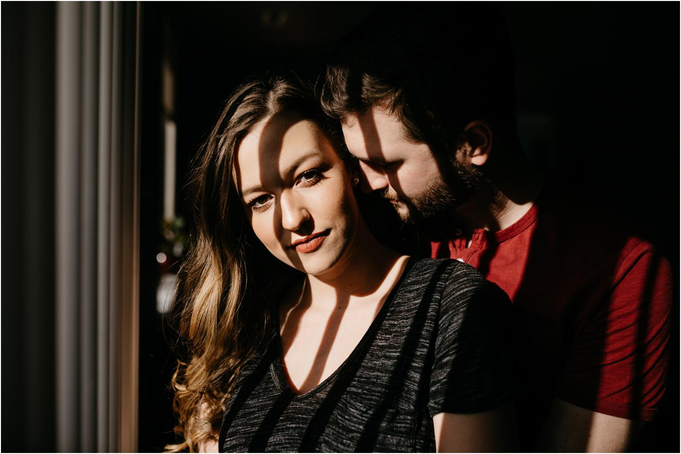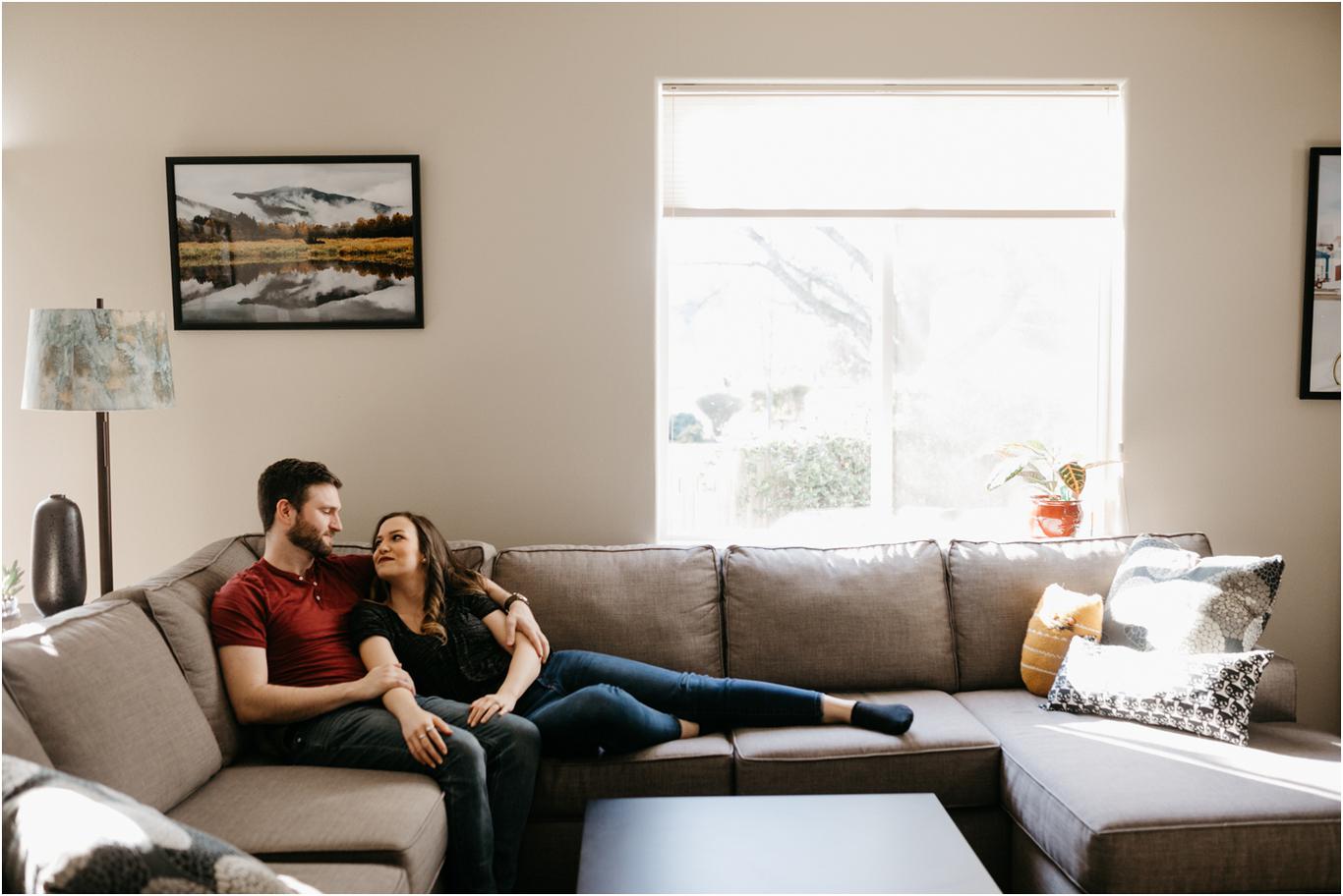 Your home is important. It says SO much about who you are and your relationship. Plus, your pets live there too! I often take Portland engagement photos at epic locations around the city or out in nature, but sometimes the most representative place to photograph people is in their own homes. That’s why I freaking LOVED these in home Corvallis engagement photos with cats!