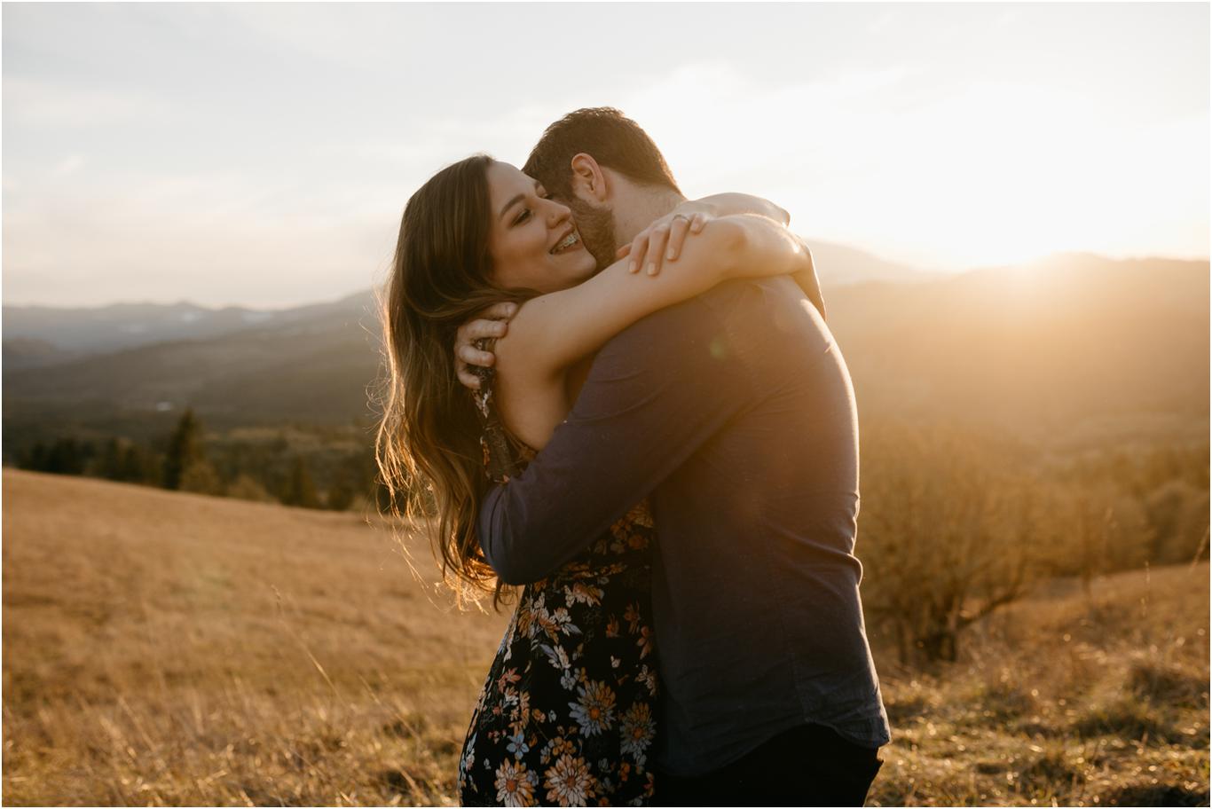 It was actually pretty cold, even with the brilliant sunshine, but we made it work! We laughed and danced and ran around on the trail together until our toes and noses were freezing cold. But it was totally worth it to have these epic Corvallis engagement photos in the mountains!