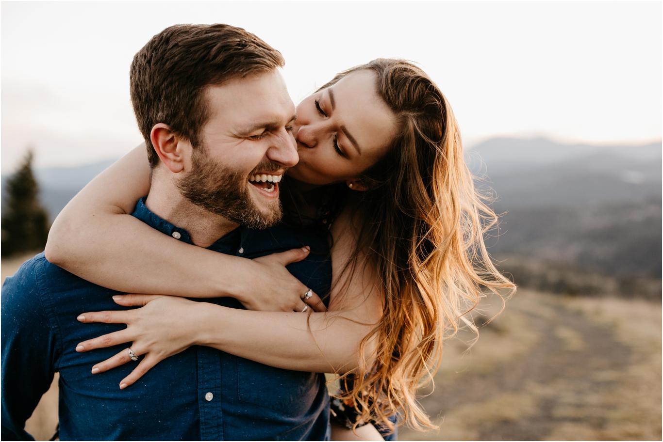As much as Dylan and Olivia adore their home, they still love going on outdoor adventures too! So once we were done nerding out with their kitties, we drove to one of my all-time favorite photography locations, Fitton Green. They wanted a few romantic images with mountain views and this was the PERFECT place for that. Fitton Green is such a beautiful spot for a picnic or evening walk with the person you love. It’s easy to get to, has gorgeous views, and it’s an easy walk once you get there! We were even surprised to find some snow up there when we arrived! The view takes your breath away as soon as you see it. It’s stunning.