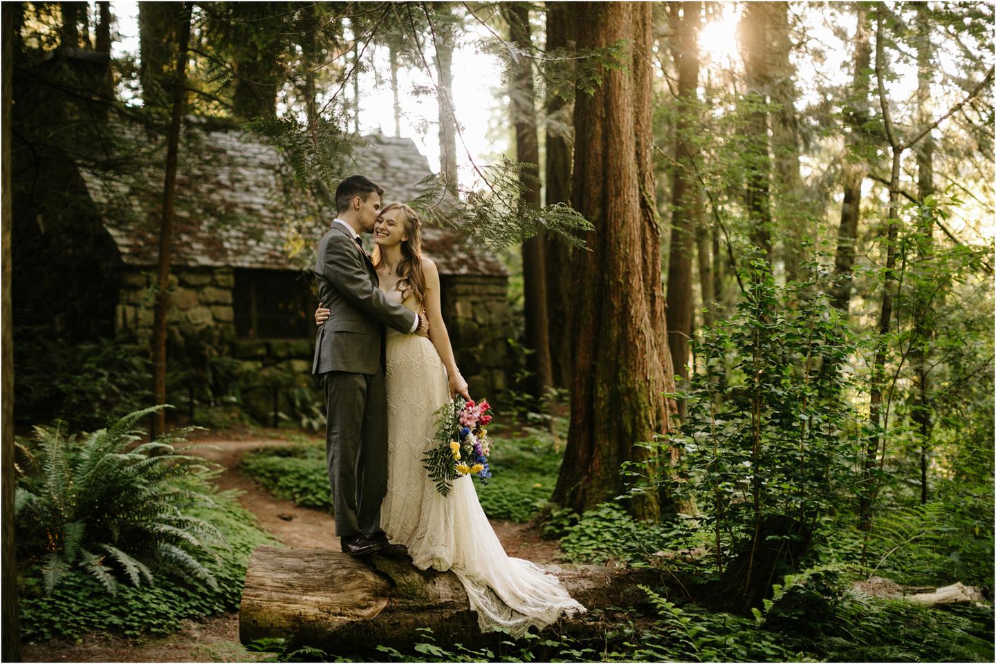 Why Leach Botanical Garden Weddings are awesome: I have a big ol’ soft spot for this venue. It’s SO peaceful. Nestled in the forest along a creek, surrounded by beautiful gardens and historic buildings, this outdoor Portland wedding venue is pure magic for any nature lover who wants to get married under tall trees. It’s not the biggest venue ever but it’s really fun and photographs SO well. It’s perfect for a medium-sized outdoor Portland wedding.