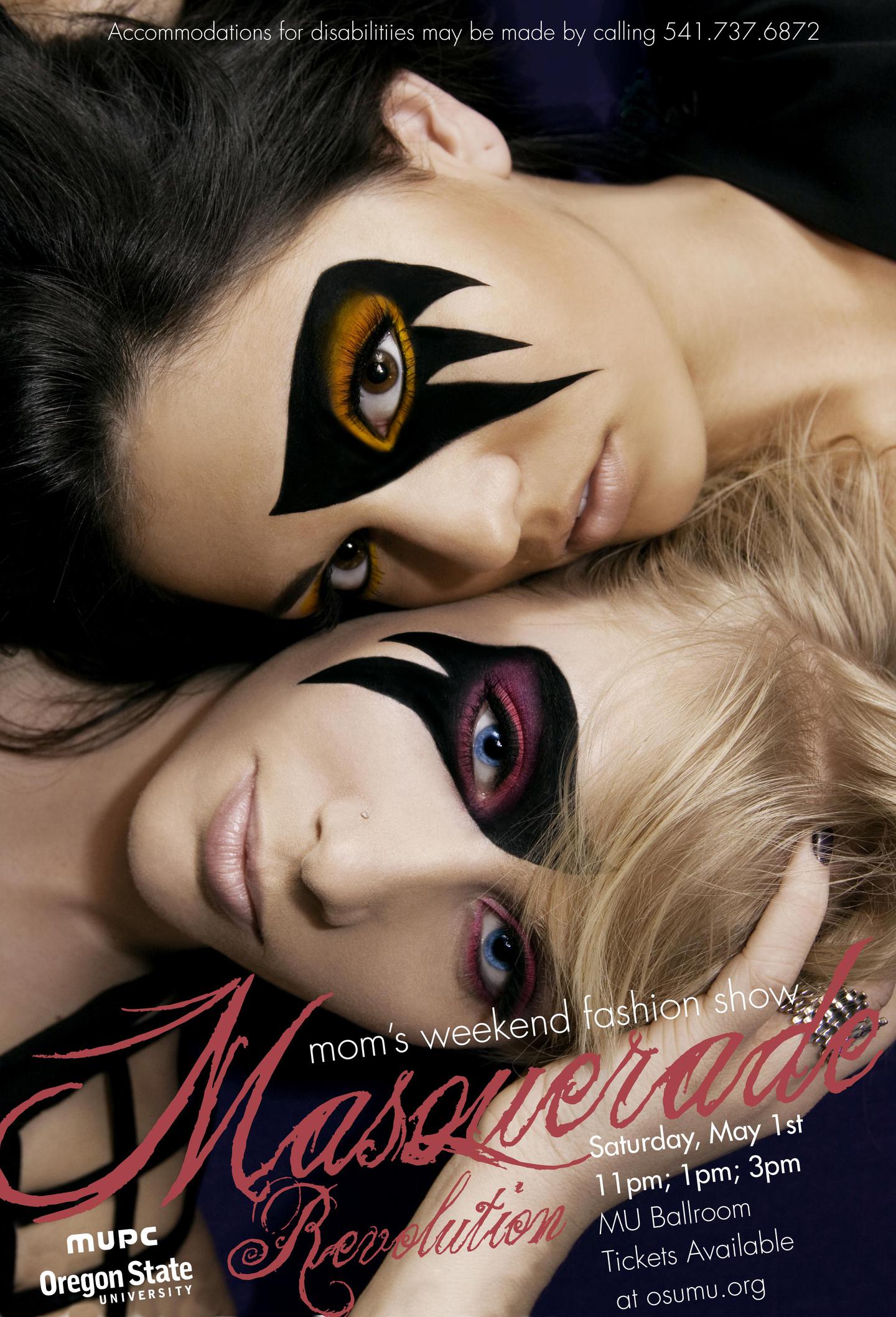 Every year at Oregon State, the MUPC holds a Mom’s Weekend fashion show with student models and real designers. This year, I was contacted to shoot the posters to promote the event. I worked with three lovely ladies- Jackie Sims (creative director), Victoria Hassman (makeup artist/model) and Laurel Thompson (model) - and we came up with a Lady Gaga inspired “mask” concept because the theme for the show is a masquerade revolution. Victoria did an awesome job with makeup and I had a great time working with the girls. We actually shot these in my home. I shot these a long time ago but had to wait to post them until the posters went up on campus. The graphic design was done by someone else but unfortunately I do not know their name. Here are the three shots that are on posters, as well as another seven that I edited from the shoot.