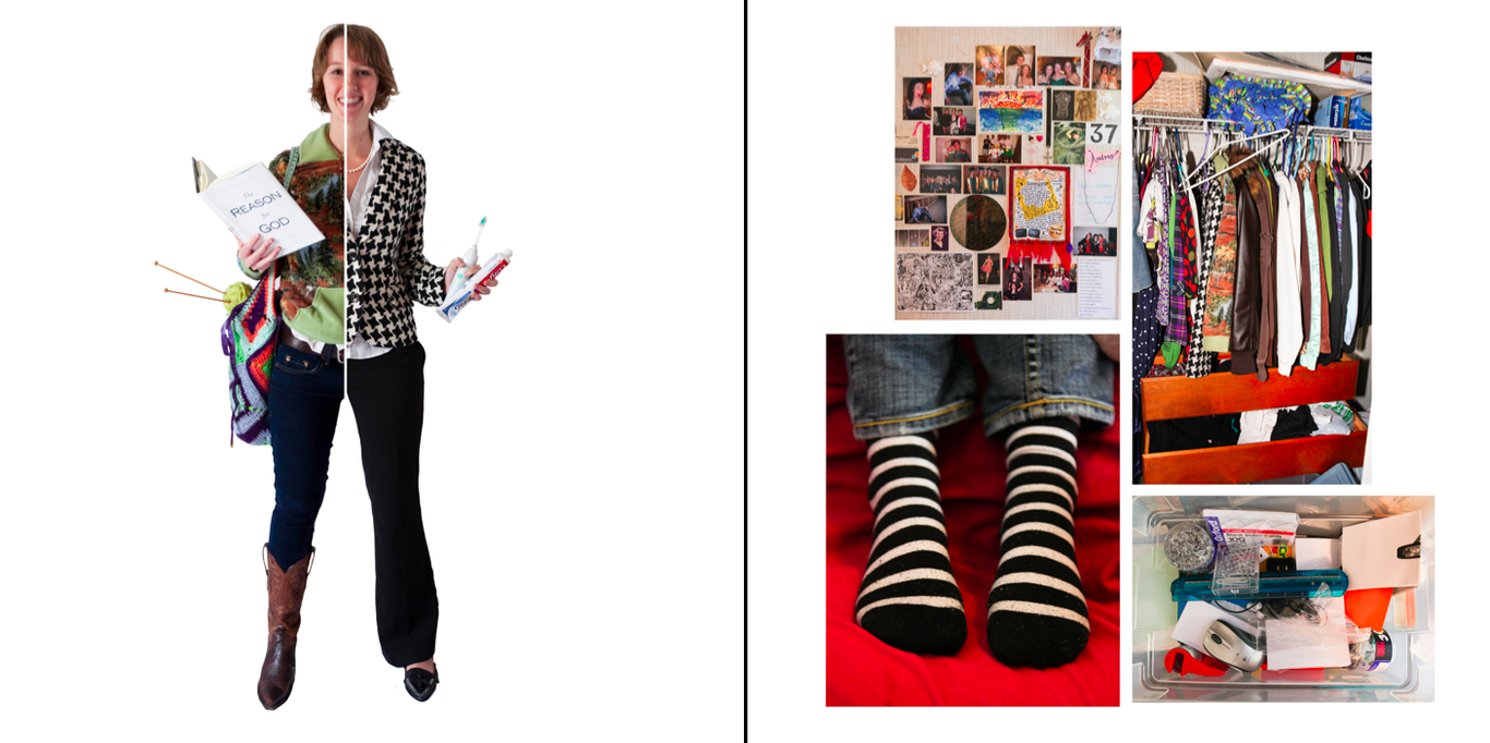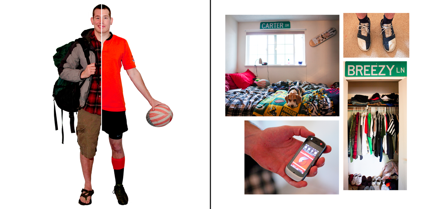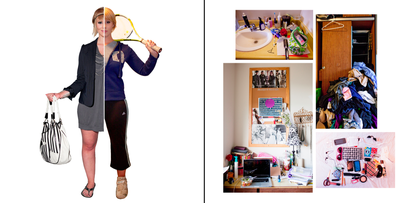 Over the past several months I’ve embarked on a photo project quite unlike anything I have ever done before. My goal was to better understand what makes up a person’s identity, and then convey that through photographs in an organized manner. My work has always focused on perfection, whether it’s fashion photos with ample retouching and attention to stylized beauty, or portraits that show a person’s most flattering side, it’s always about hiding flaws and showing people in the absolute best light possible. In other words, it isn’t totally honest. It’s what I want you think, or what I want you to see, or even what the actual subject wants you to see. In this project I photographed 31 different college-aged people in Corvallis, Oregon. I had to meet with each person at least twice- once at my house, and once at their house. For the first part, I asked them to wear outfits that represented two totally different sides of their personalities. For the second part, I invaded their personal space, photographing the walls of their bedrooms, their closets, drawers, refrigerators, feet, hands, you name it. I organized all these photos into a spread for each person that together will (hopefully) be published into a square book. I ended up with 29 final pieces- 2 had to be thrown out due to errors on my own behalf (my apologies Harsha and Kelli). The project took on a life of it’s own as I neared my deadline, and I learned a lot more than I originally anticipated. The most interesting part wasn’t necessarily taking or editing the pictures- it was learning about the similarities and differences I found in the people I knew and the people I got to meet. I was amazed by the things I learned about people by first seeing how they chose to represent themselves, and then second by seeing how their homes and things represented them in a different way.