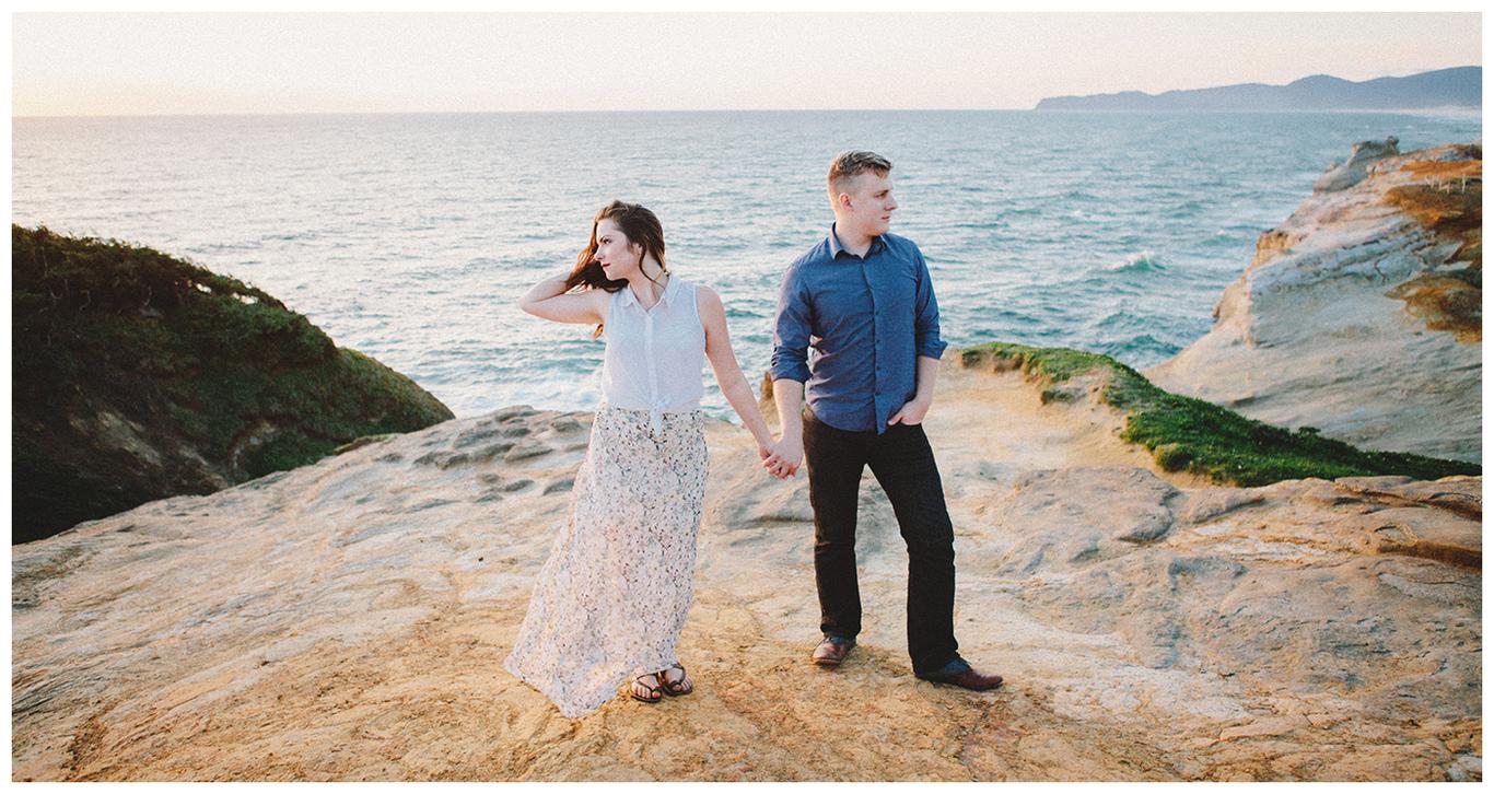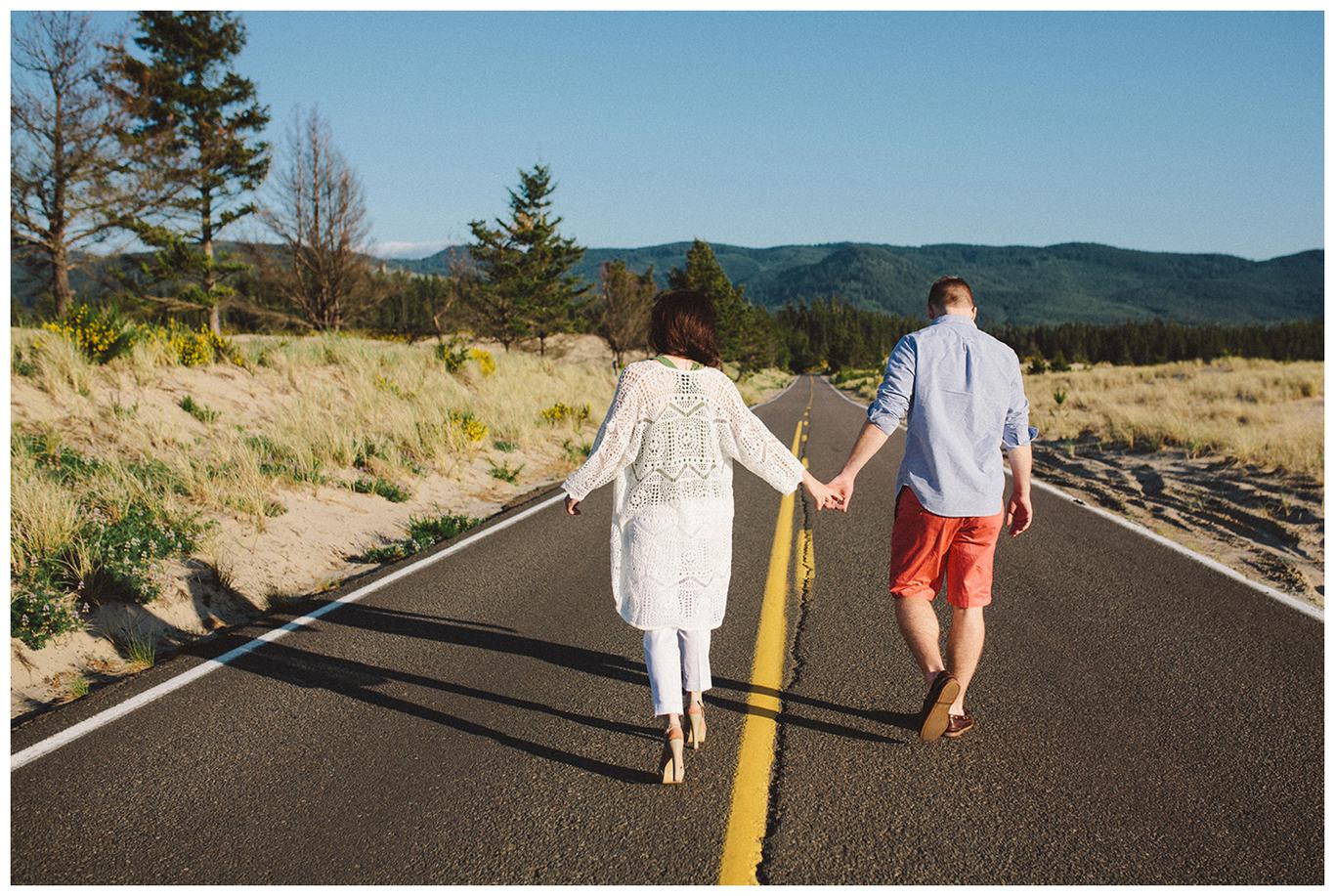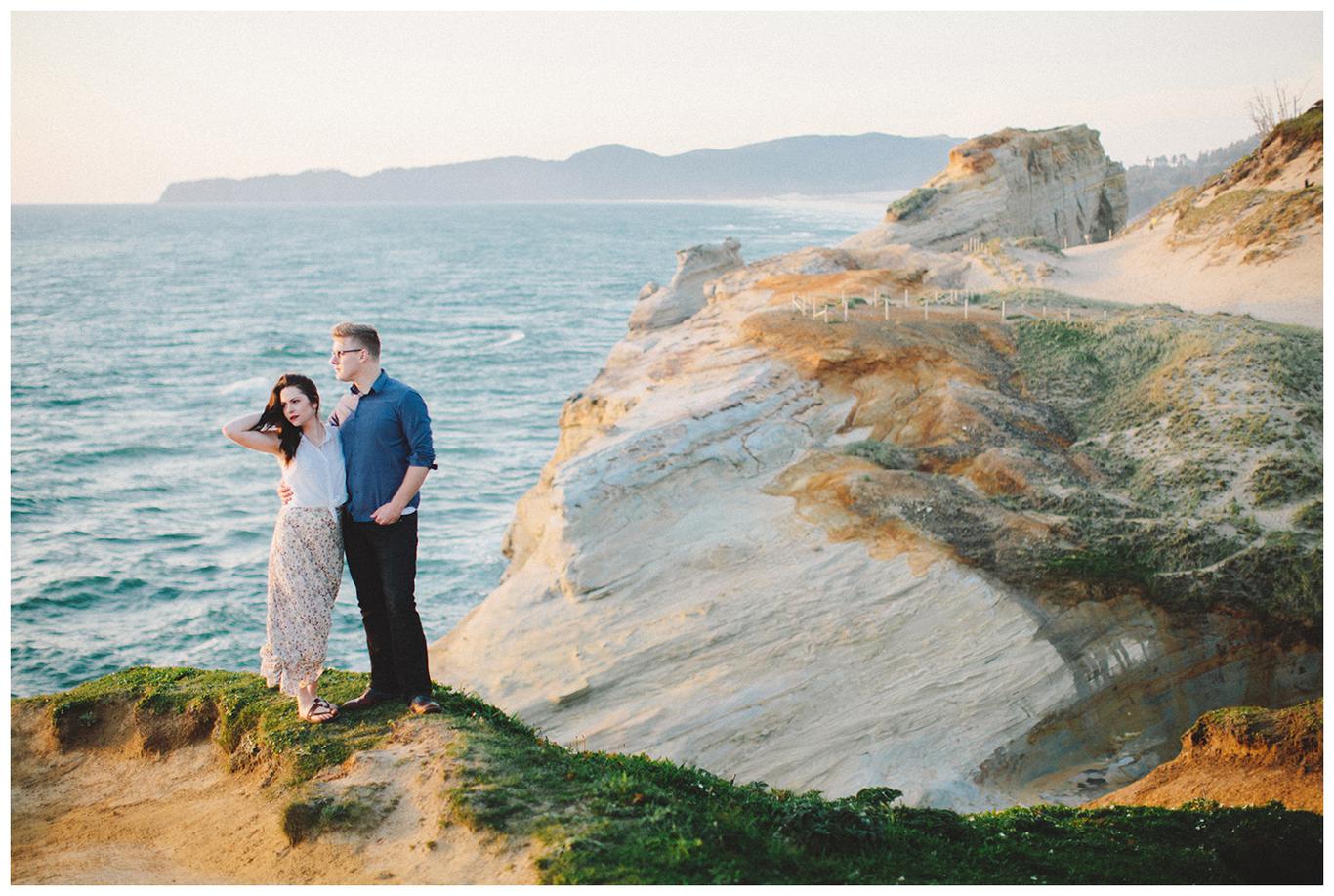 We set off in Jenny’s old car, blasting Zedd, Deorro and Zomboy, dancing in our seats the entire way to the coast. Part of her bumper fell off when we pulled into a gas station in Tillamook and we all piled out to fix it. We almost got lost on pothole-covered backroads. We bushwhacked through the forest to this amazing abandoned clearing, even though some of us were wearing white jeans. We got bit by tiny invisible bugs while walking over inland sand dunes. We climbed up cliffs and over hills and stood on precipices overlooking the sea. We watched the sun set as the tide rolled in around us. We played. Nothing beats living in the moment with the people you love. To be present. To soak it all in. That’s the way I want all my photoshoots to be. An extraordinary memory of an unforgettable adventure. And of course, filled to the brim with an overwhelming amount of love. That’s Jenny and Brandon for ya